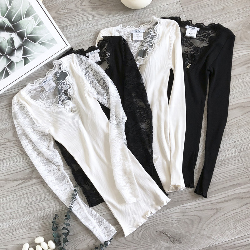 Осенний кружевной шелковый трикотажный базовый приятный телу лонгслив, облегающий крой