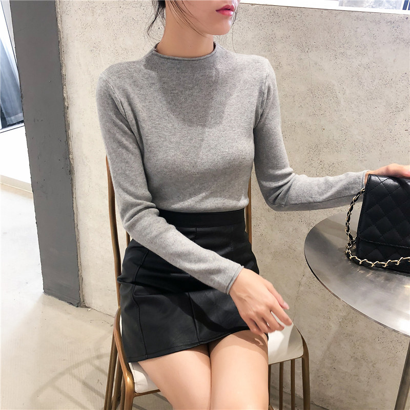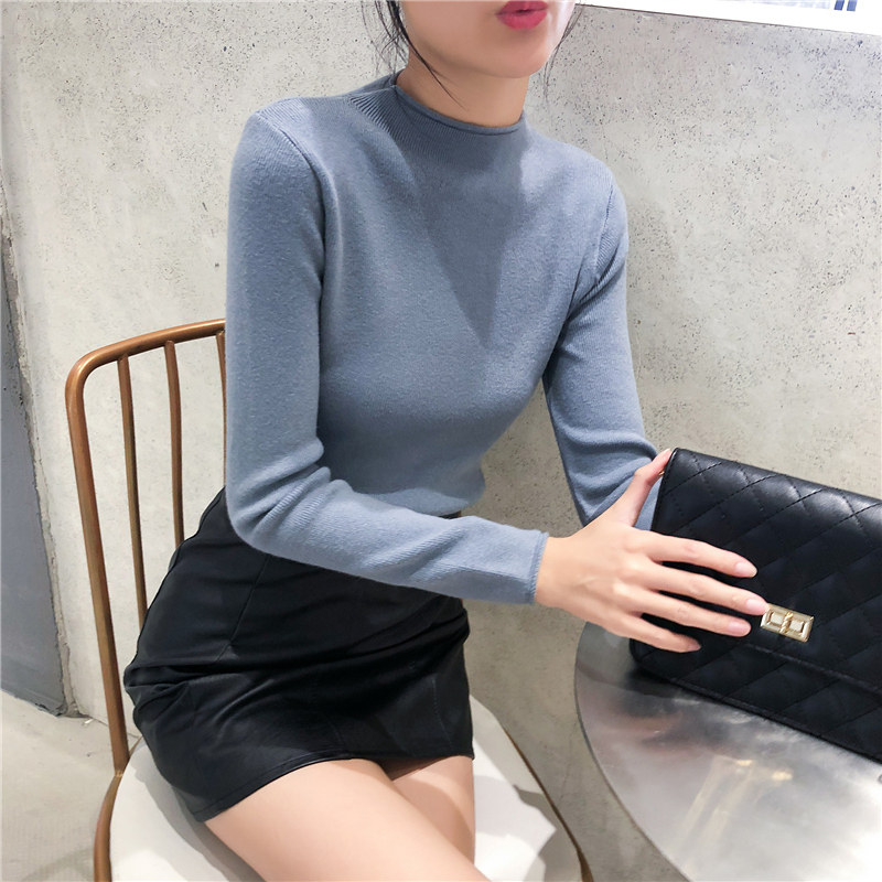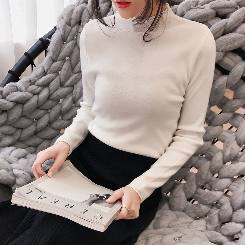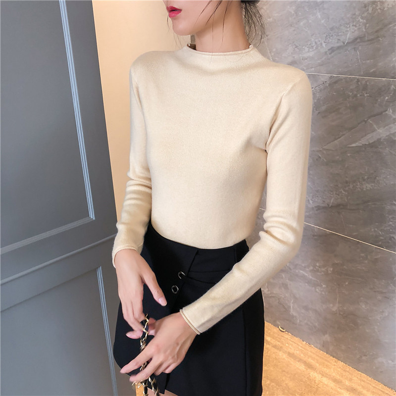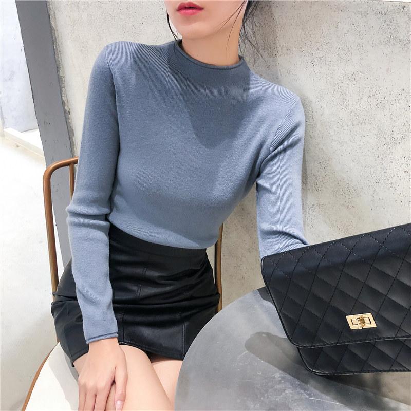 Демисезонный трикотажный свитер, базовый приятный телу лонгслив, 2025 года, высокий воротник, облегающий крой, в обтяжку