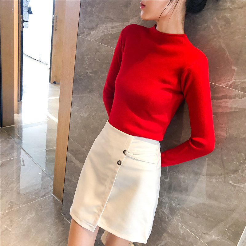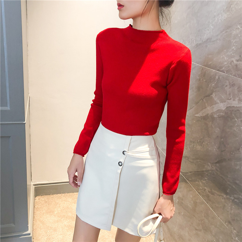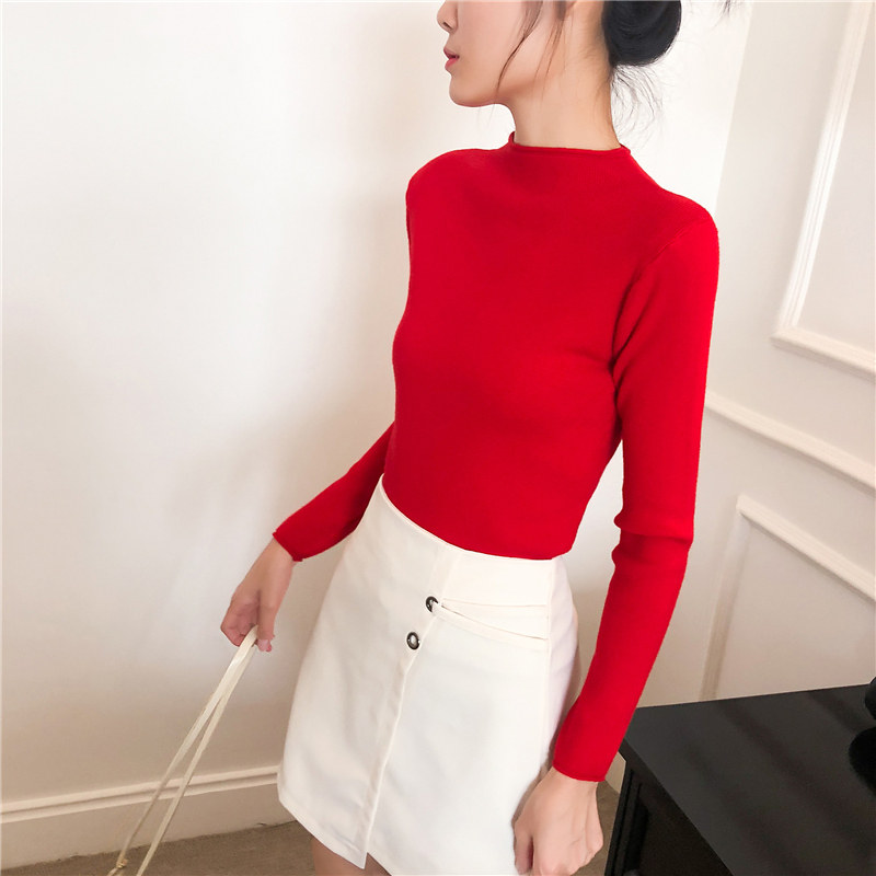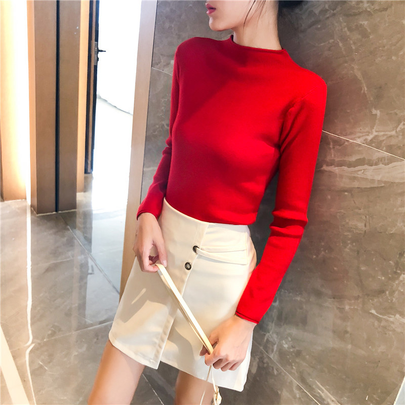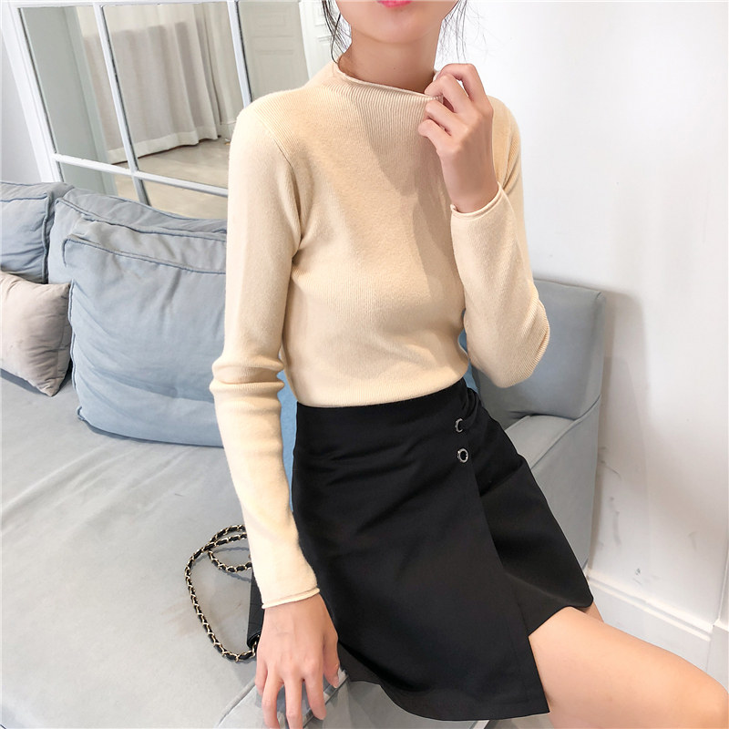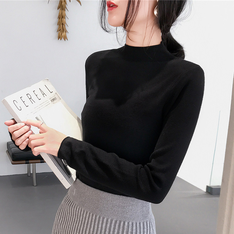 Демисезонный трикотажный свитер, базовый приятный телу лонгслив, 2025 года, высокий воротник, облегающий крой, в обтяжку