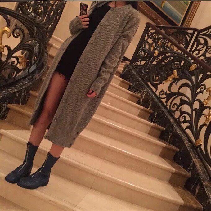 Осенний кардиган, длинный свитер, трикотажная куртка с круглым воротником, коллекция 2021, в корейском стиле, средней длины