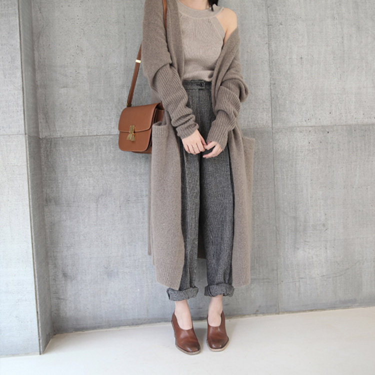 Осенний кашемировый длинный свитер, куртка, тонкий кардиган, европейский стиль, средней длины