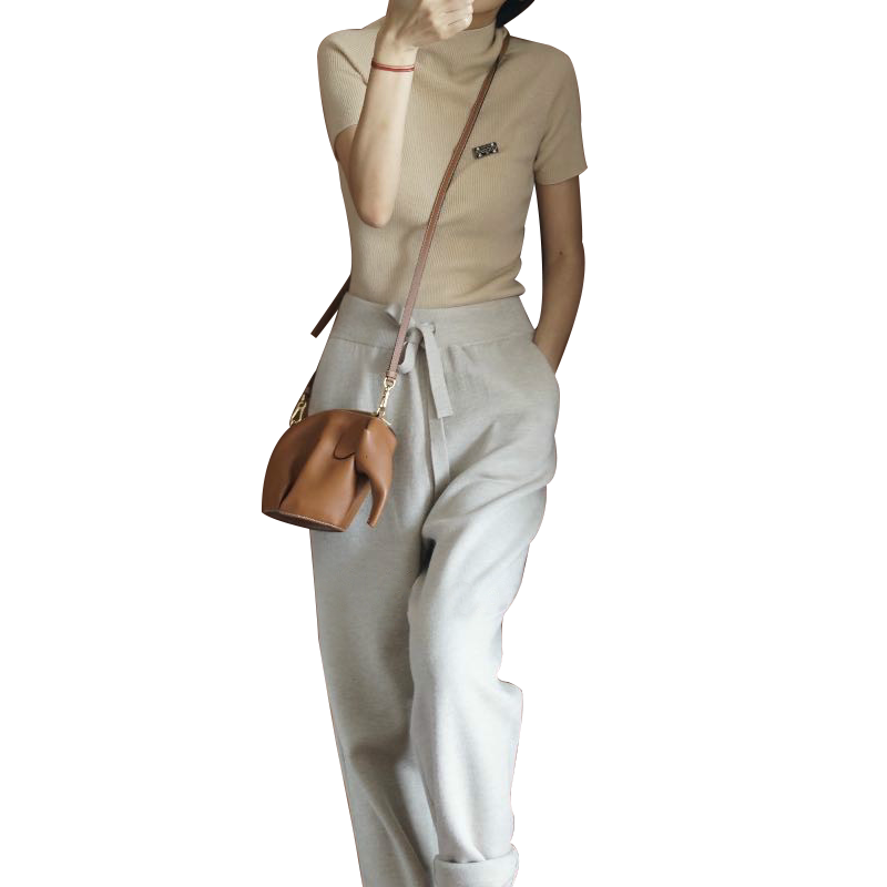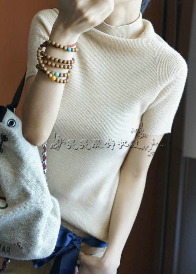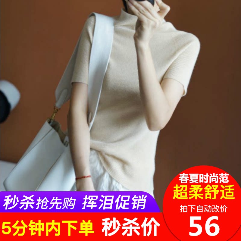 Летний трикотажный шелковый свитер, базовая футболка, популярно в интернете, в корейском стиле, коллекция 2021, короткий рукав, высокий воротник