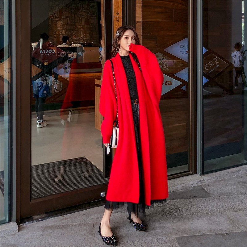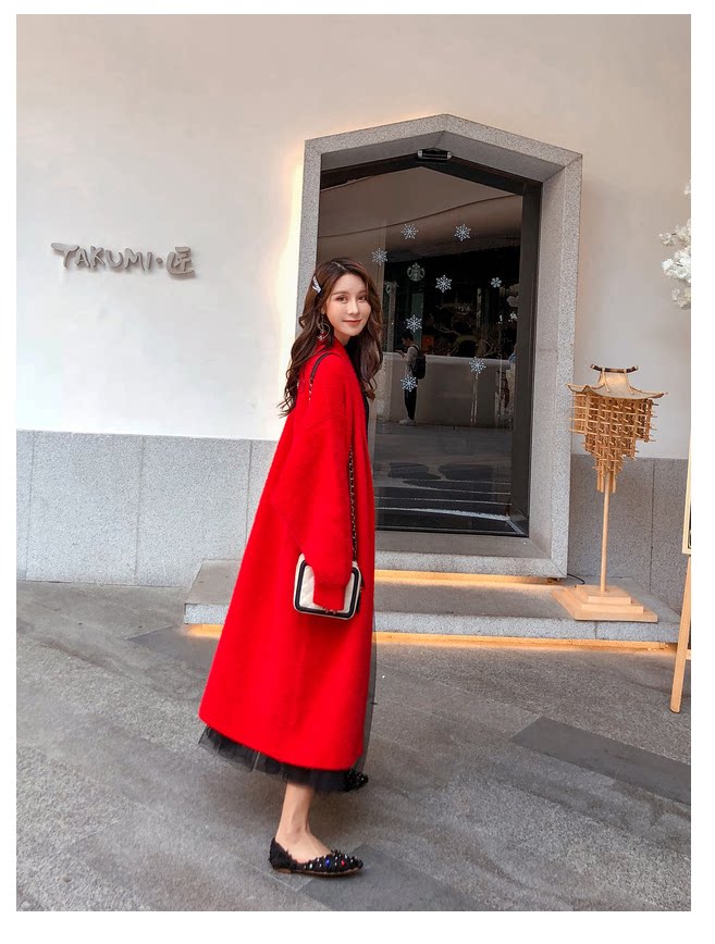Красный демисезонный свитер, куртка, бархатный кардиган, утепленный лонгслив, средней длины