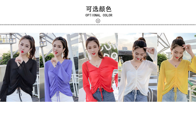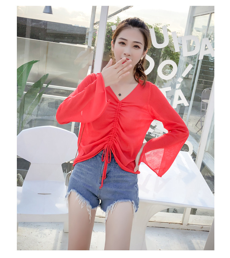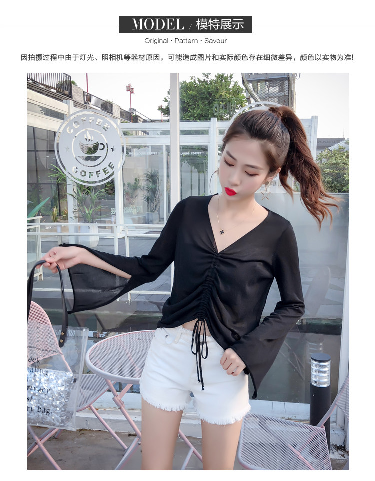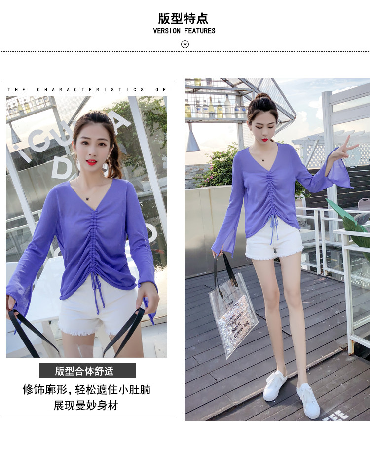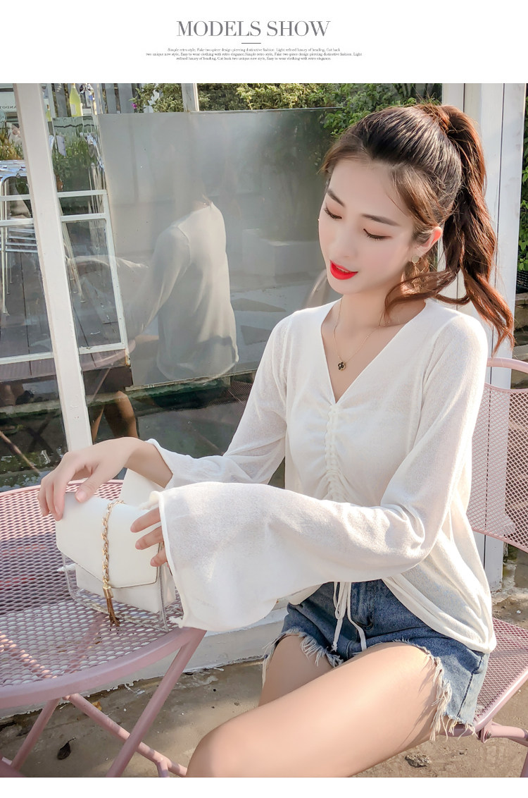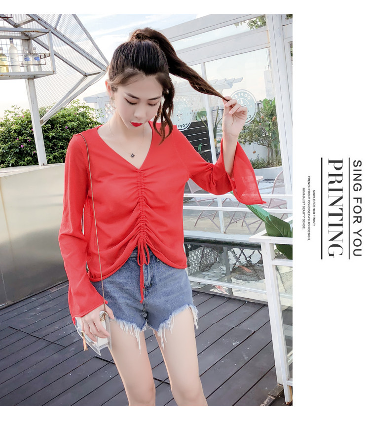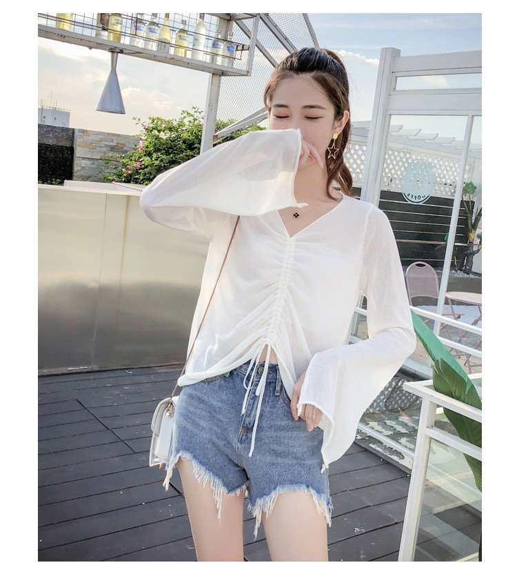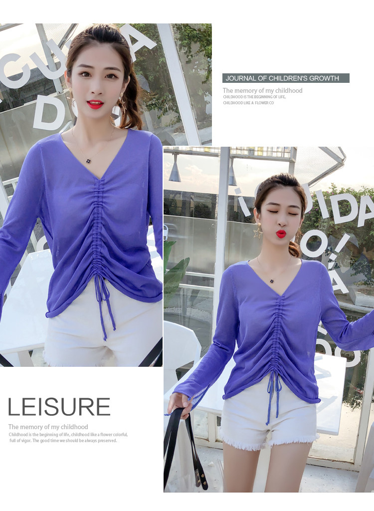 Летний трикотажный тонкий свитер, мегафон, лонгслив, 2020, оверсайз, V-образный вырез, на шнурках, защита от солнца