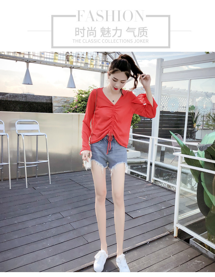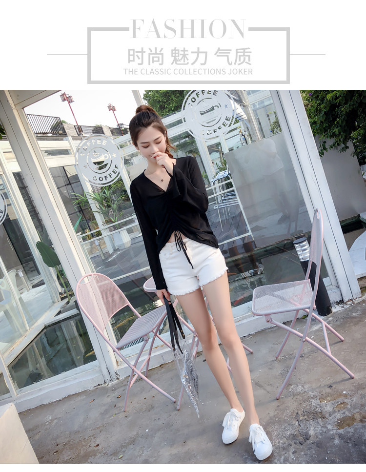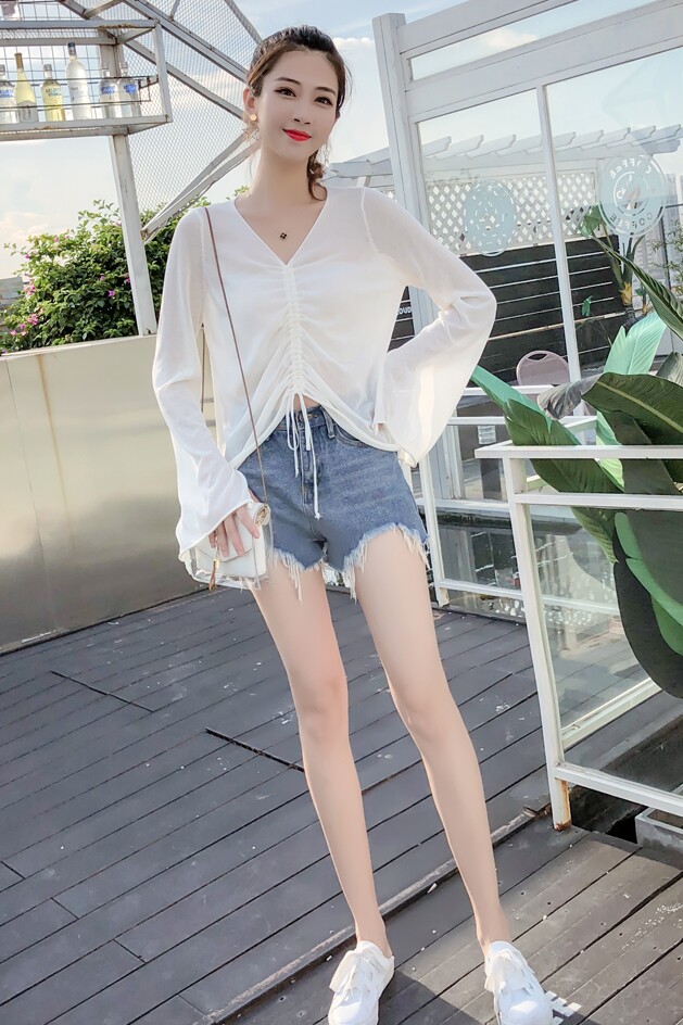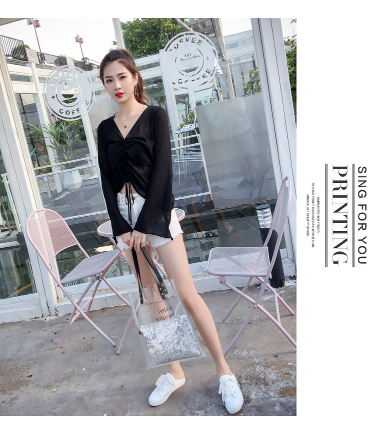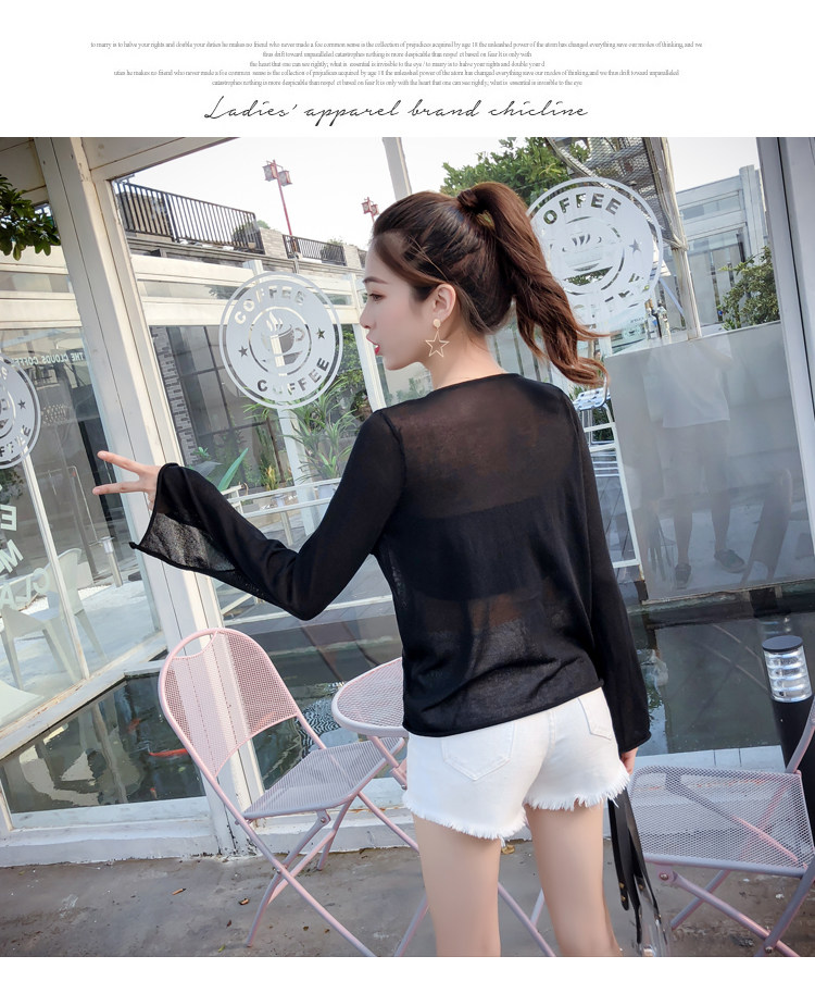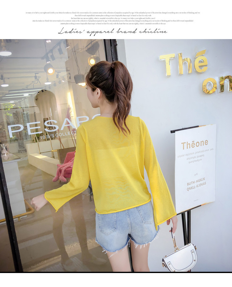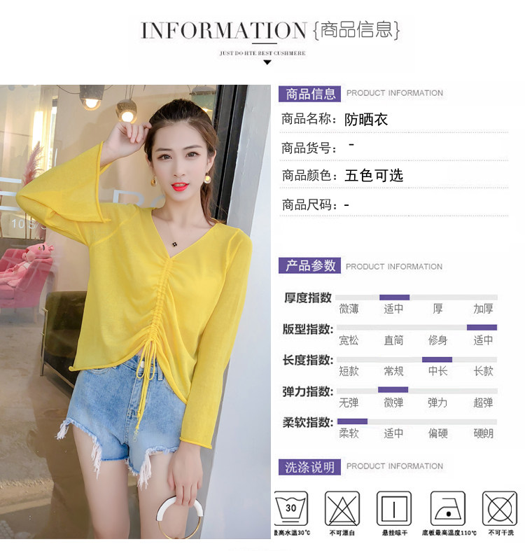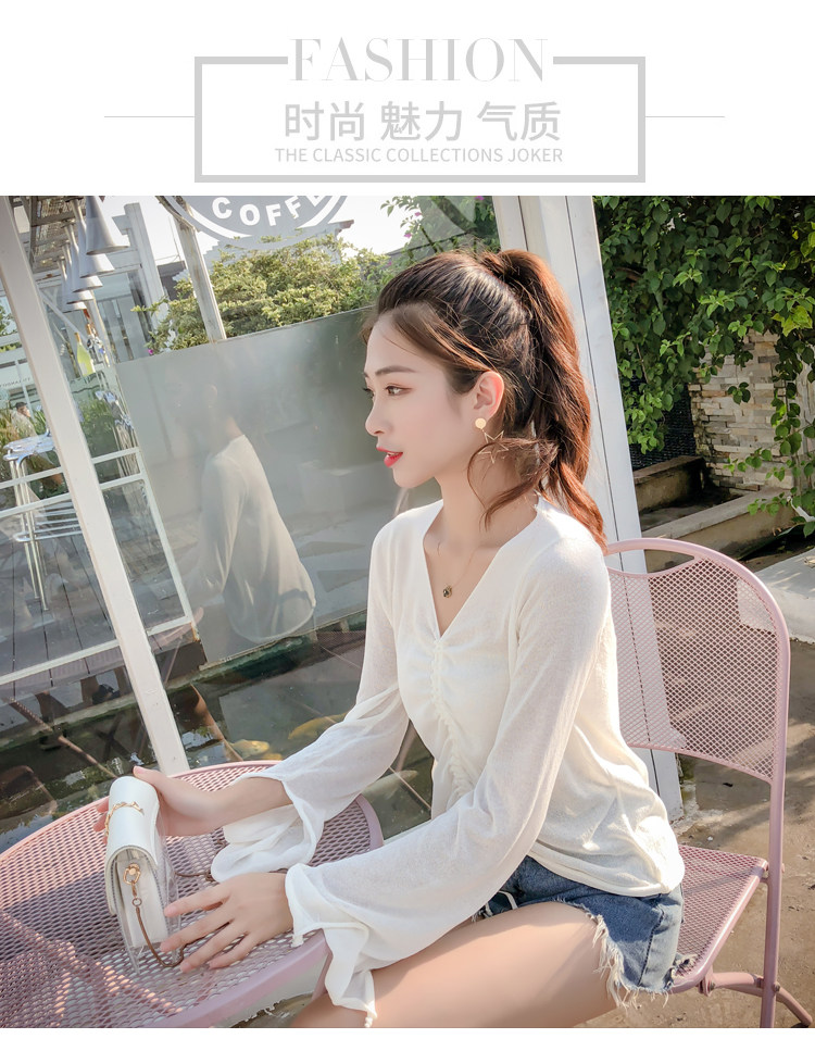 Летний трикотажный тонкий свитер, мегафон, лонгслив, 2020, оверсайз, V-образный вырез, на шнурках, защита от солнца