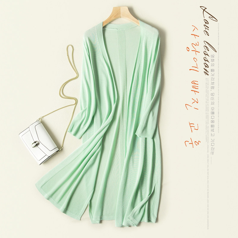 Длинная одежда для защиты от солнца, летняя куртка, пляжная трикотажная накидка, тонкий кардиган, средней длины, свободный крой