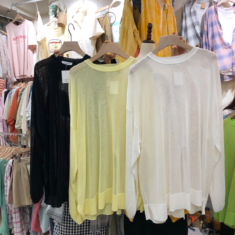 Новинка 2019 года в Южной Корее, летняя стильная свободная блузка для похудения с разрезом снизу, солнцезащитная блузка, женский вязаный топ средней длины из ледяного шелка
