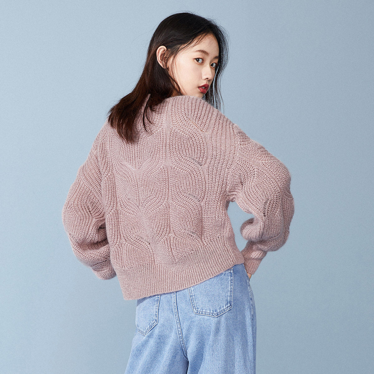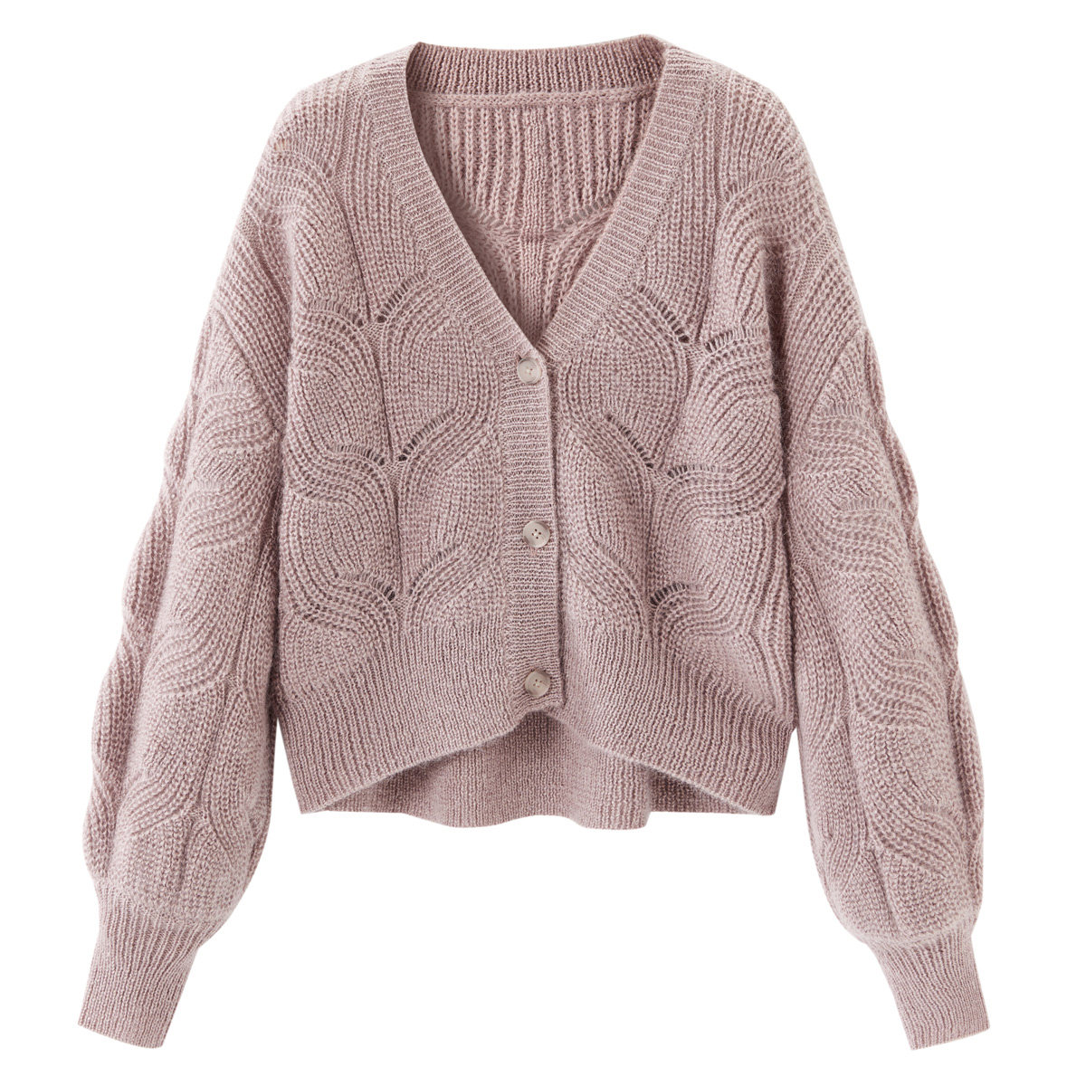 Кардиган, короткий сиреневый трикотажный свитер, 2019, осенний, оверсайз