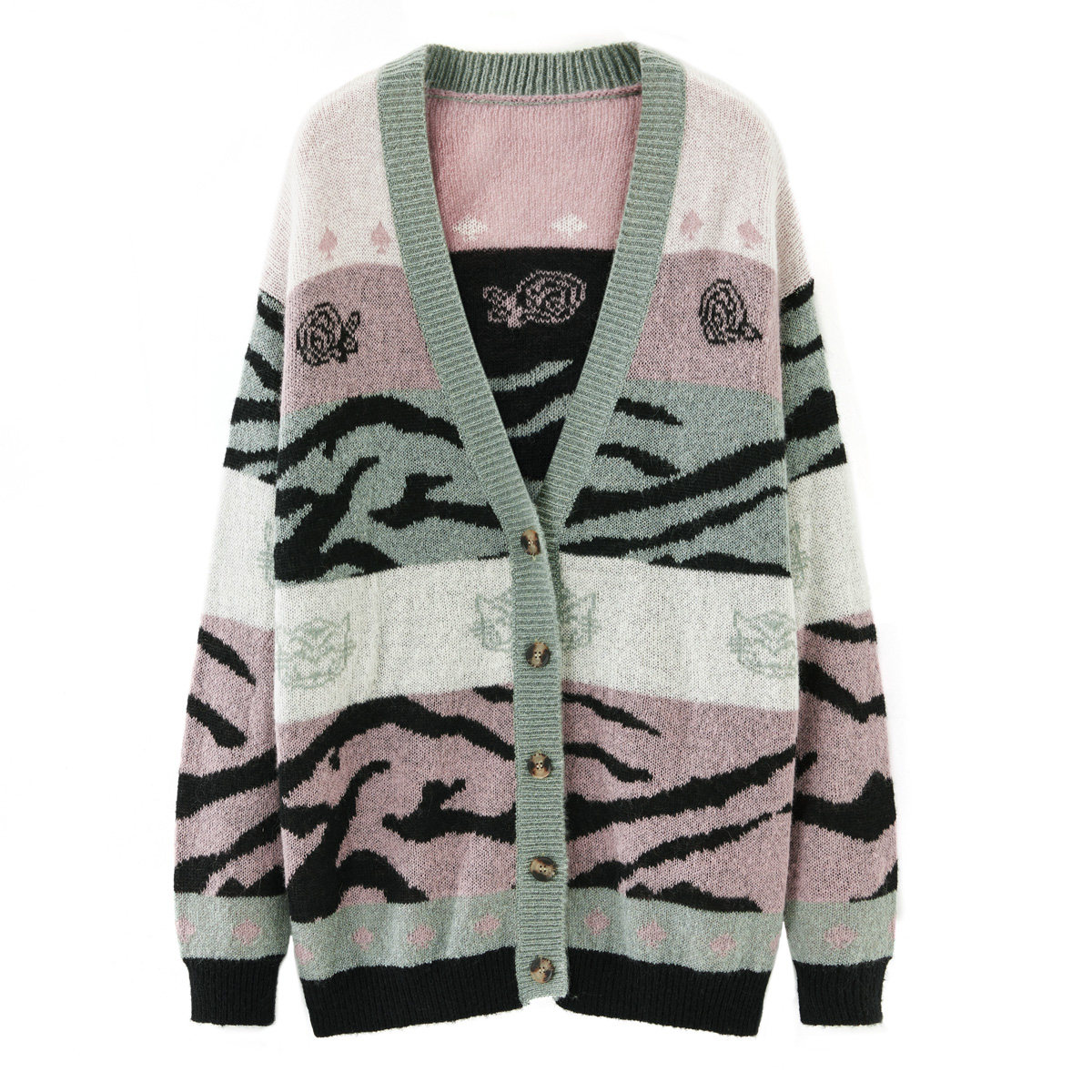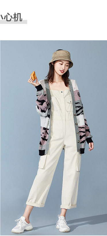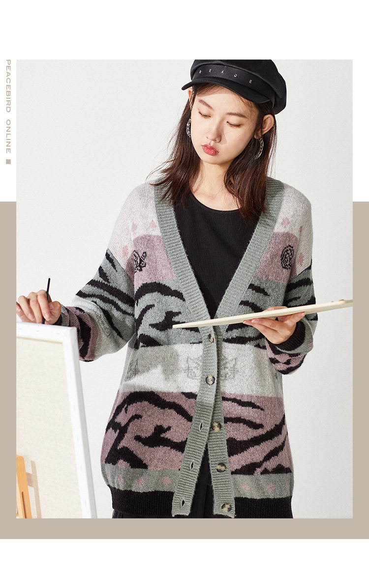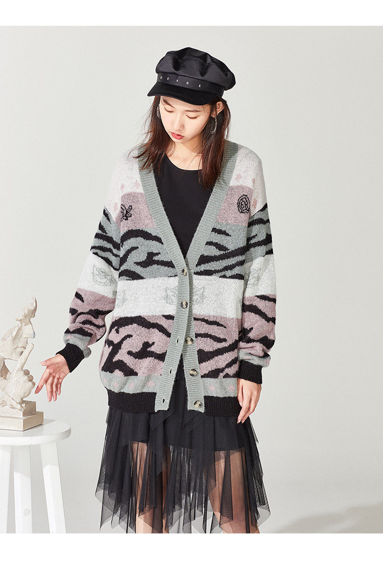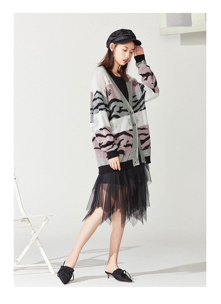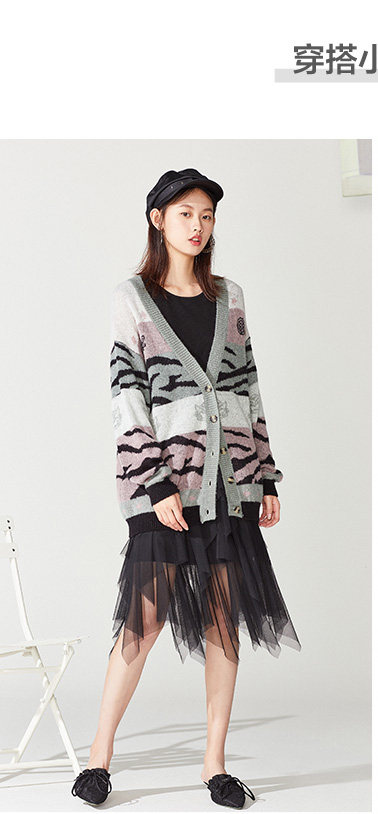 Кардиган, многоцветный трикотажный свитер, 2019, осенний, свободный крой