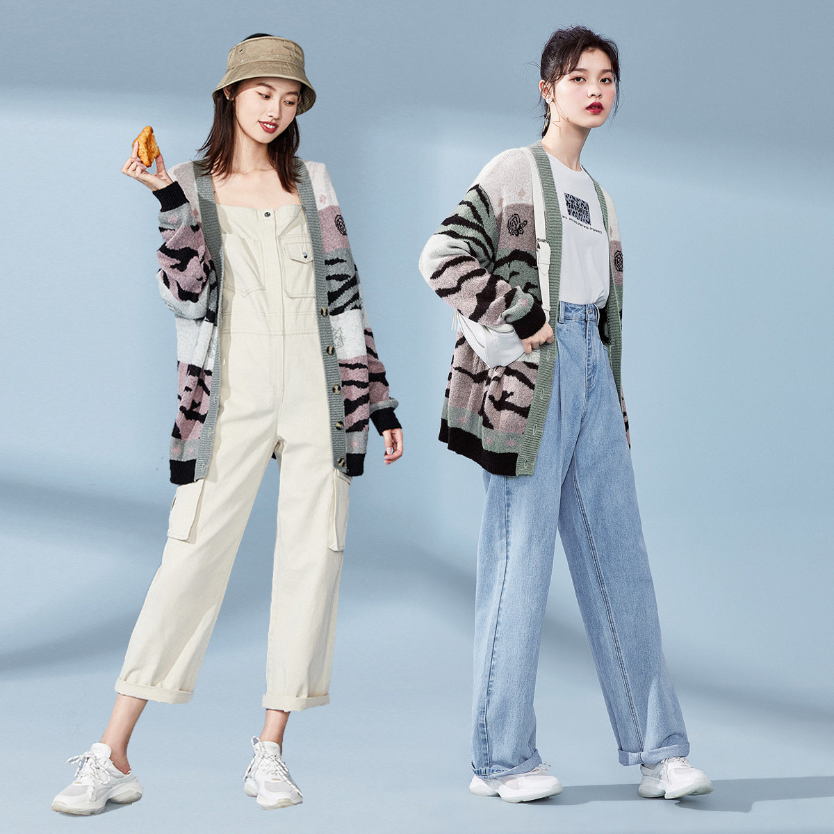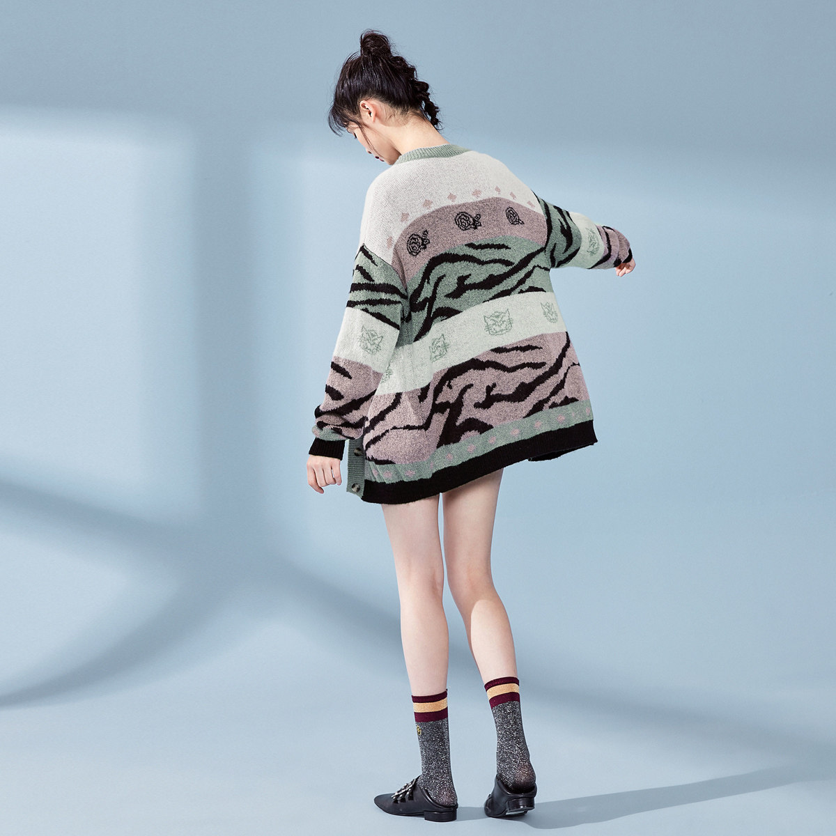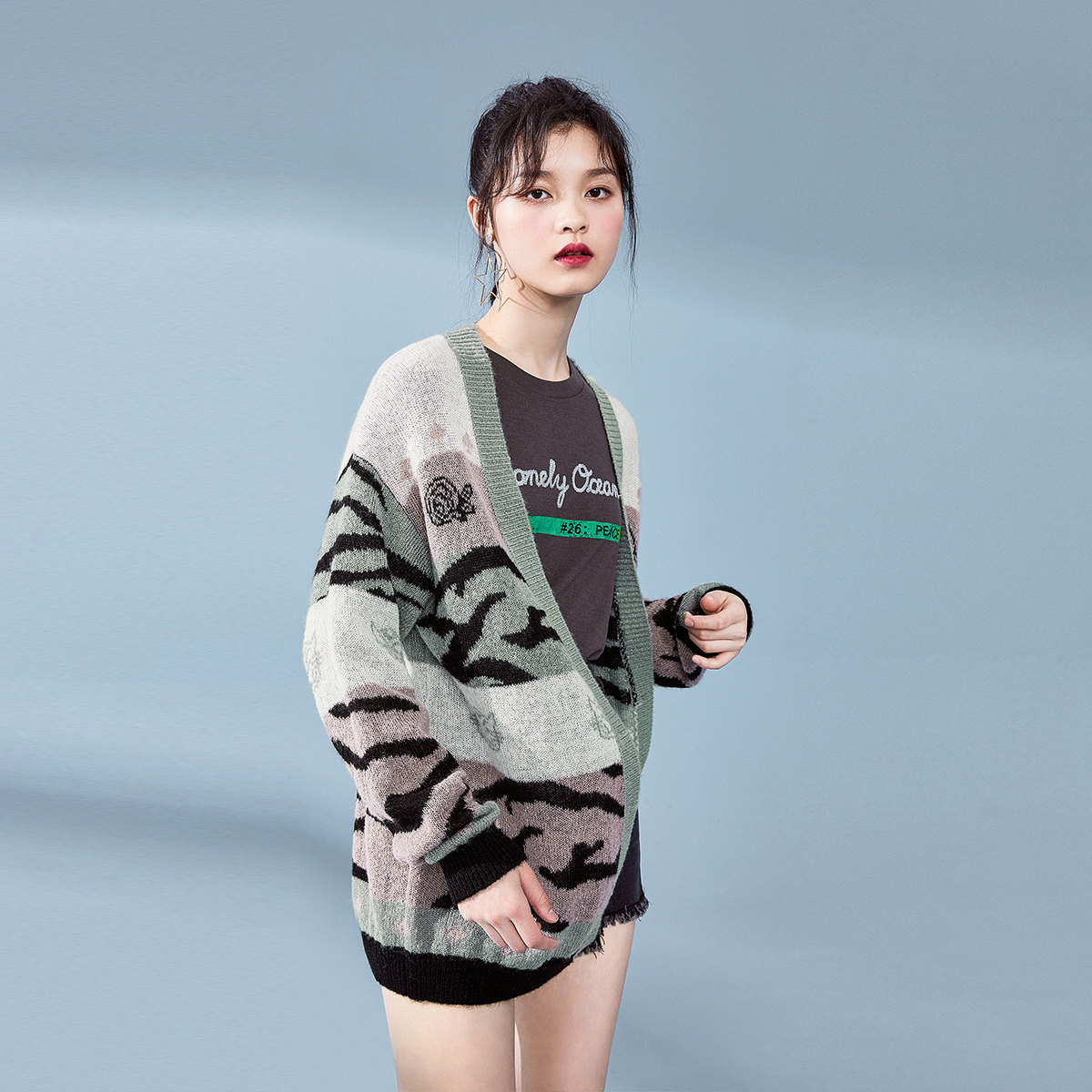 Кардиган, многоцветный трикотажный свитер, 2019, осенний, свободный крой