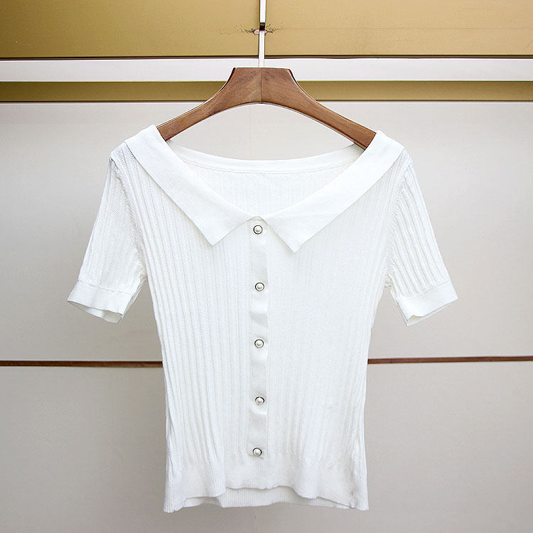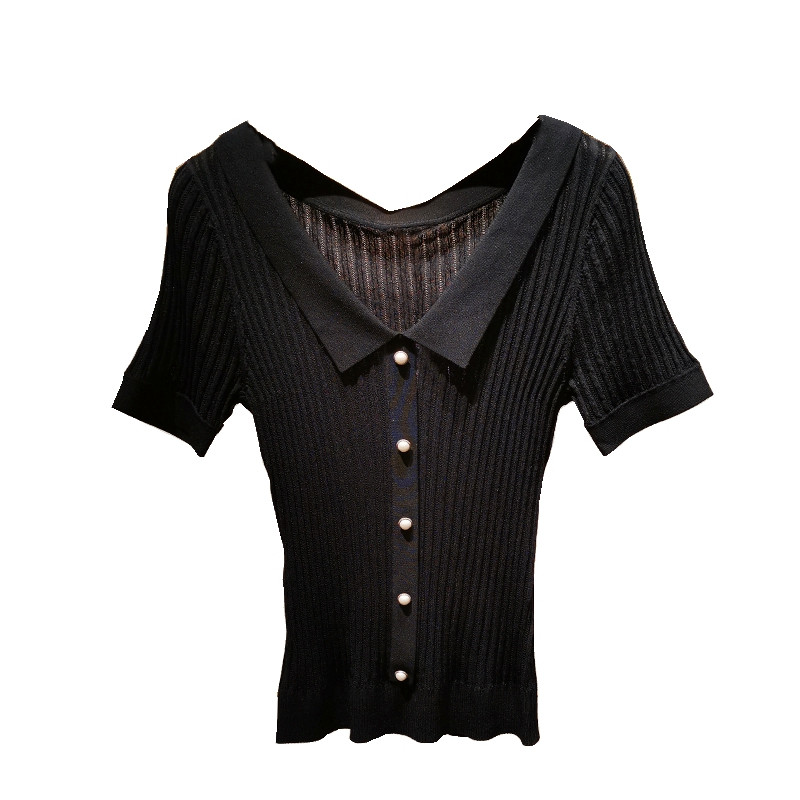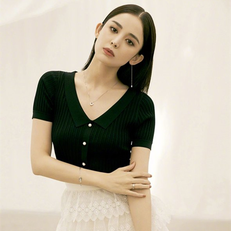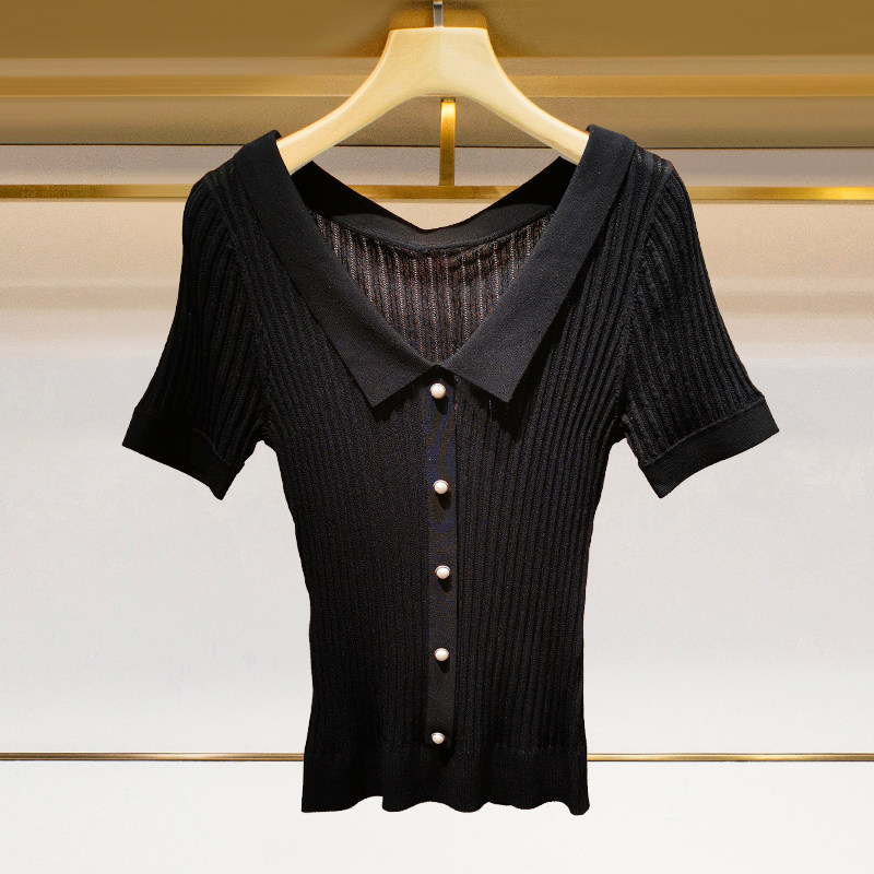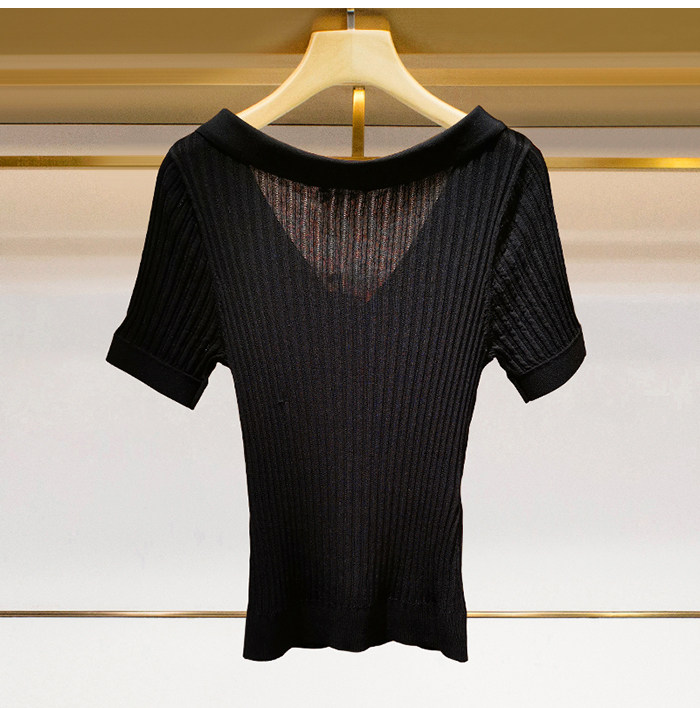 Трикотажный шелковый свитер, приталенная футболка, французский стиль, V-образный вырез, короткий рукав