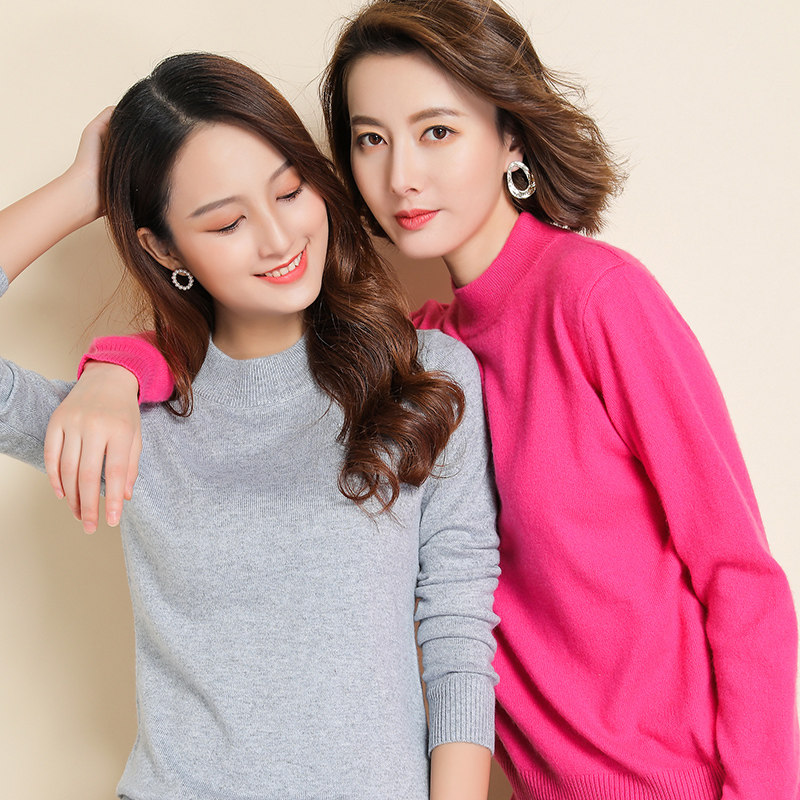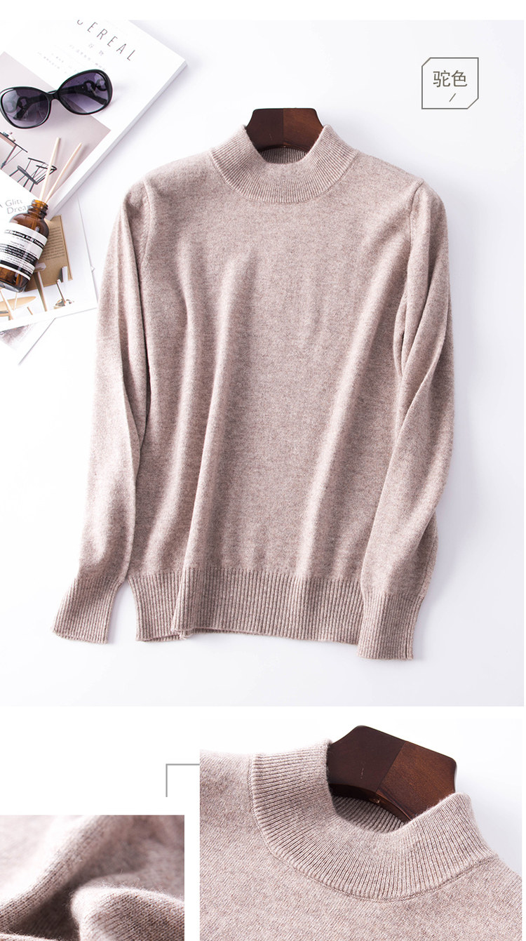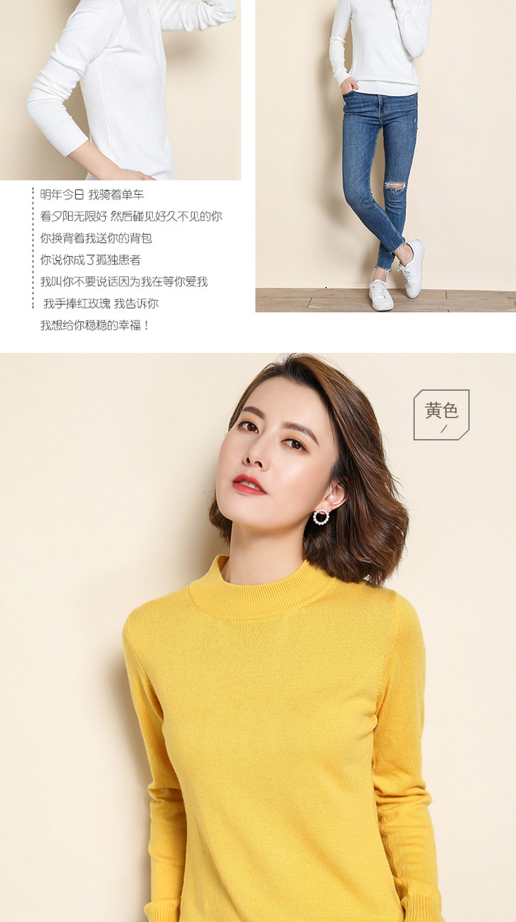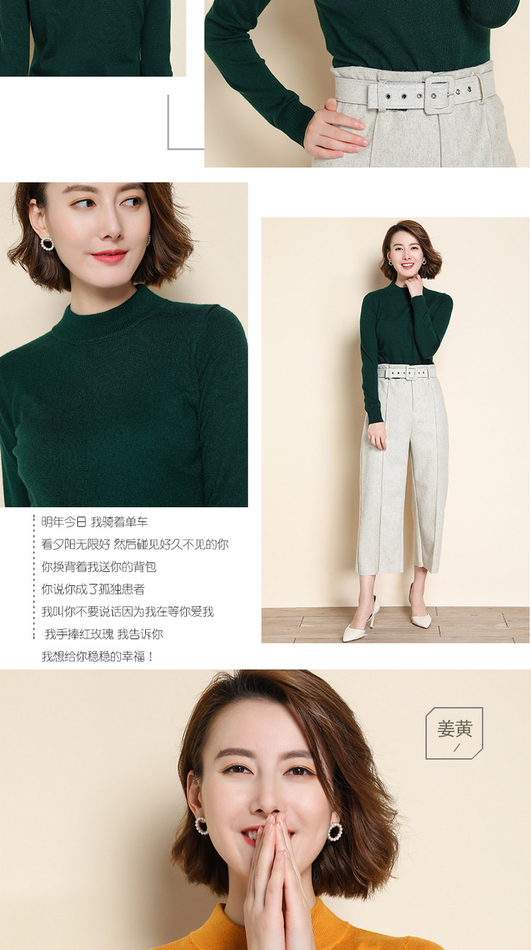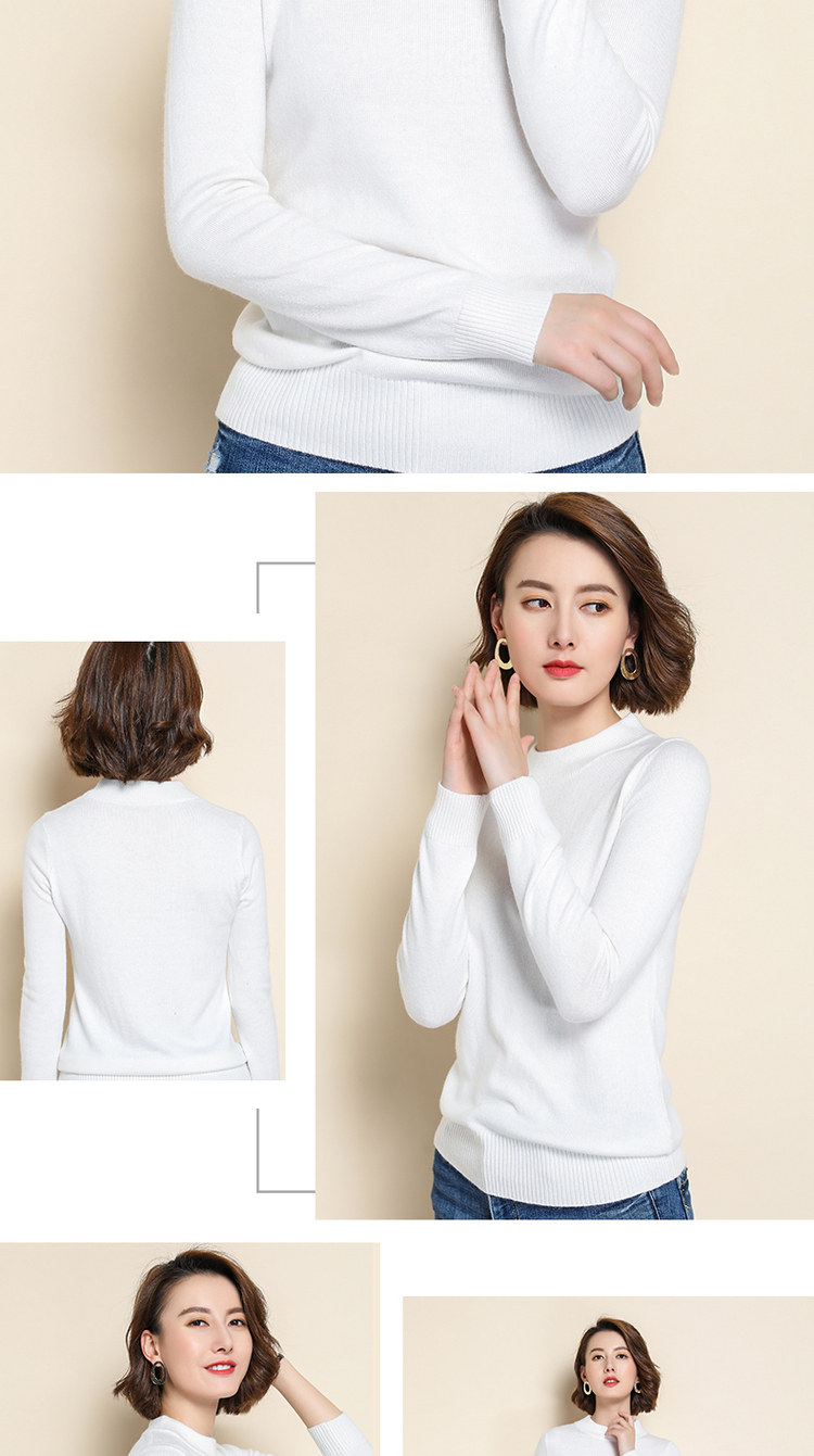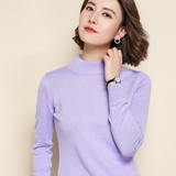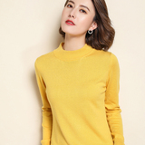 Демисезонный кашемировый короткий шерстяной базовый приятный телу свитер, высокий воротник, облегающий крой, в корейском стиле