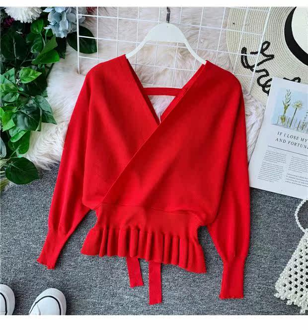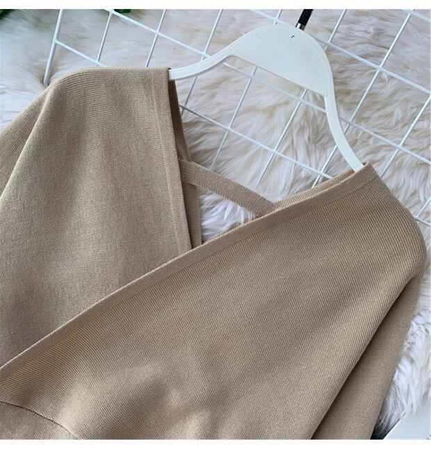 Демисезонный сексуальный трикотажный приталенный свитер, короткий базовый приятный телу корсет, V-образный вырез