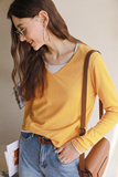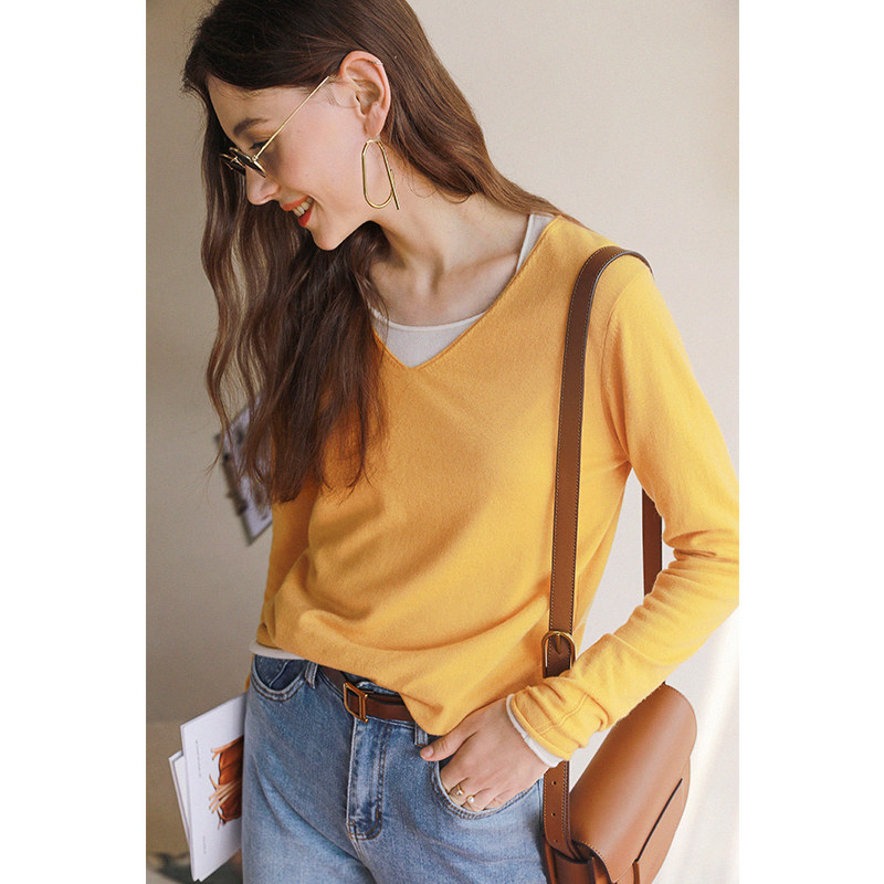Качественный шерстяной тонкий трикотажный лонгслив с круглым воротником, свитер, V-образный вырез