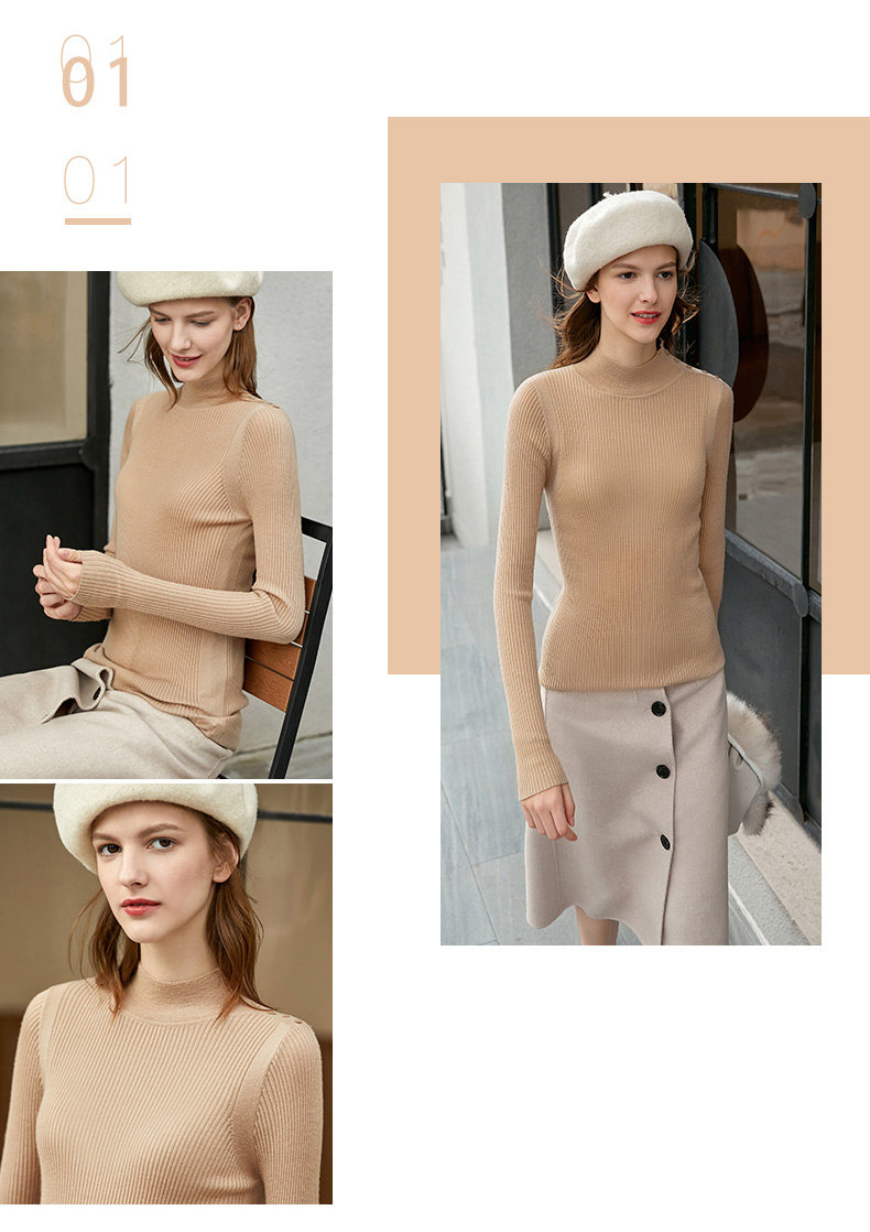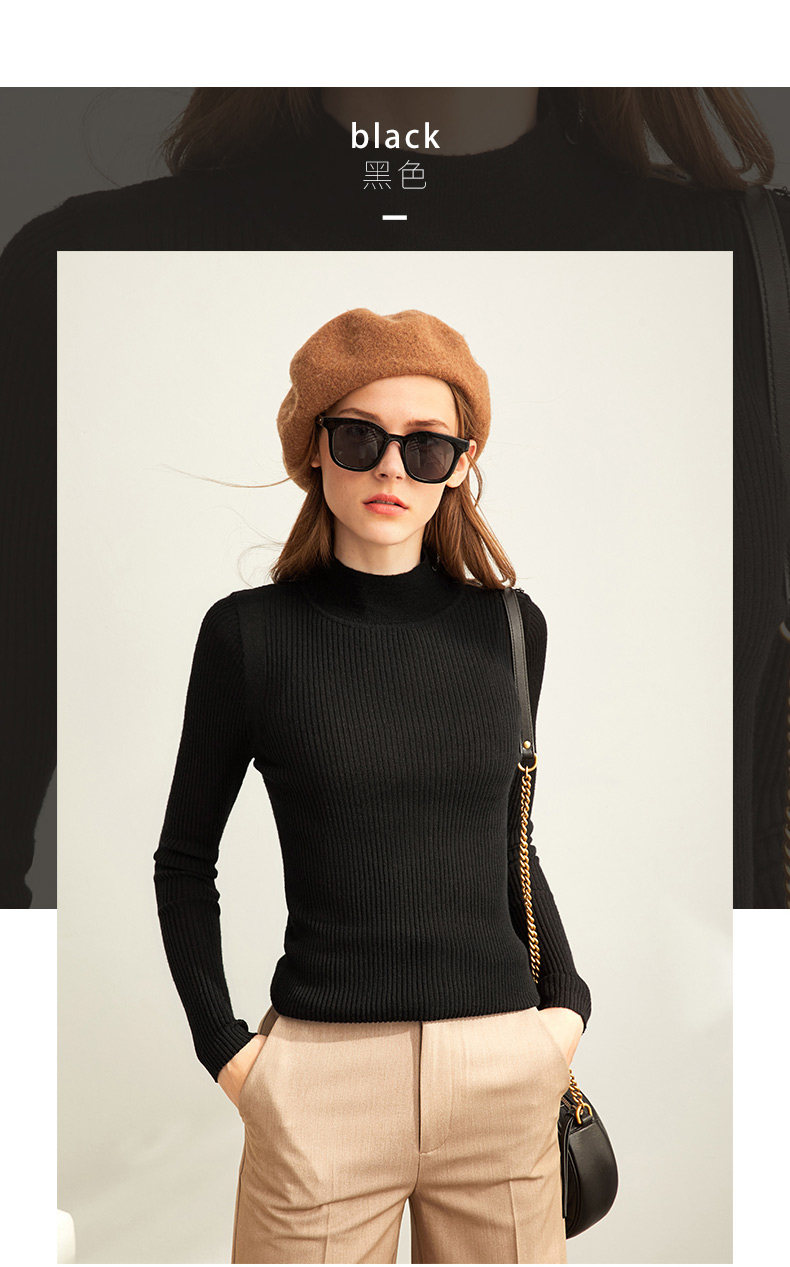 Amii Трикотажный демисезонный свитер, черный шерстяной базовый приятный телу лонгслив, в западном стиле, 2020, высокий воротник