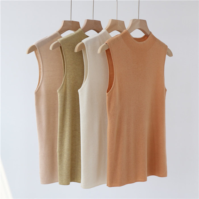 Демисезонный шерстяной трикотажный жилет, базовый свитер, широкая цветовая палитра, высокий воротник