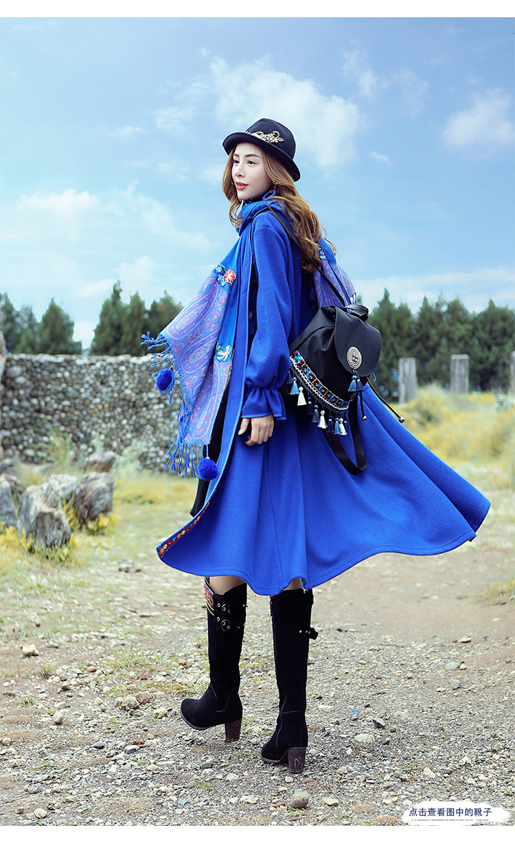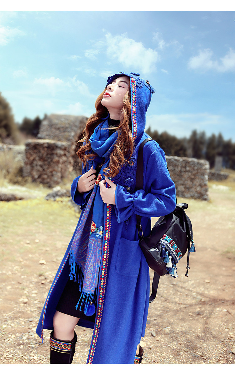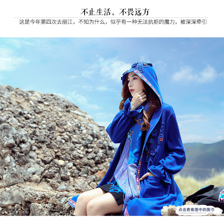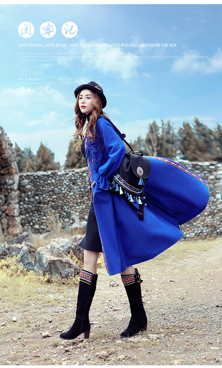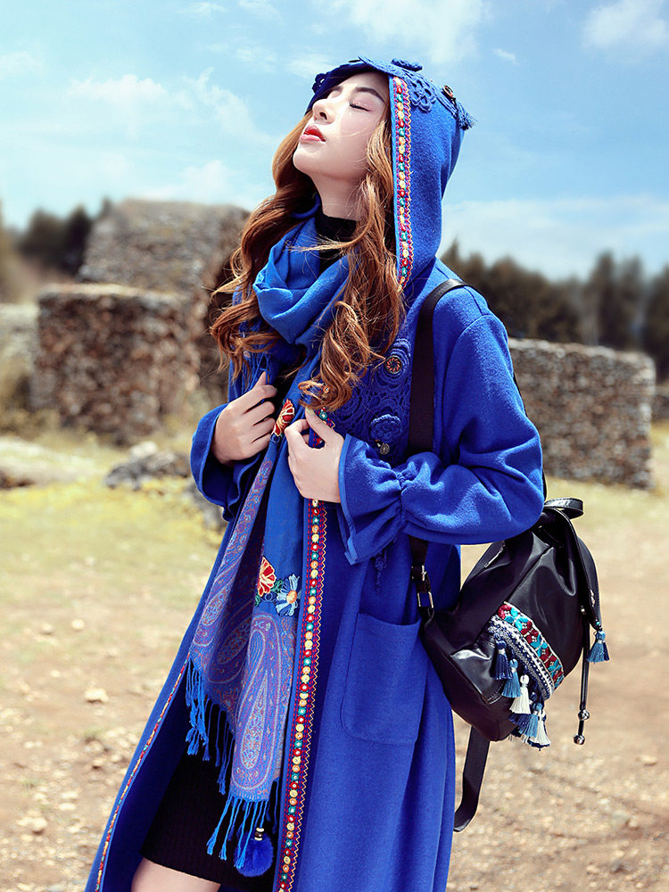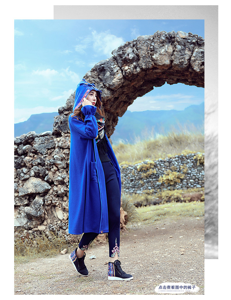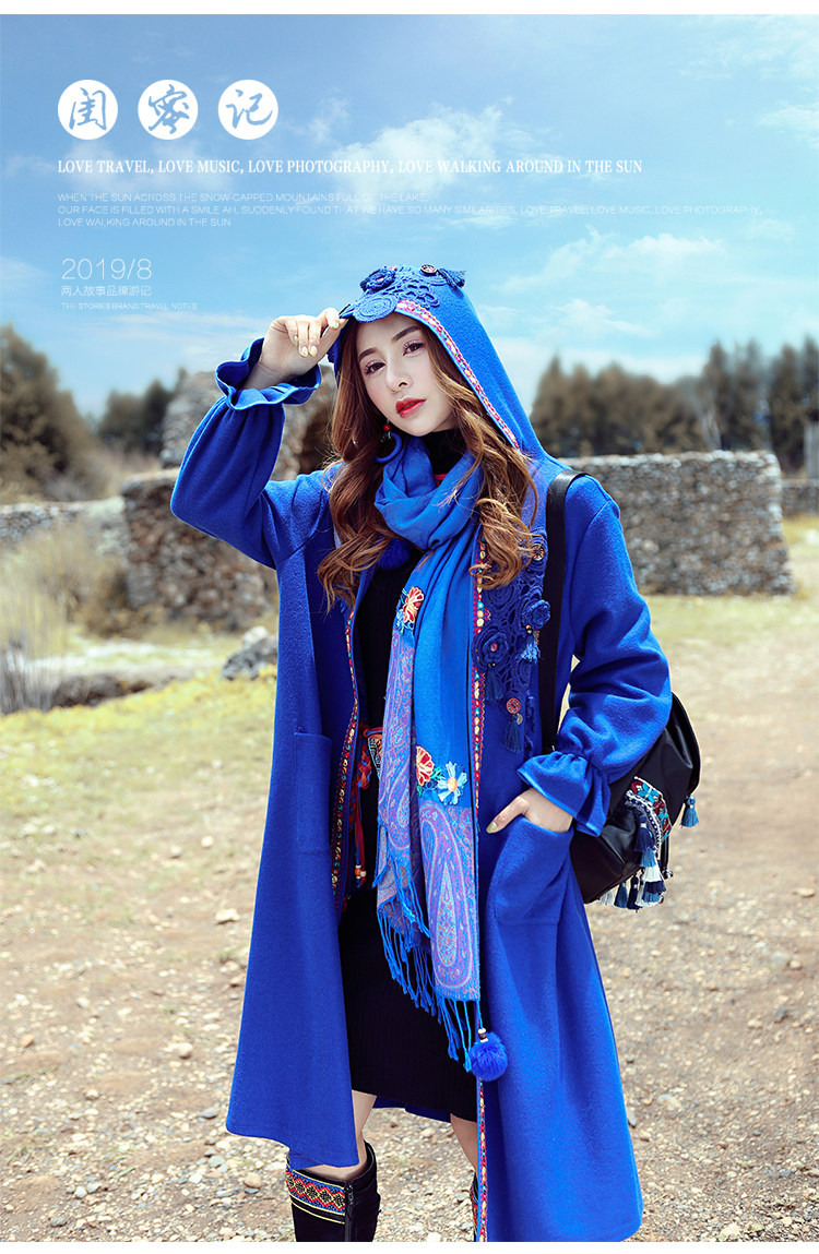 Двух людей из этнических стилей вышита средней длины куртка для туристической одежды для женщин на осень WT0357