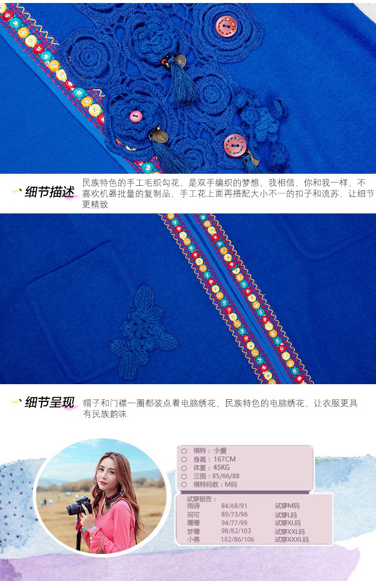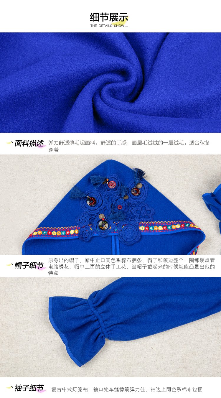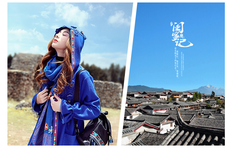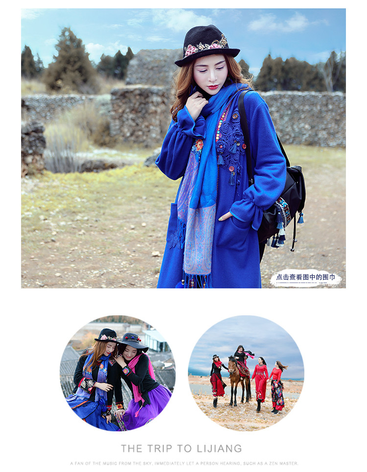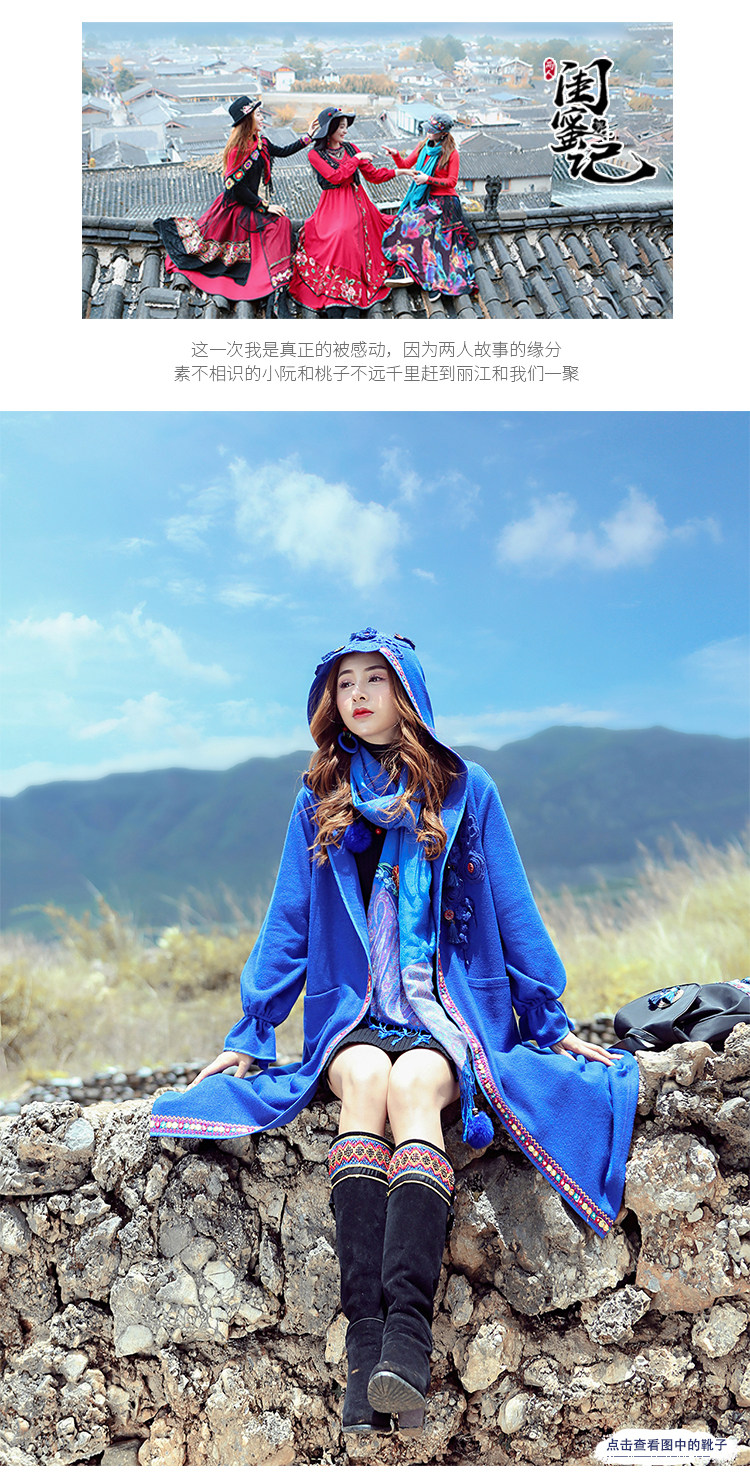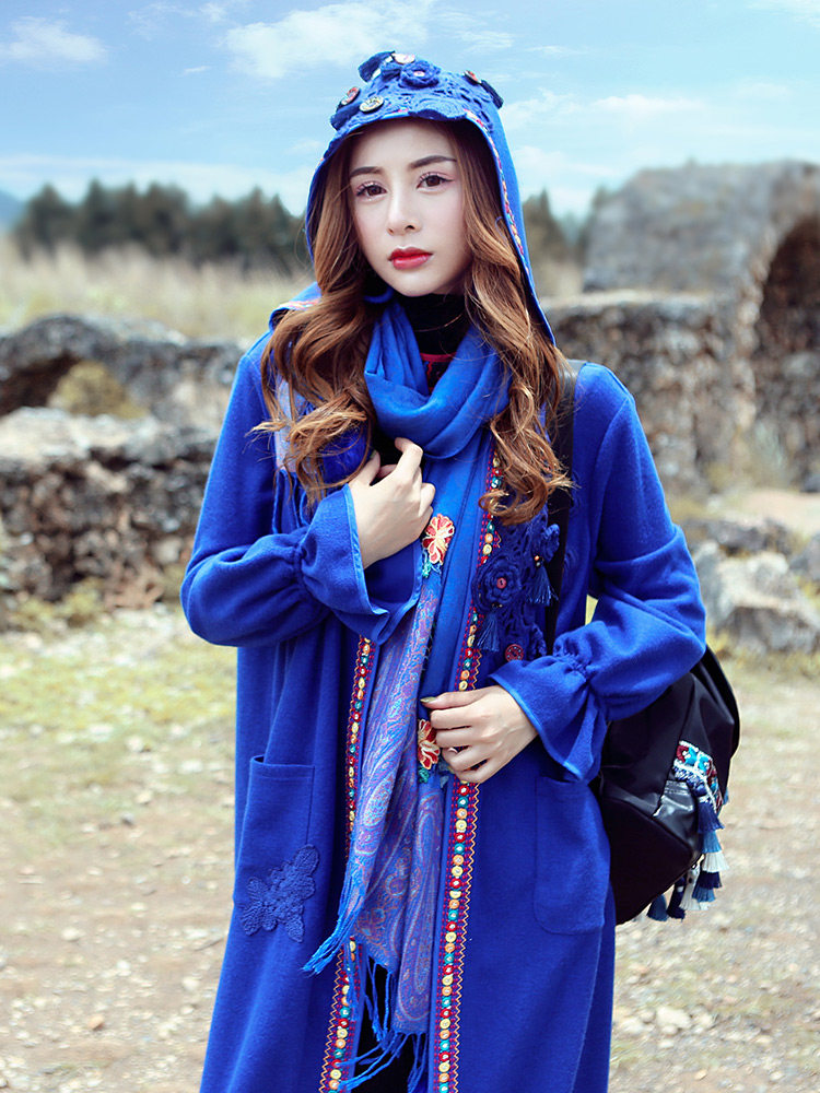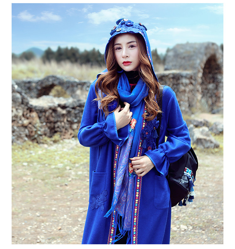 Двух людей из этнических стилей вышита средней длины куртка для туристической одежды для женщин на осень WT0357