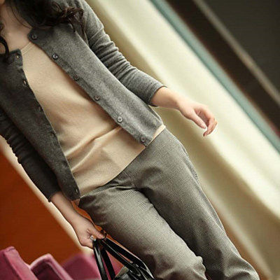Демисезонный трикотажный свитер, кашемировый кардиган, короткая базовая куртка с круглым воротником, в корейском стиле