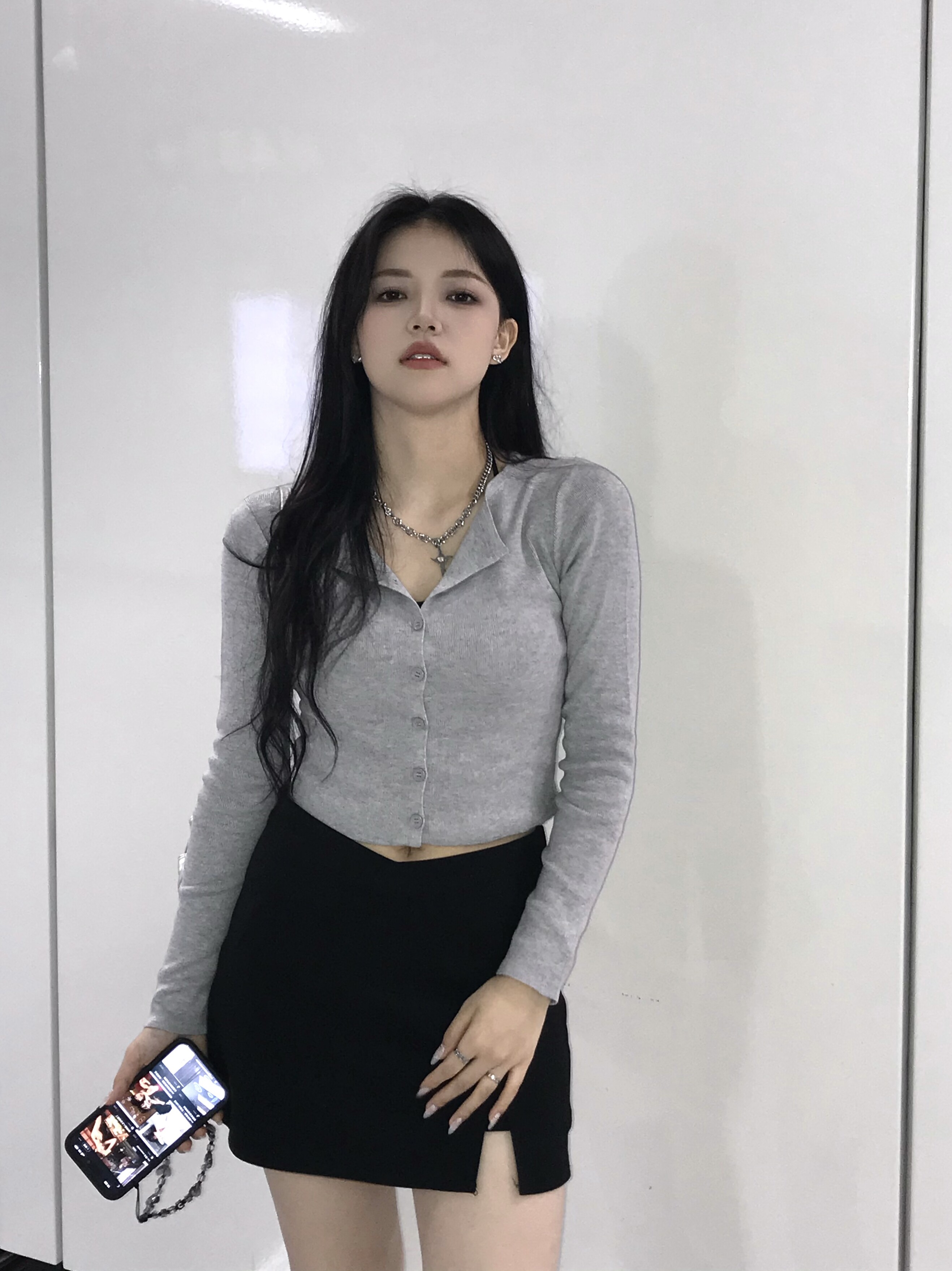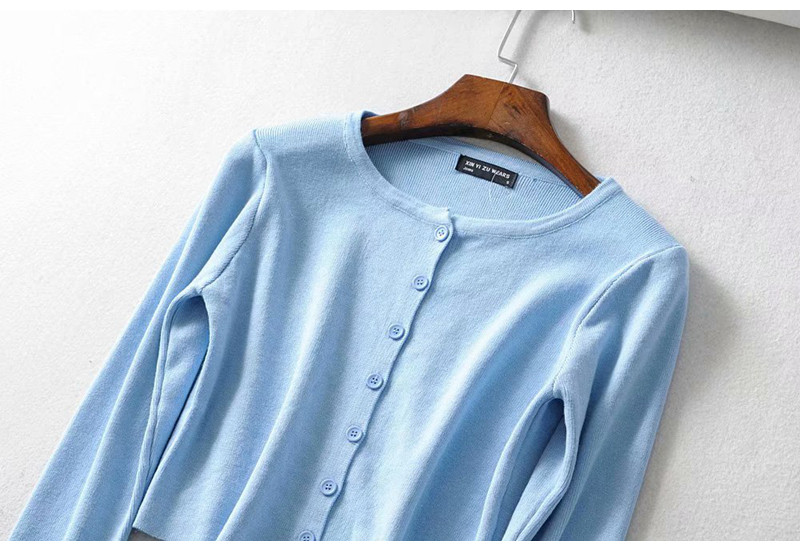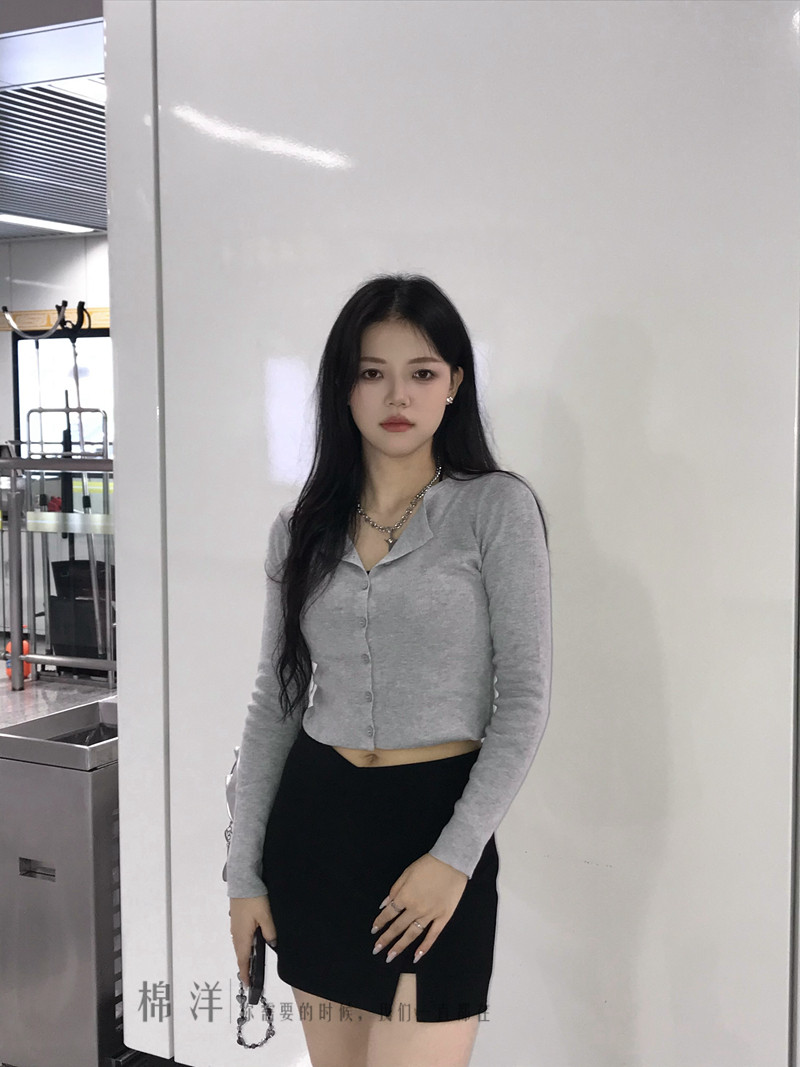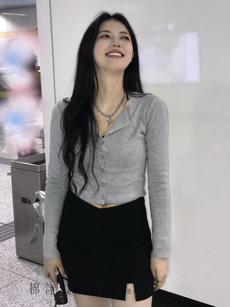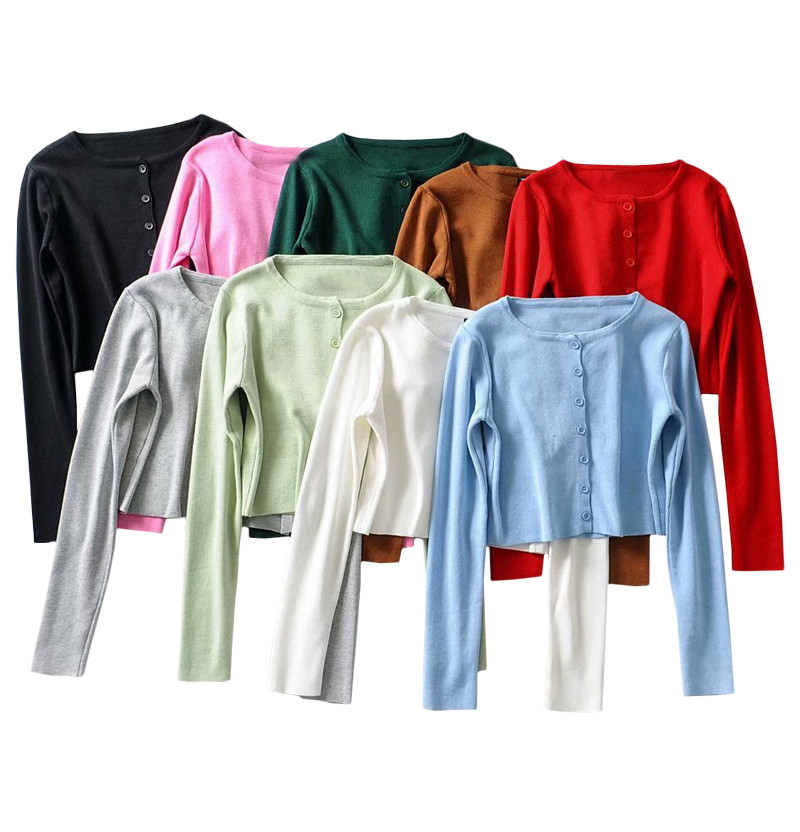 Булавка, кардиган, трикотажный лонгслив с круглым воротником, высокая талия, Франция