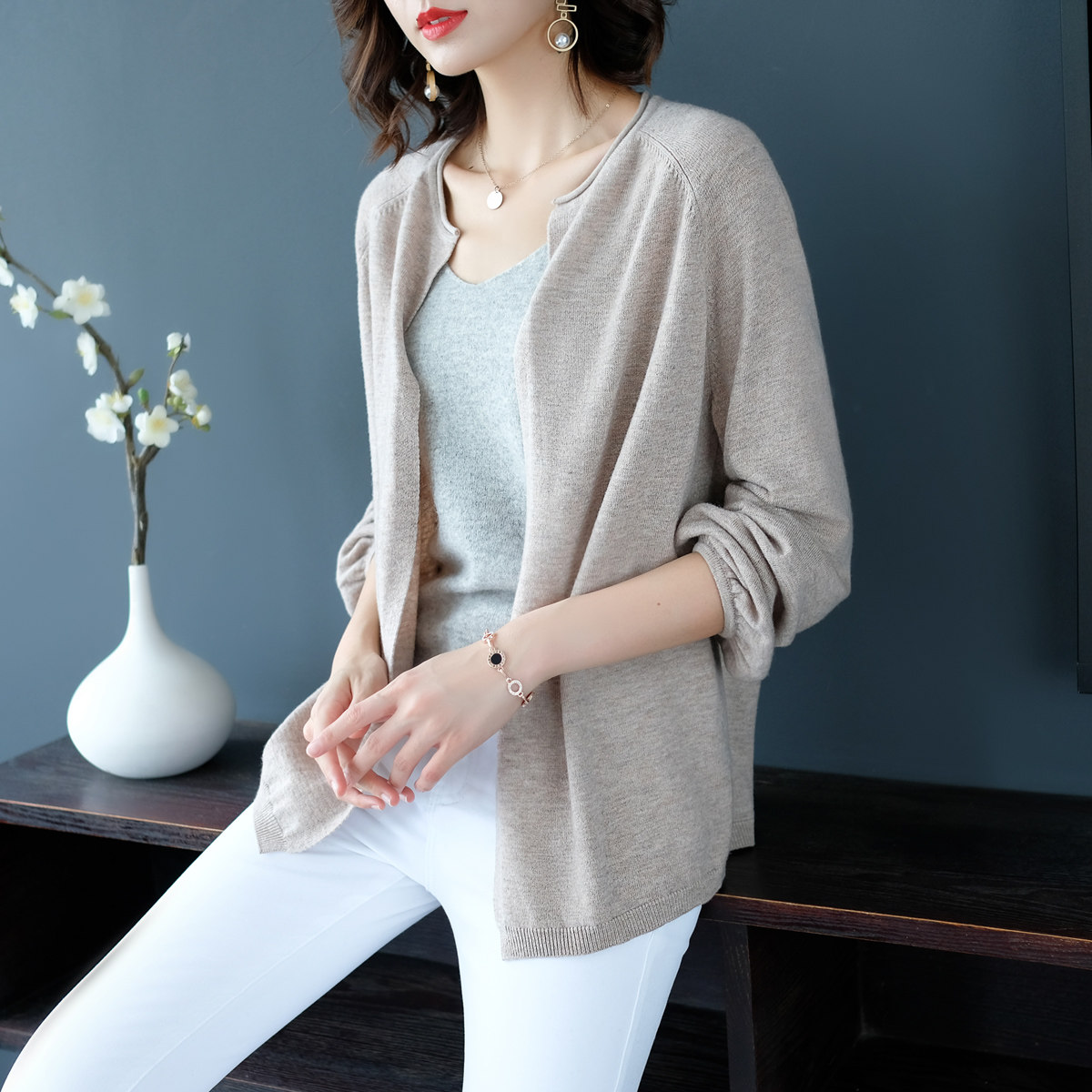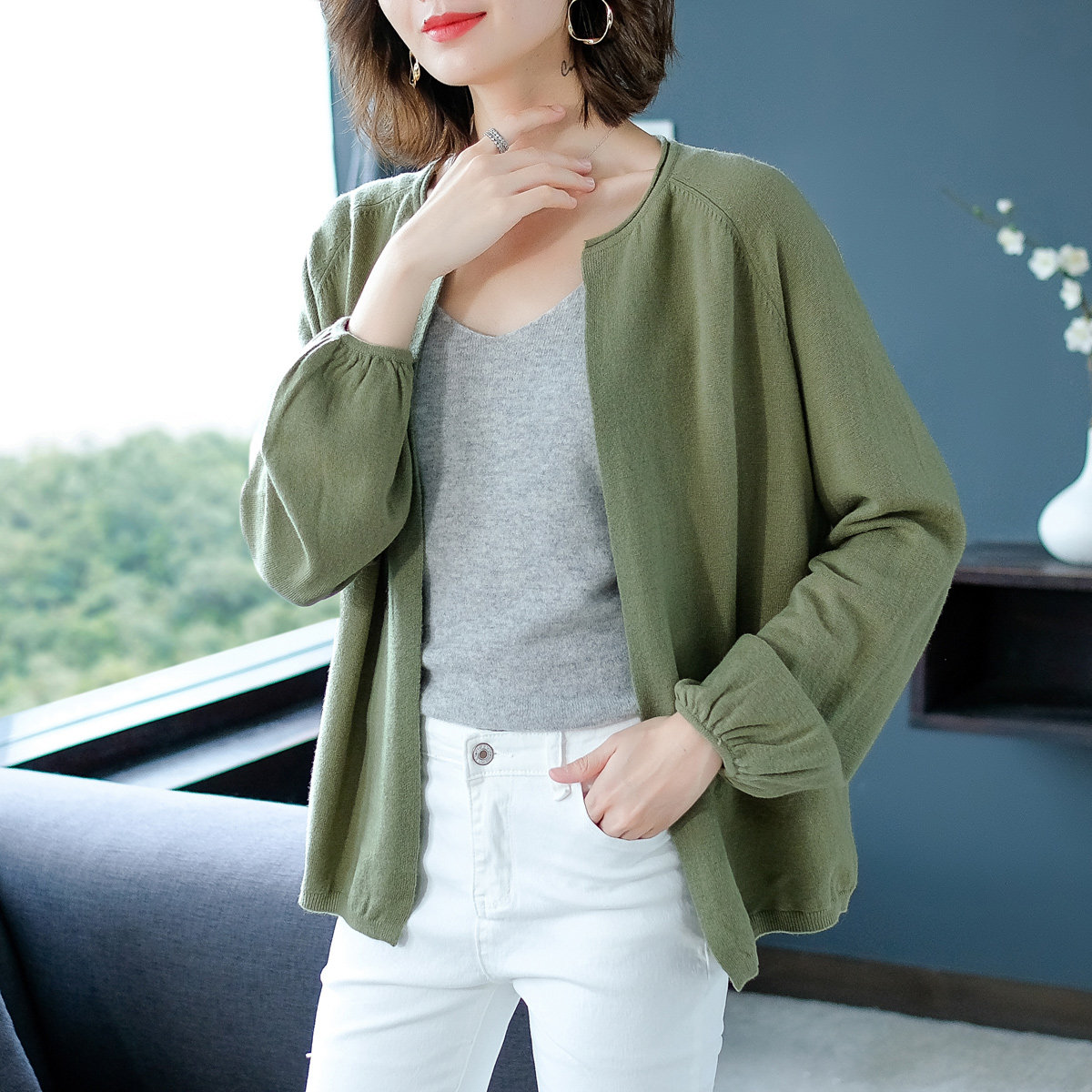 Шерстяной кардиган, свитер, куртка, большой размер, в корейском стиле