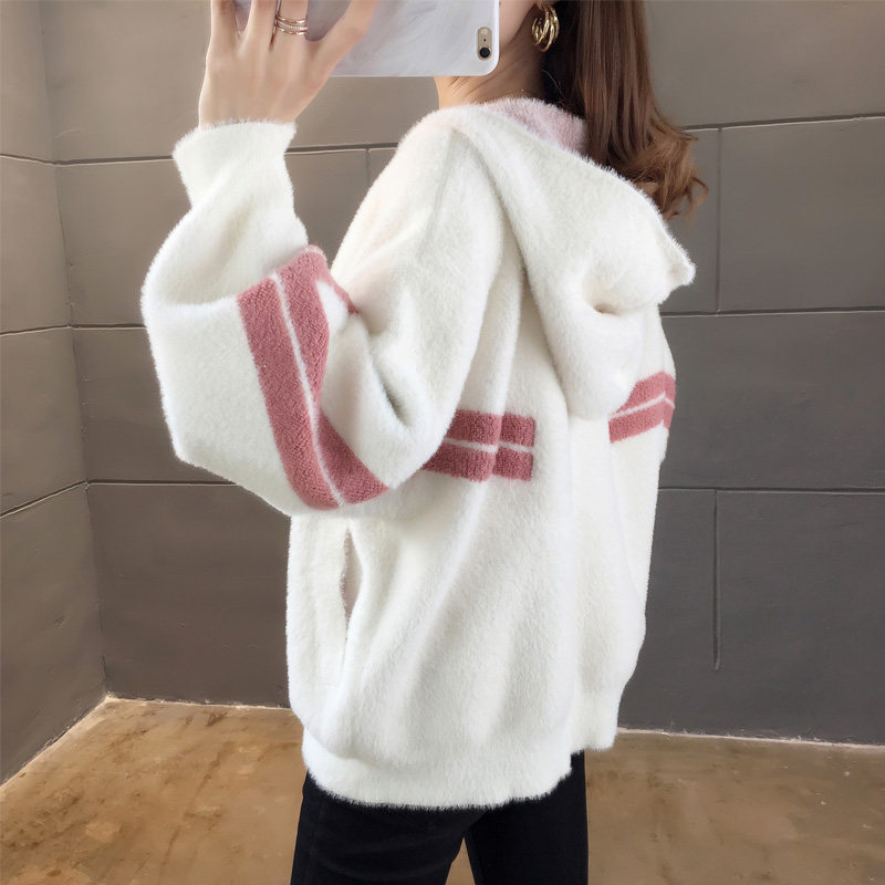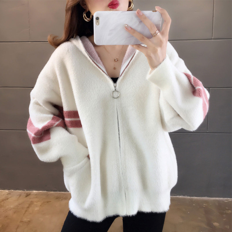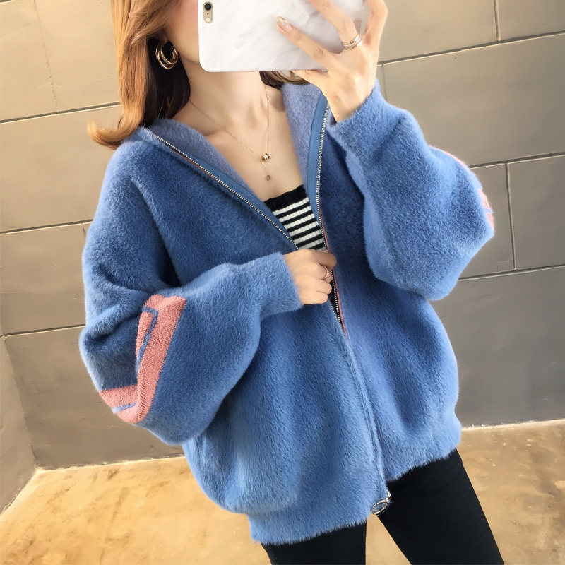 Демисезонный бархатный свитер с капюшоном, трикотажная куртка для отдыха с молнией, 2020, оверсайз, по фигуре