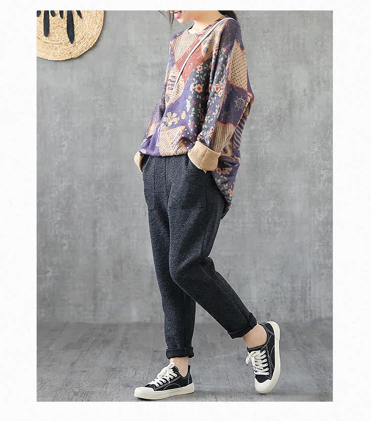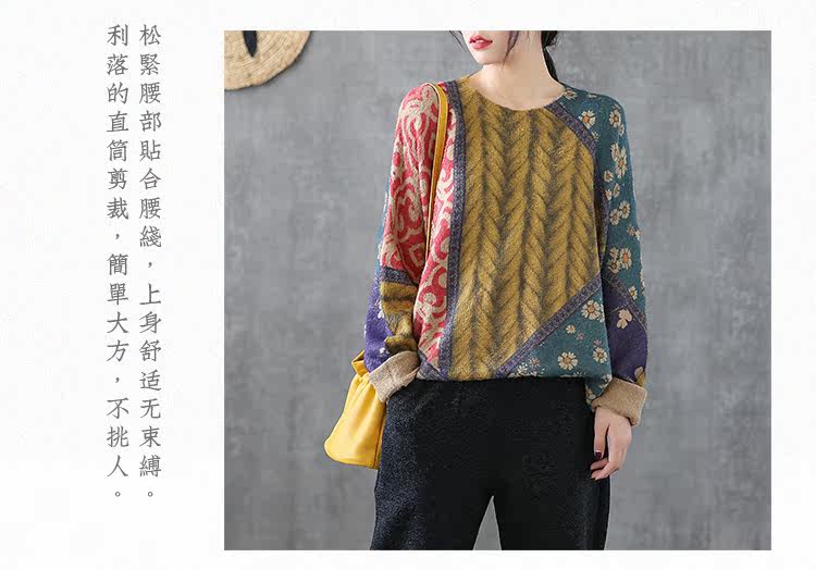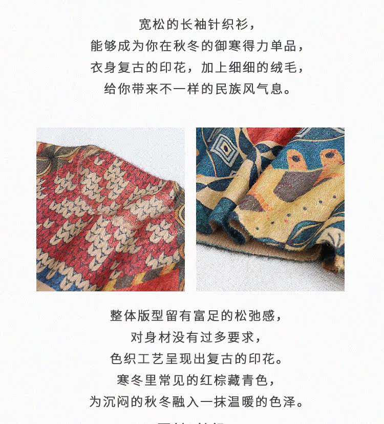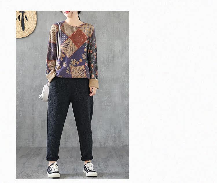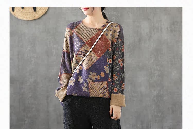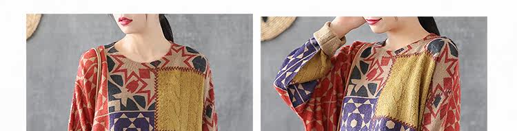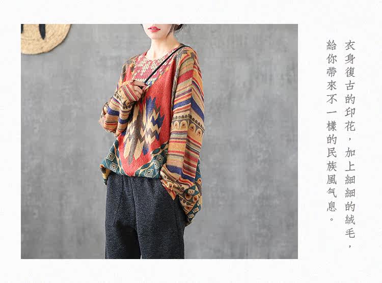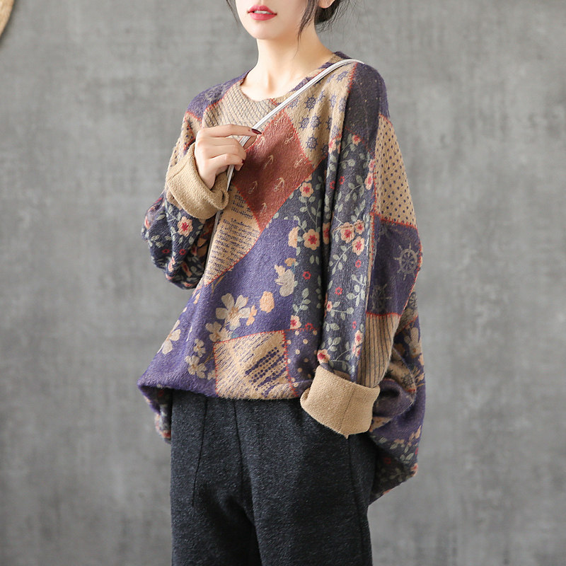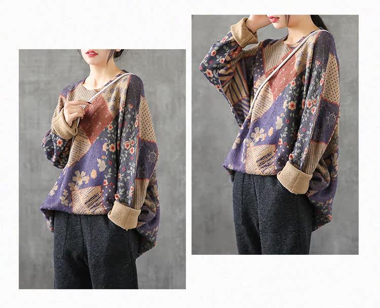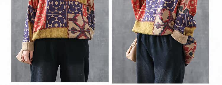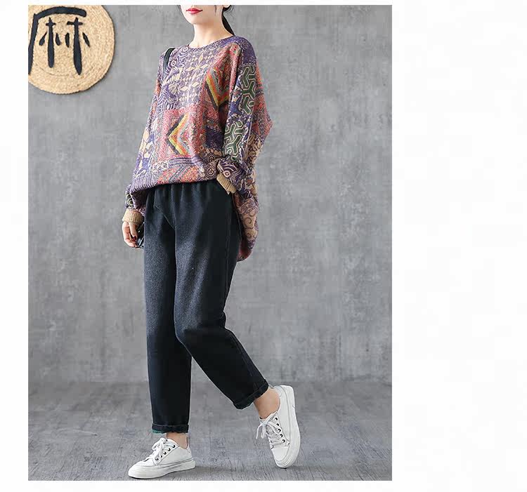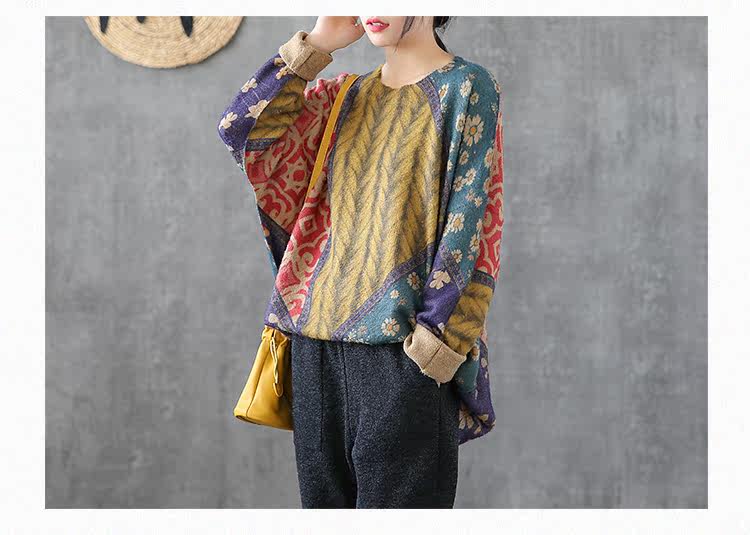 Ретро этнический окрашенный трикотажный свитер, лонгслив, базовое приятное телу демисезонное термобелье, этнический стиль, оверсайз