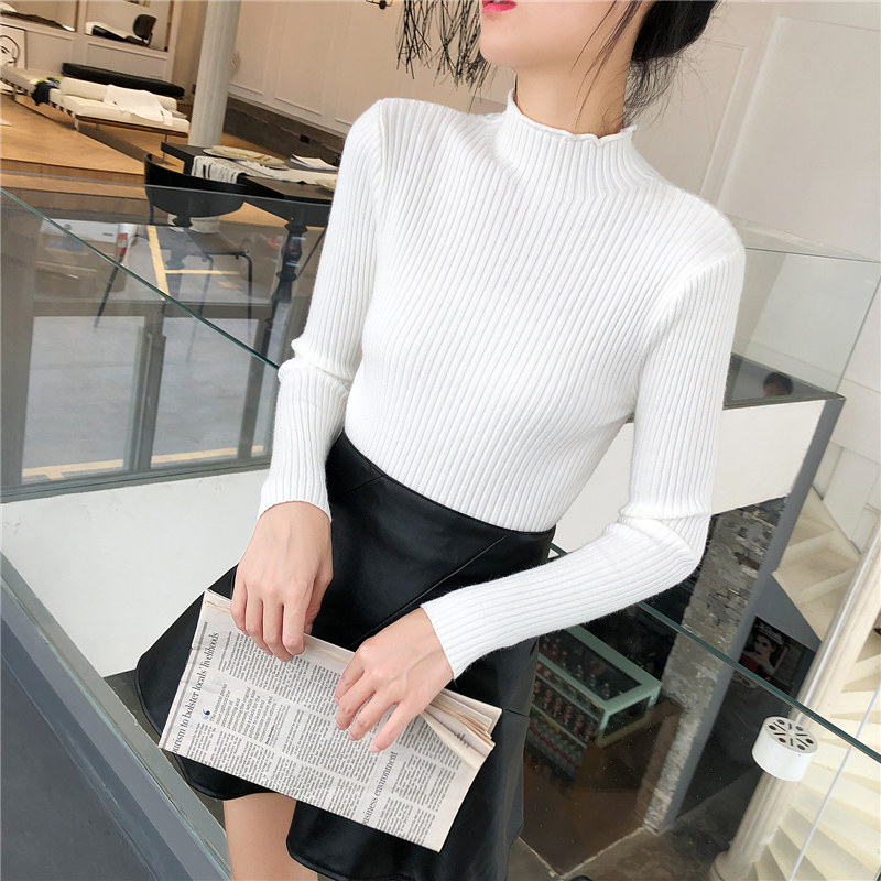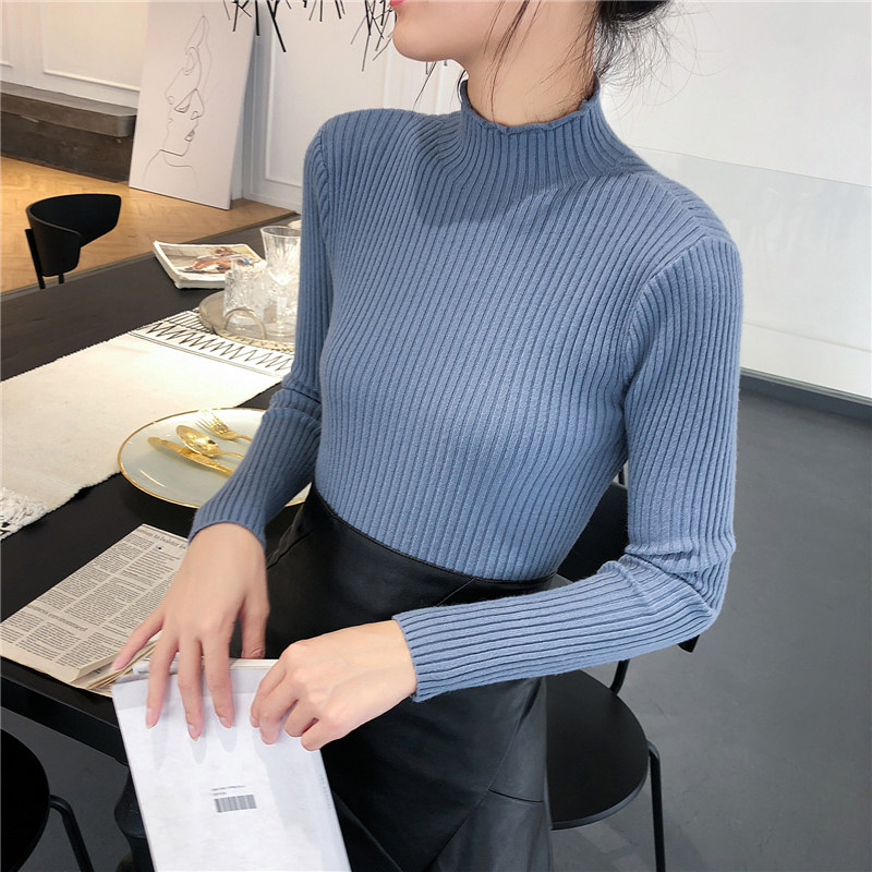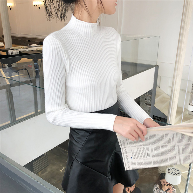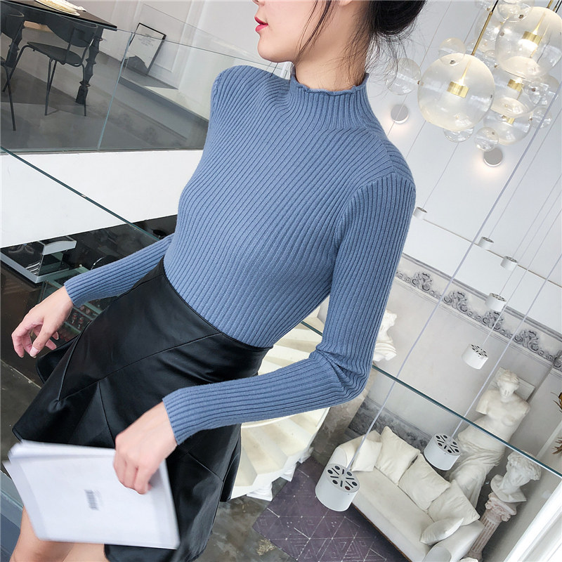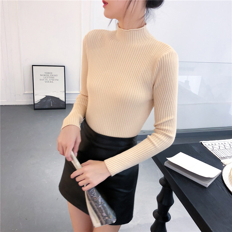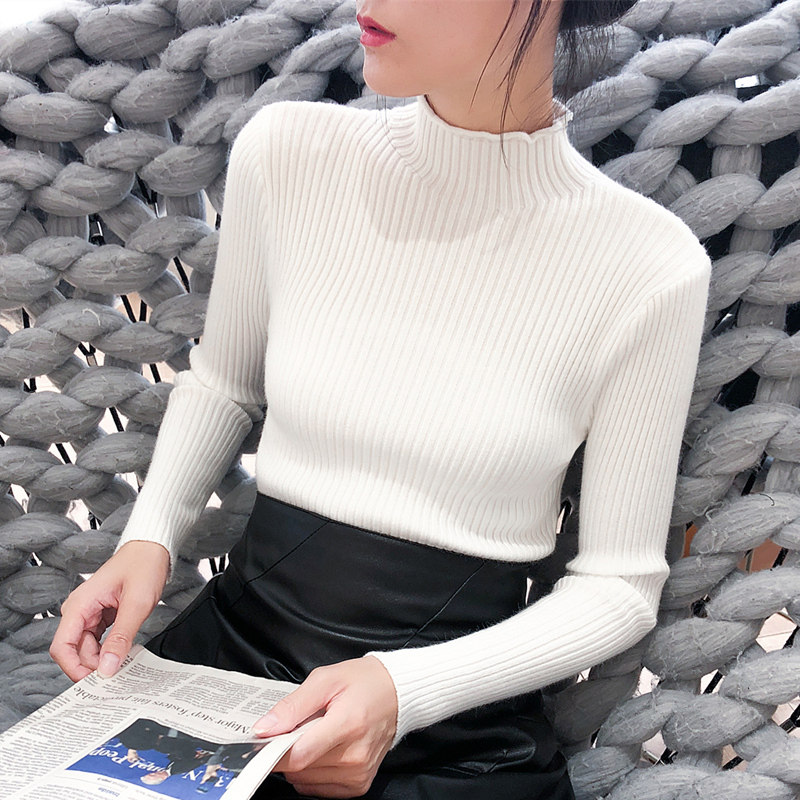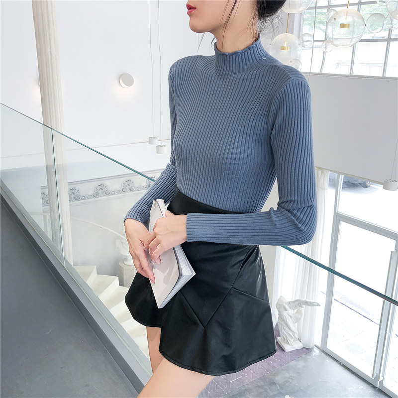 Демисезонный свитер, трикотажный короткий базовый приятный телу лонгслив, высокий воротник, в обтяжку, в западном стиле