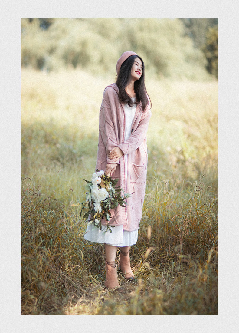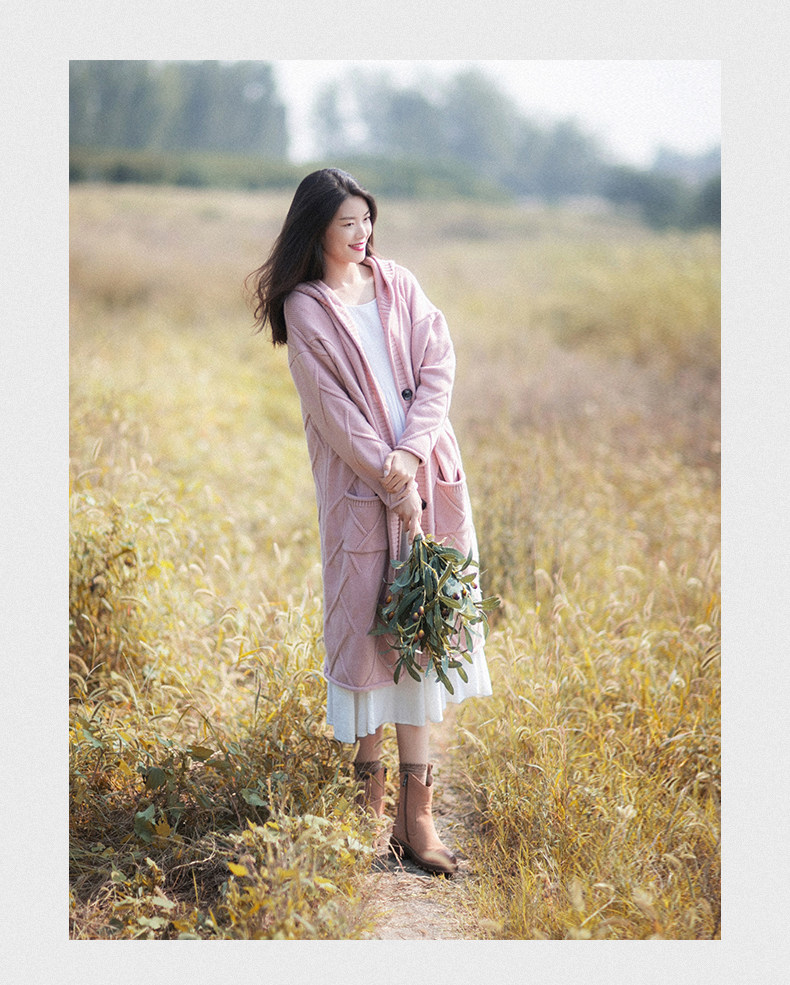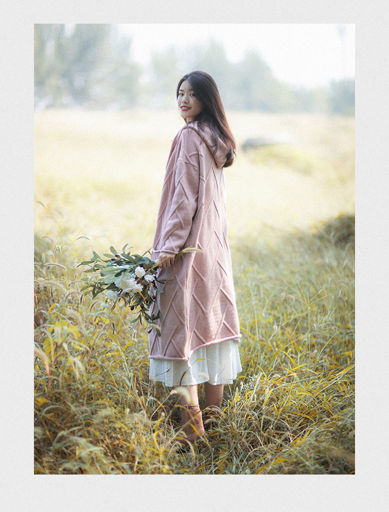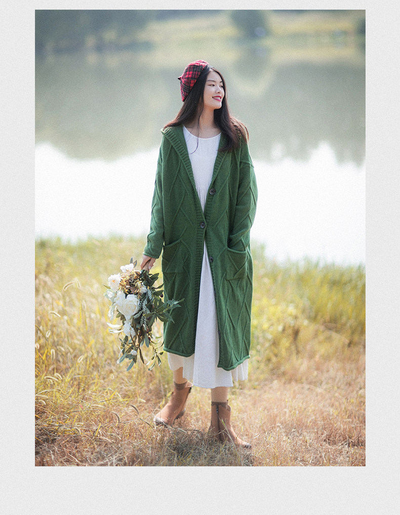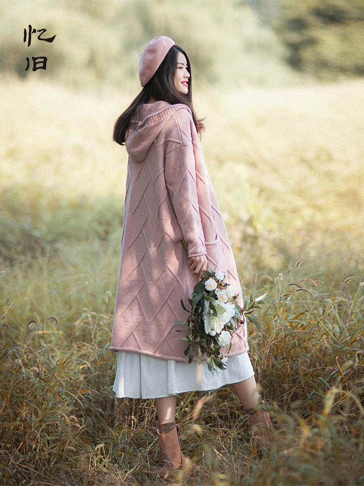 Осенний кардиган с капюшоном, ретро длинный свитер, куртка, коллекция 2023, оверсайз