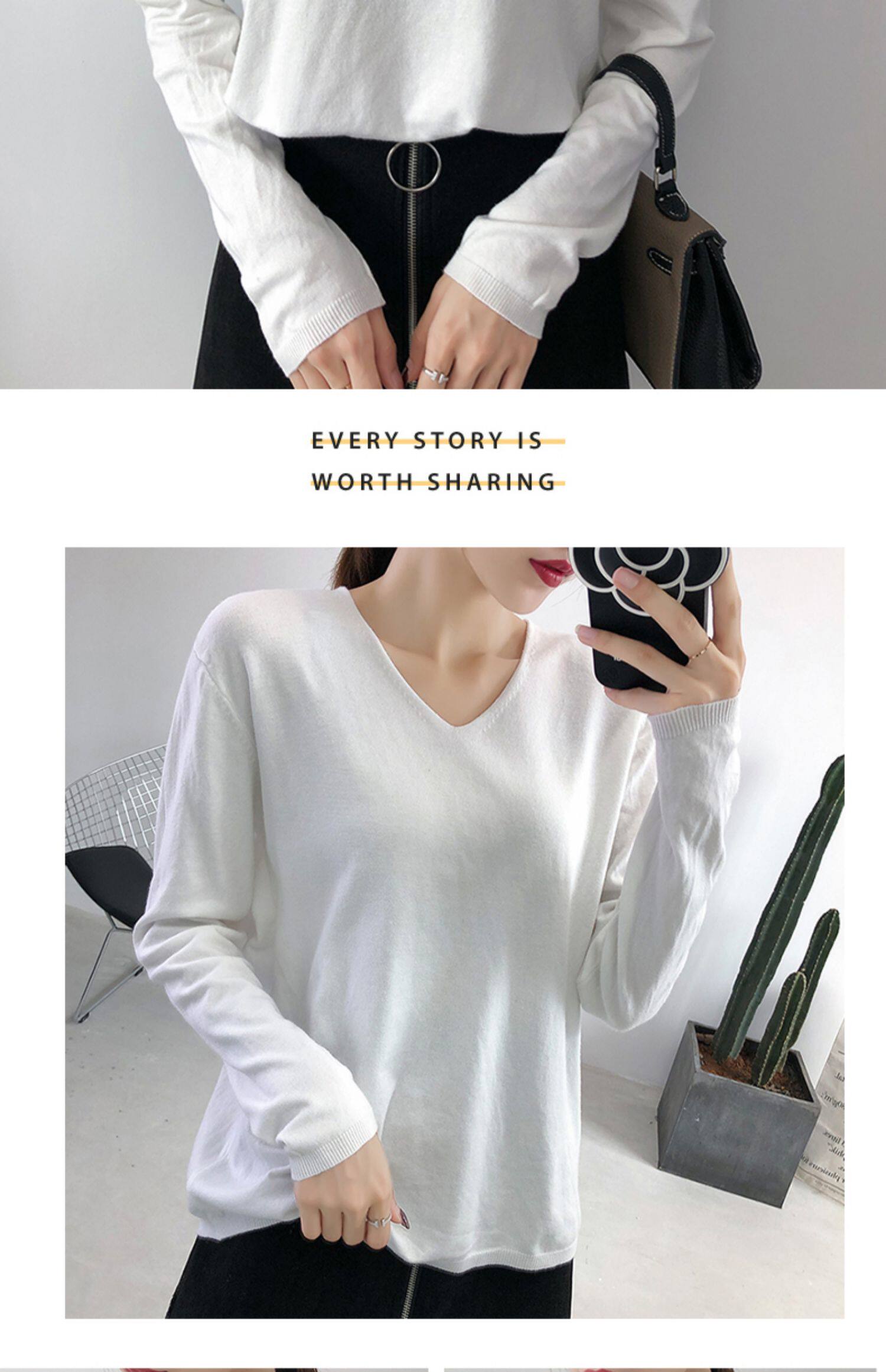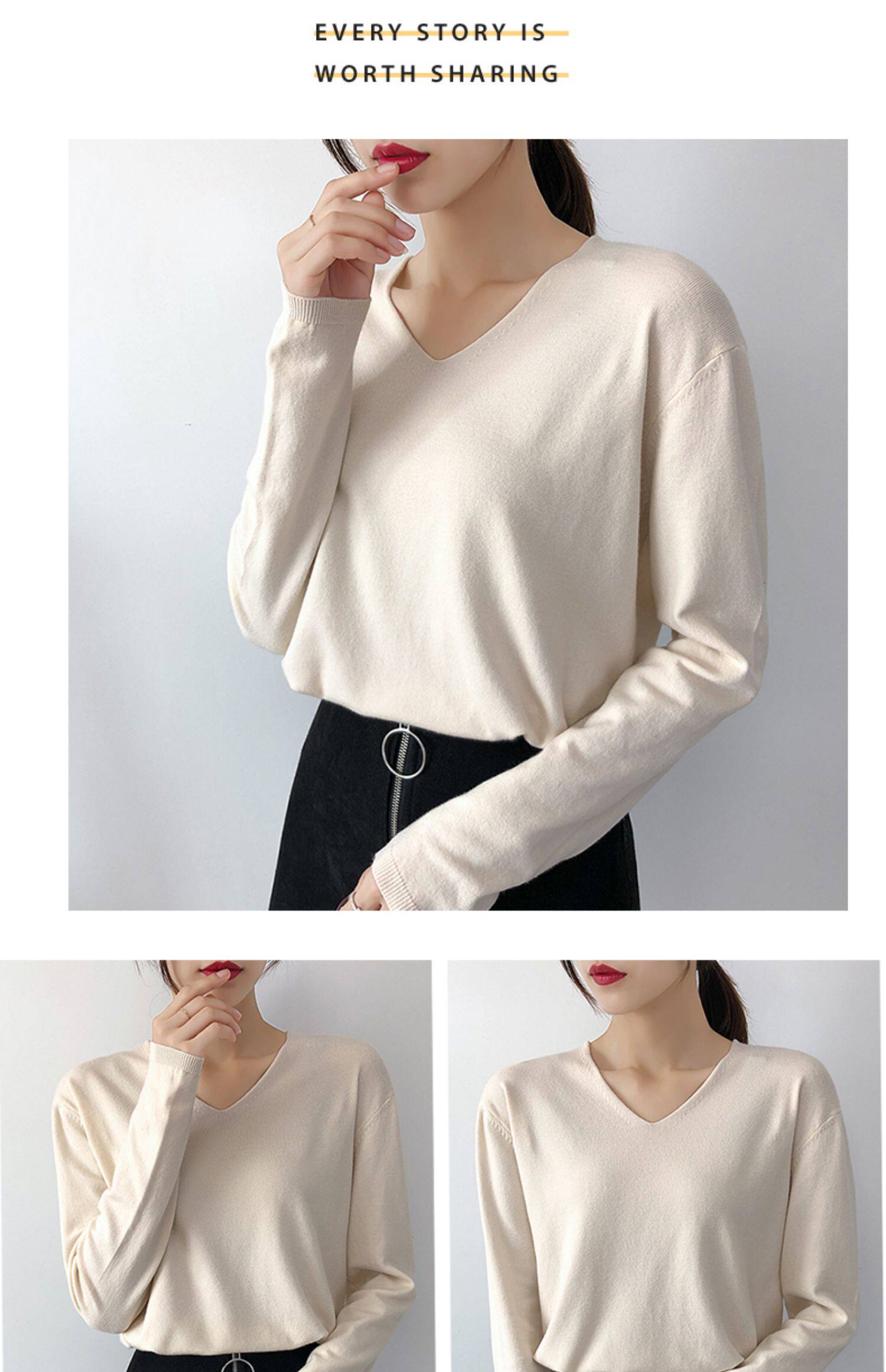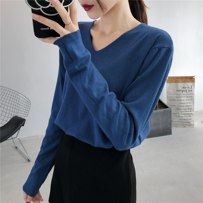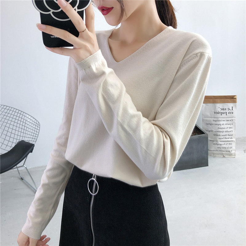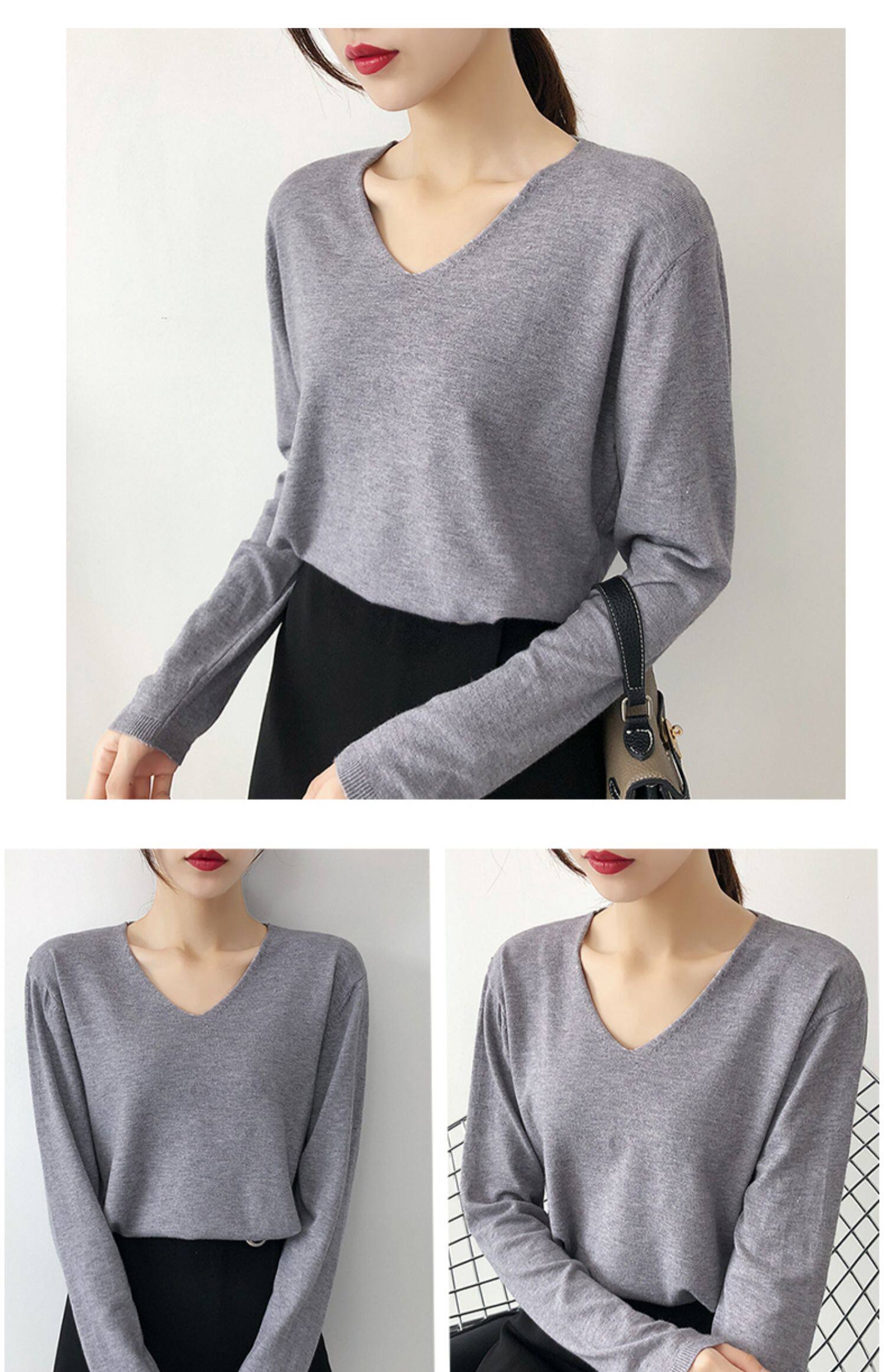 Демисезонный трикотажный лонгслив, свитер, V-образный вырез, стиль, свободный крой
