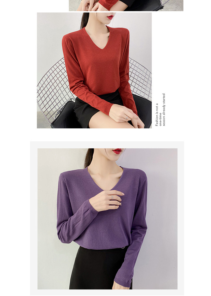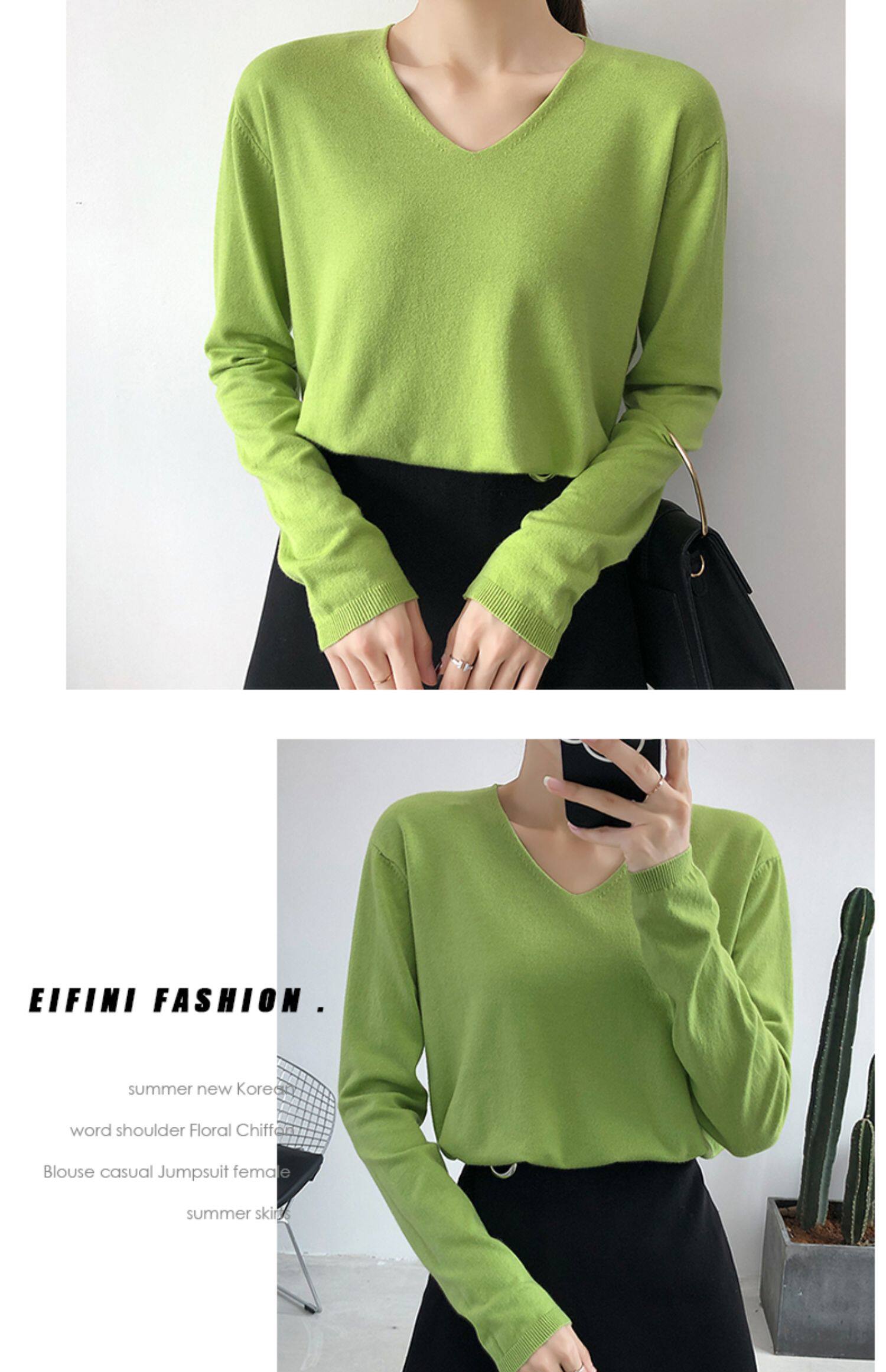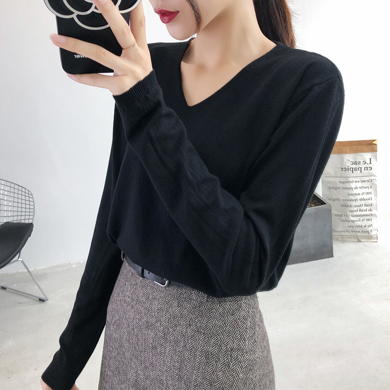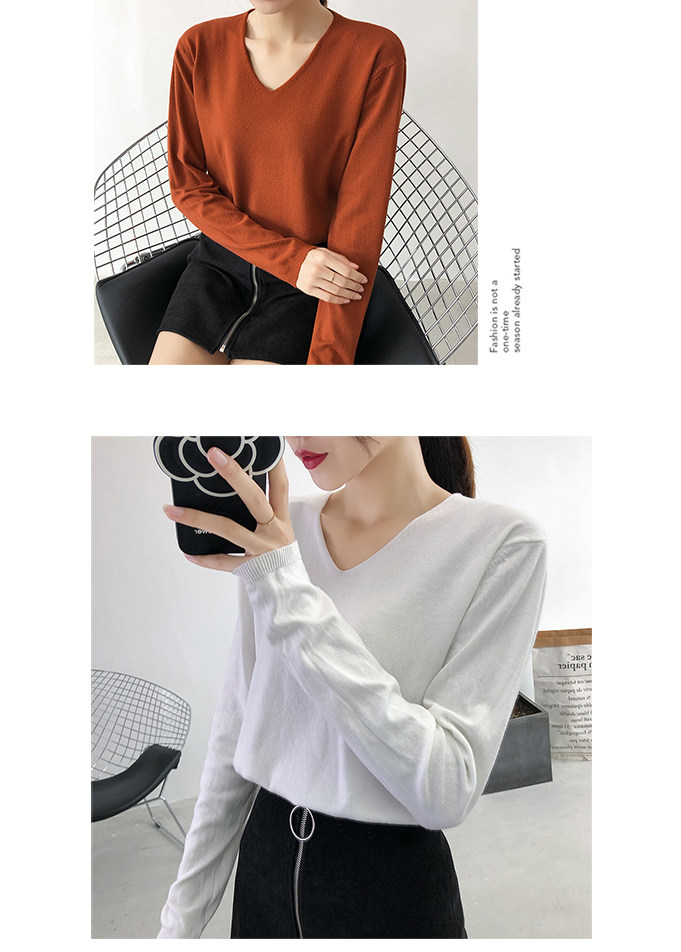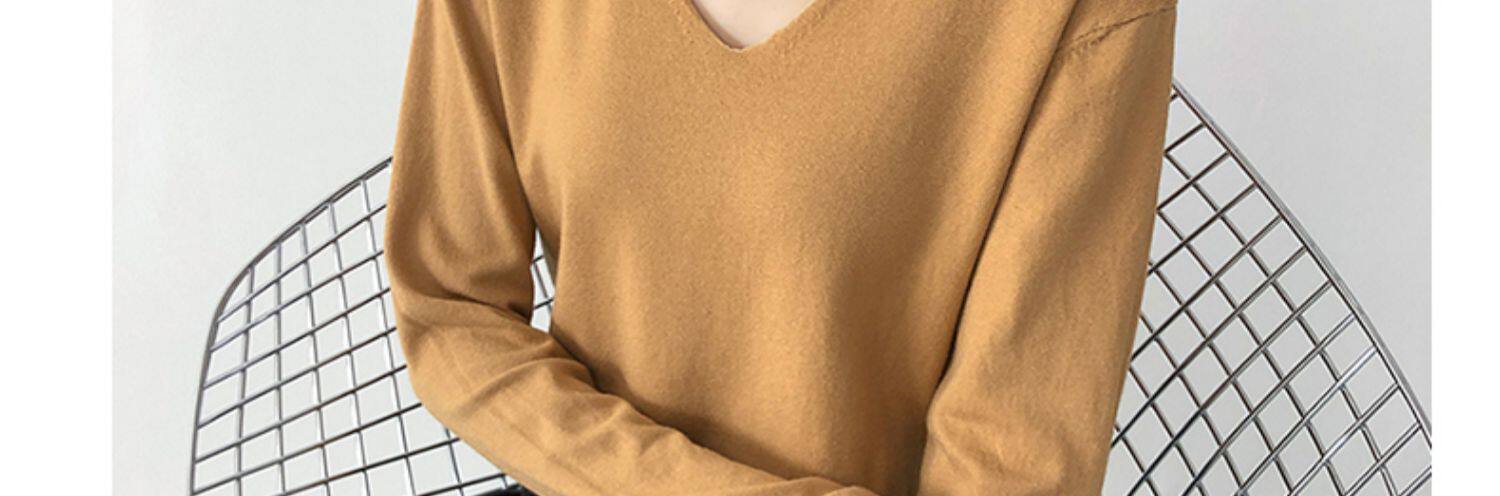 Демисезонный трикотажный лонгслив, свитер, V-образный вырез, стиль, свободный крой