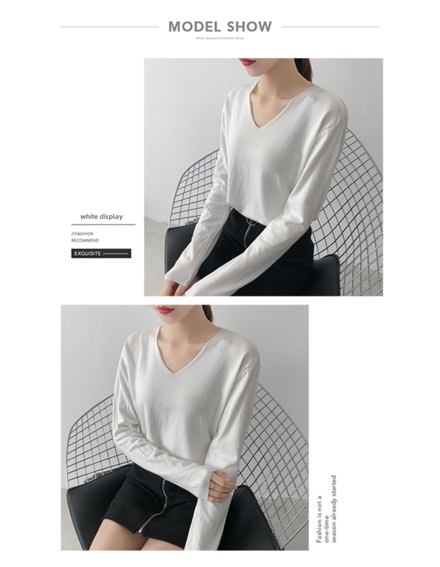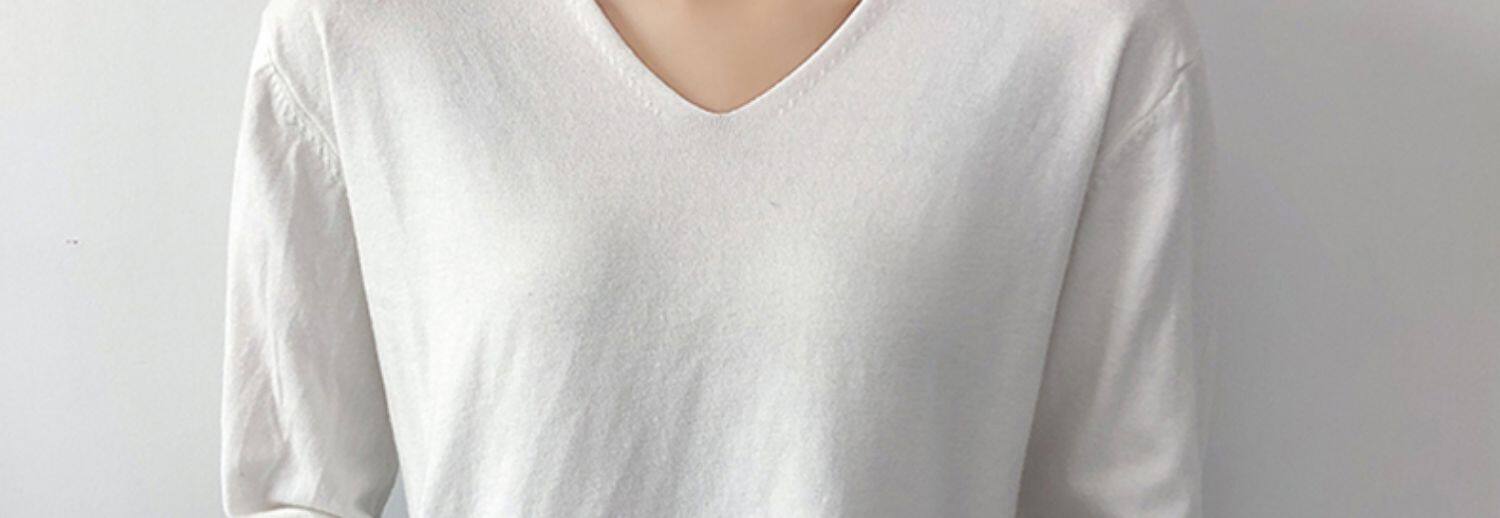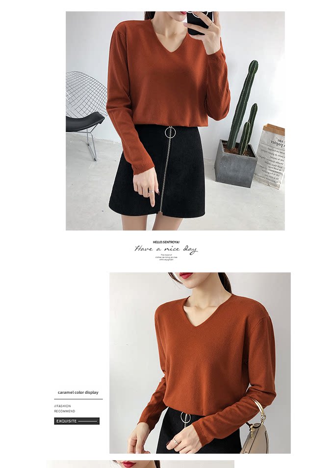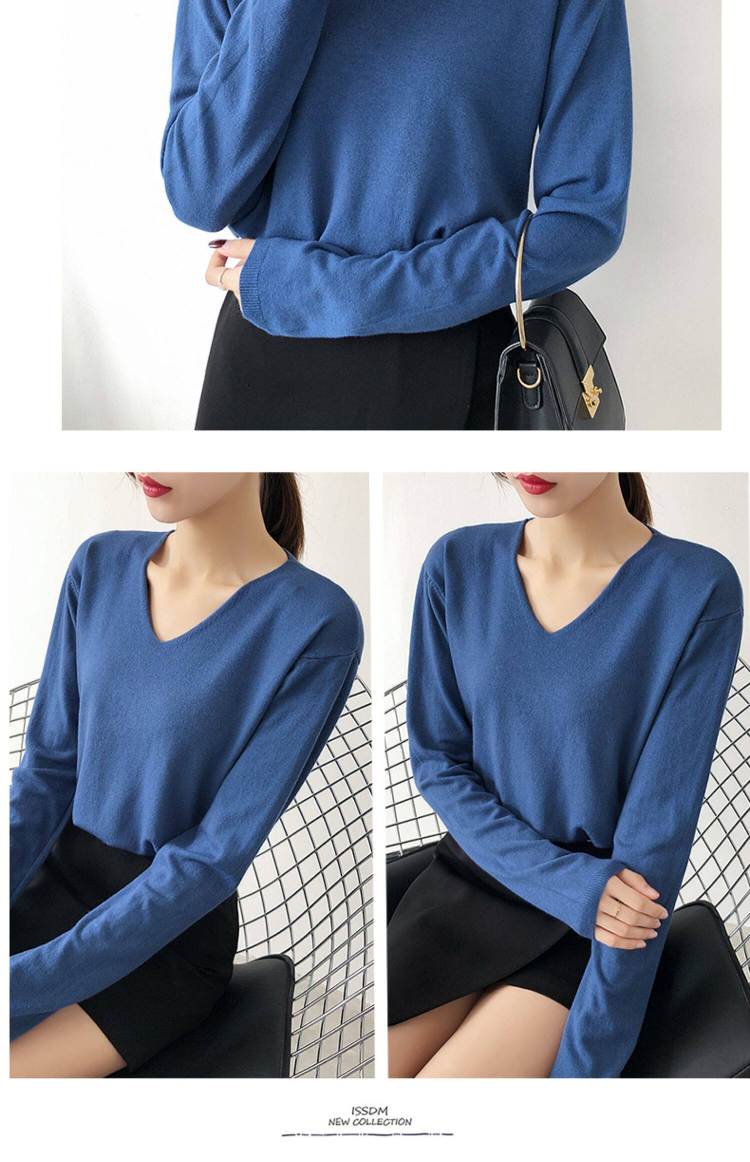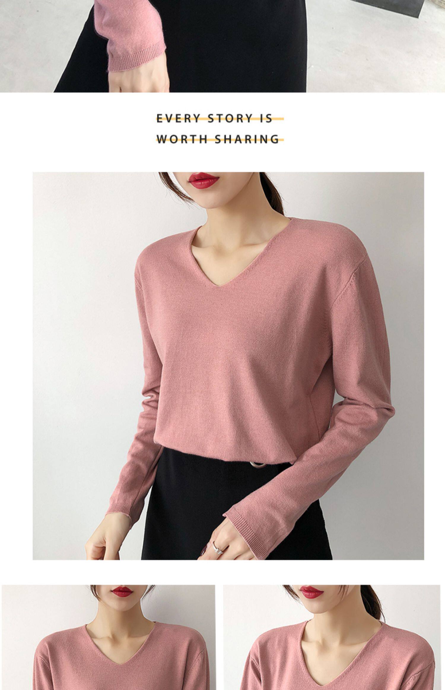 Демисезонный трикотажный лонгслив, свитер, V-образный вырез, стиль, свободный крой