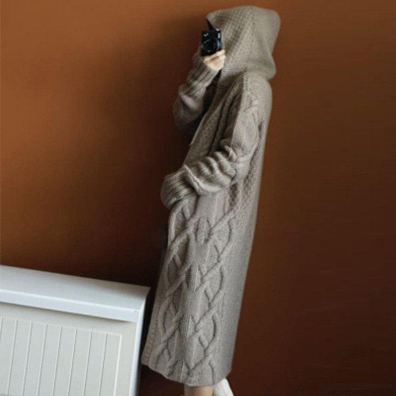Демисезонный кардиган, трикотажный длинный свитер, куртка, в корейском стиле, длина макси, увеличенная толщина