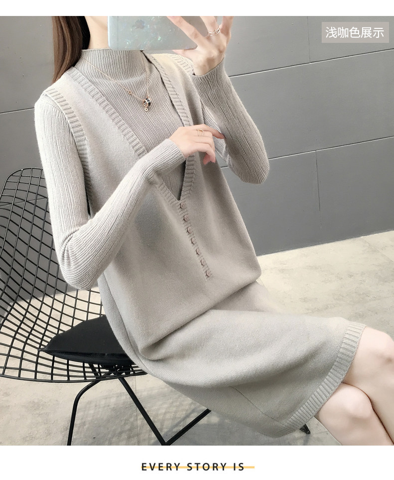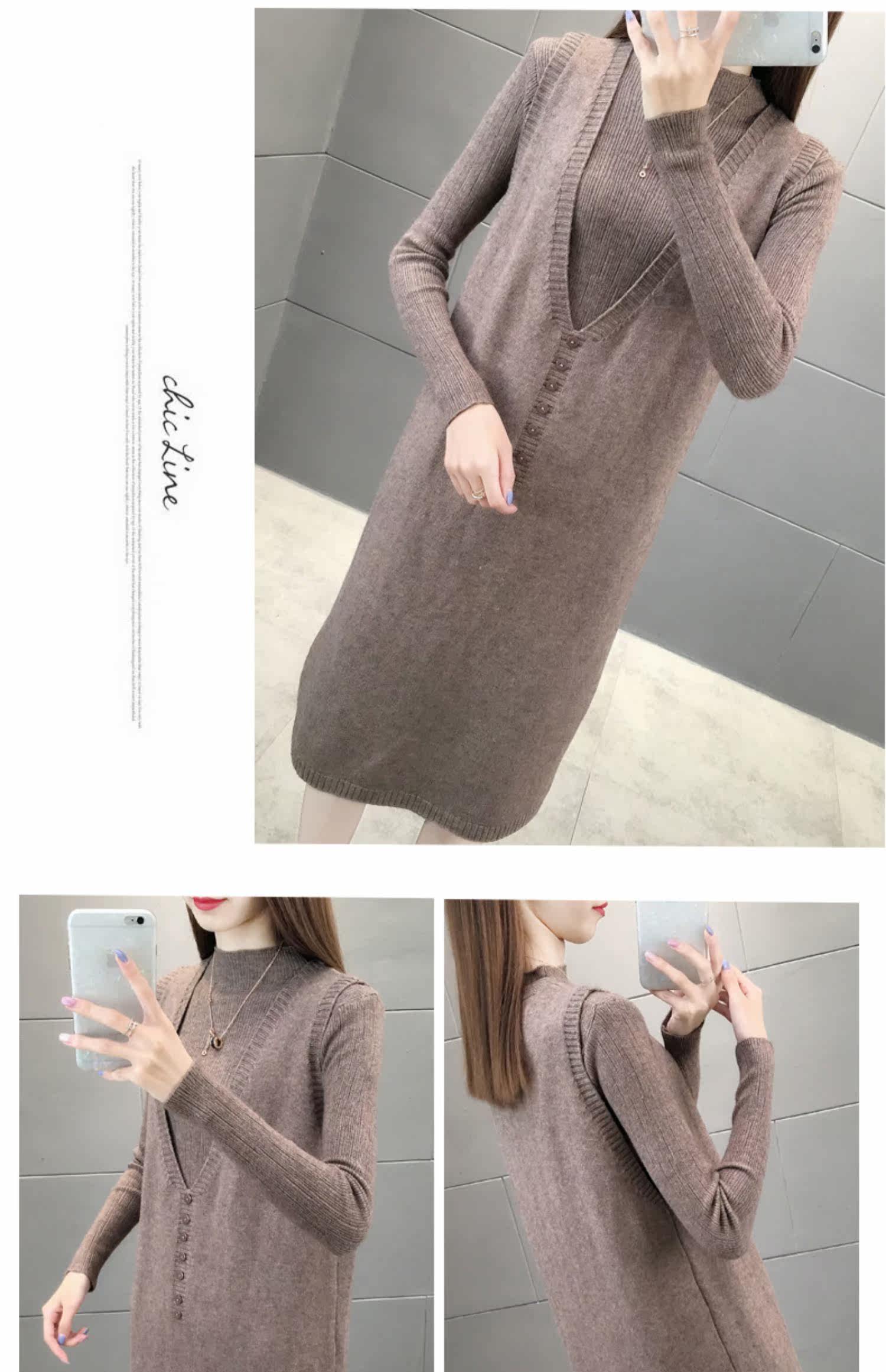 Осенний трикотажный комплект, жилет, демисезонный свитер, демисезонное длинное модное термобелье, длина макси, популярно в интернете