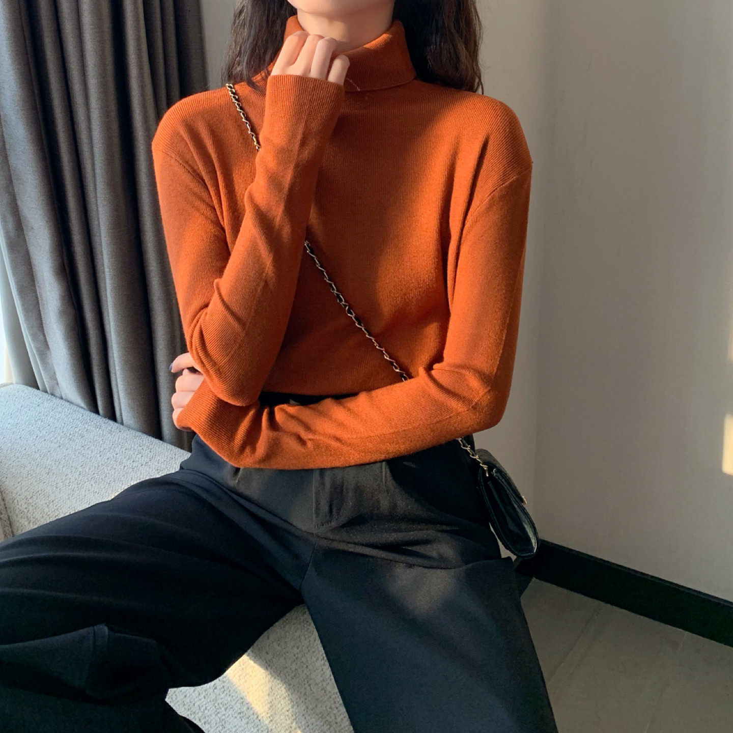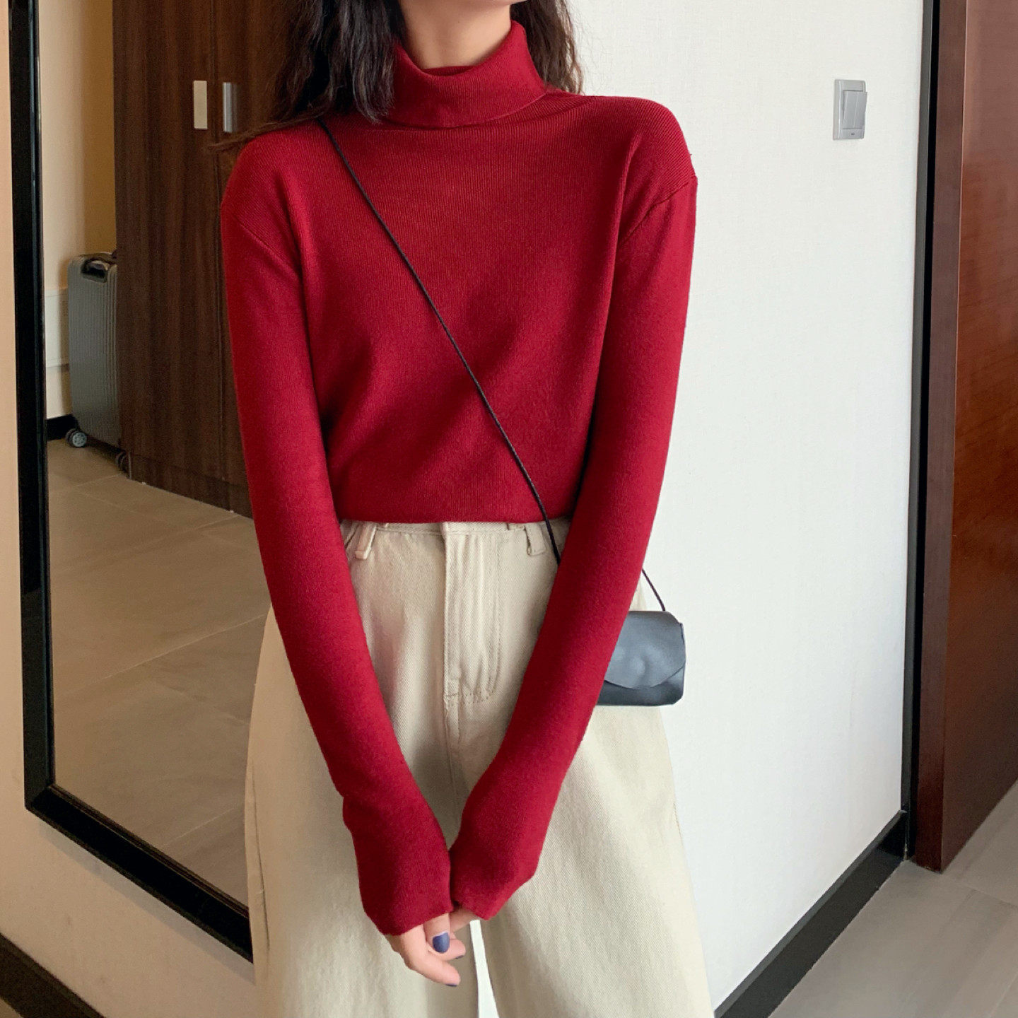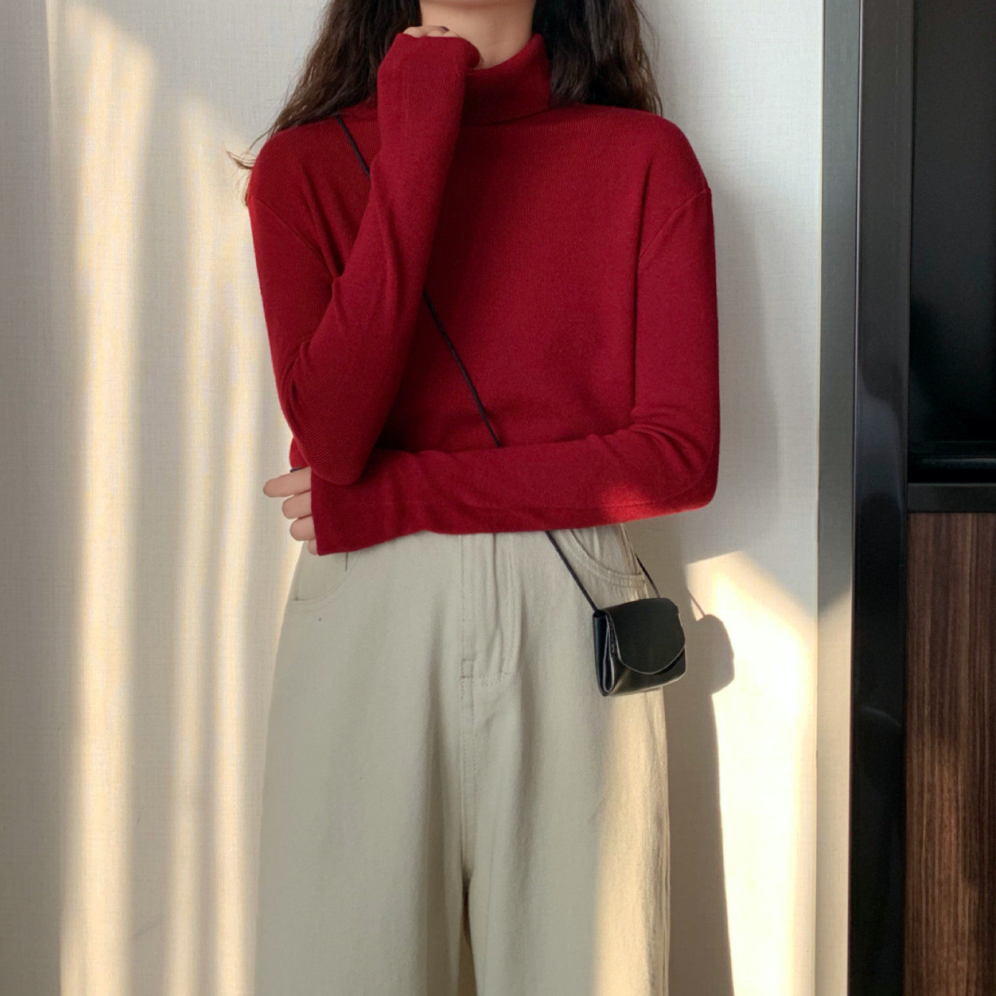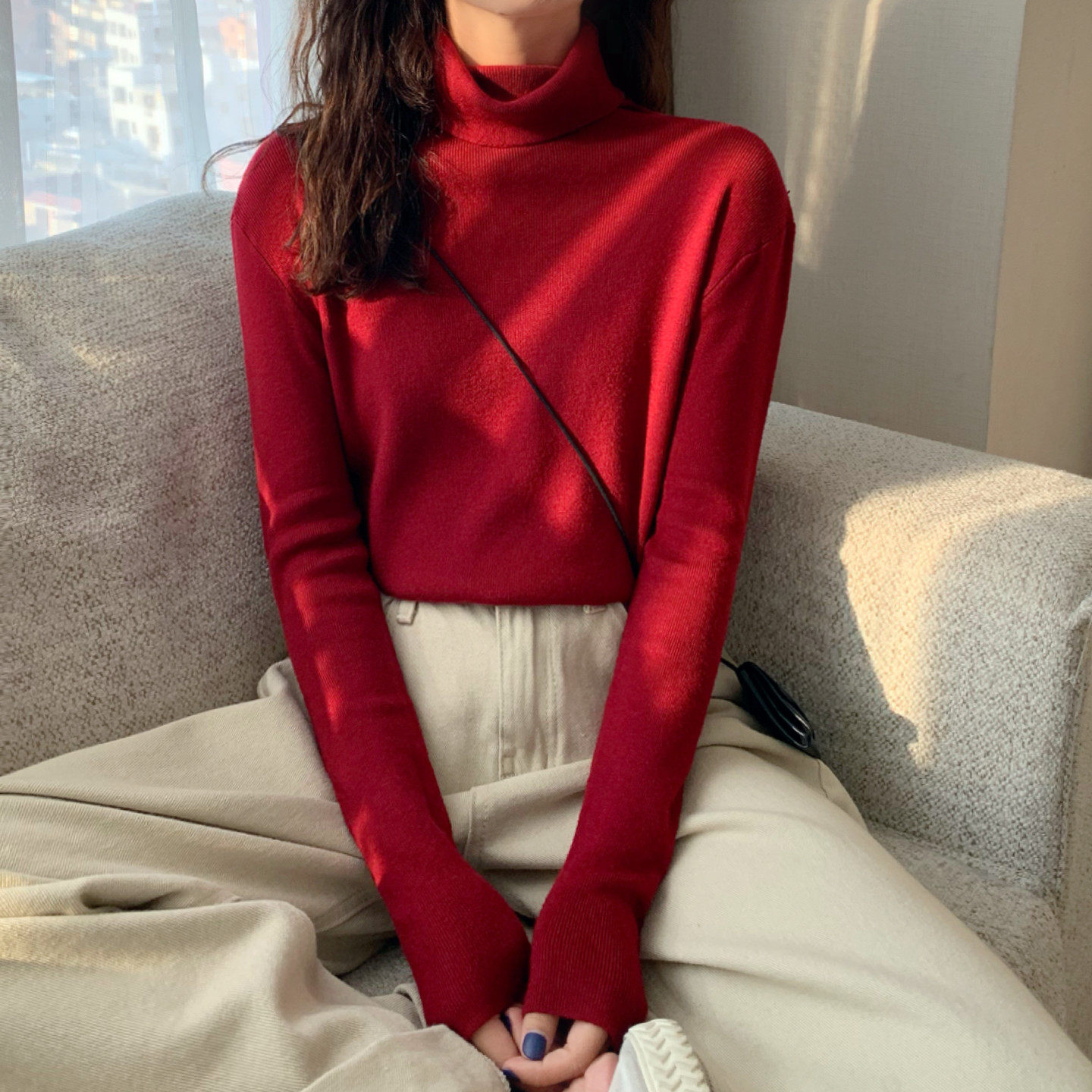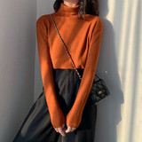 Осенний красный лонгслив, базовый приятный телу трикотажный свитер, 2021 года, в западном стиле