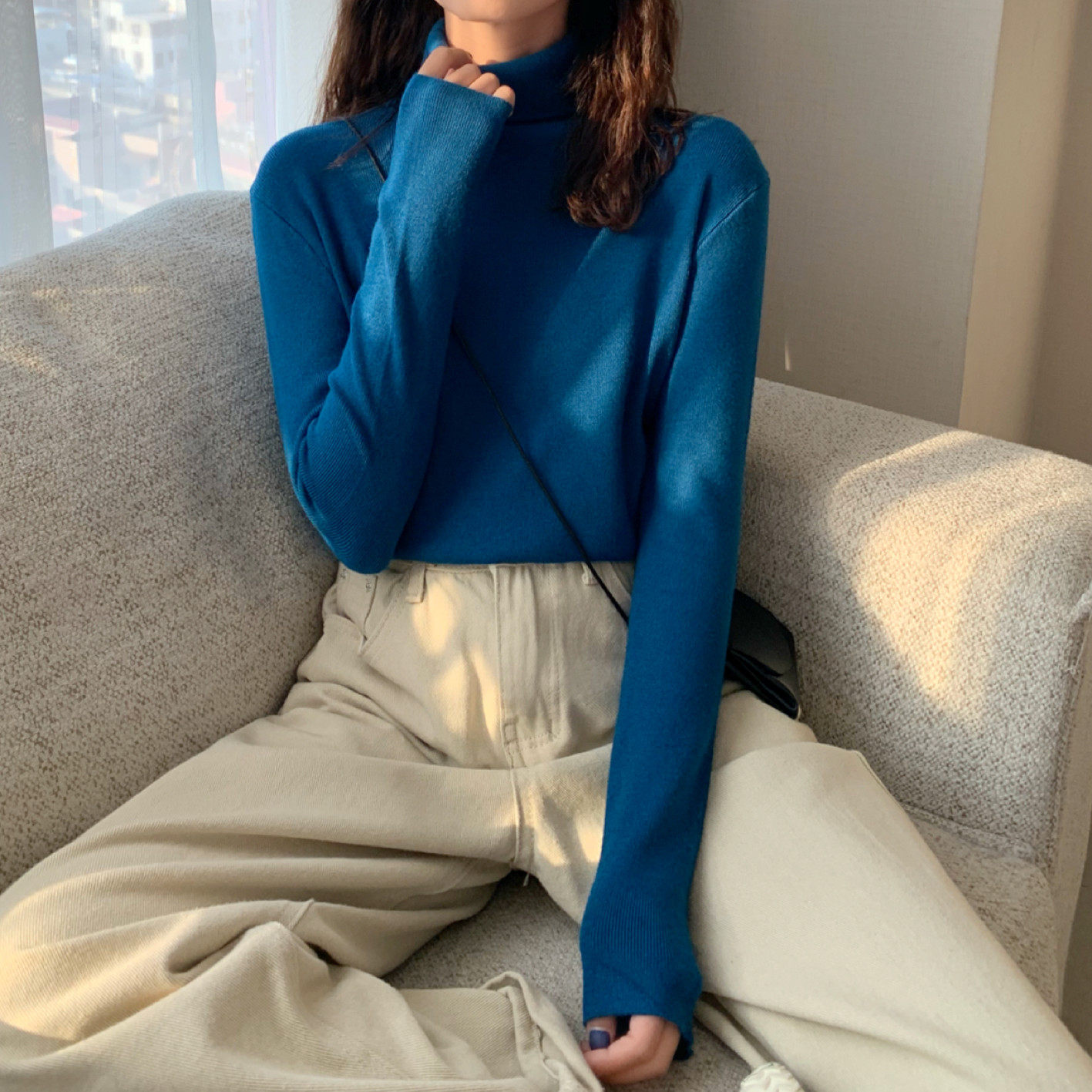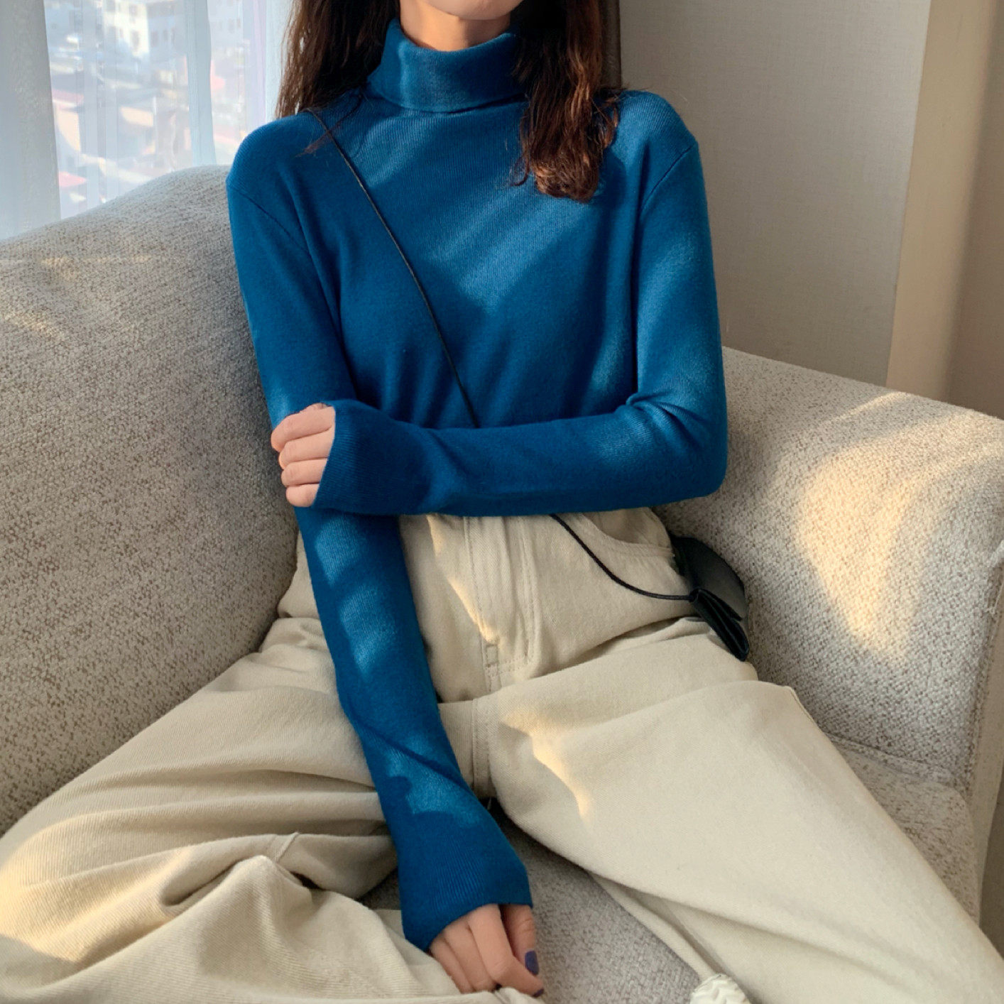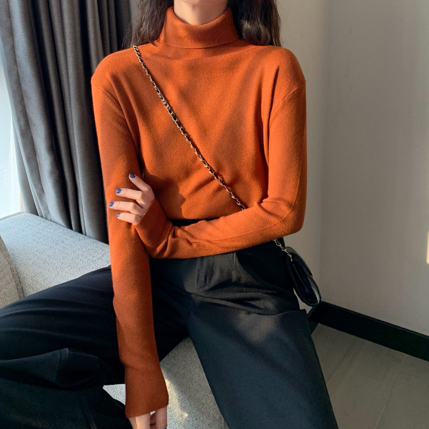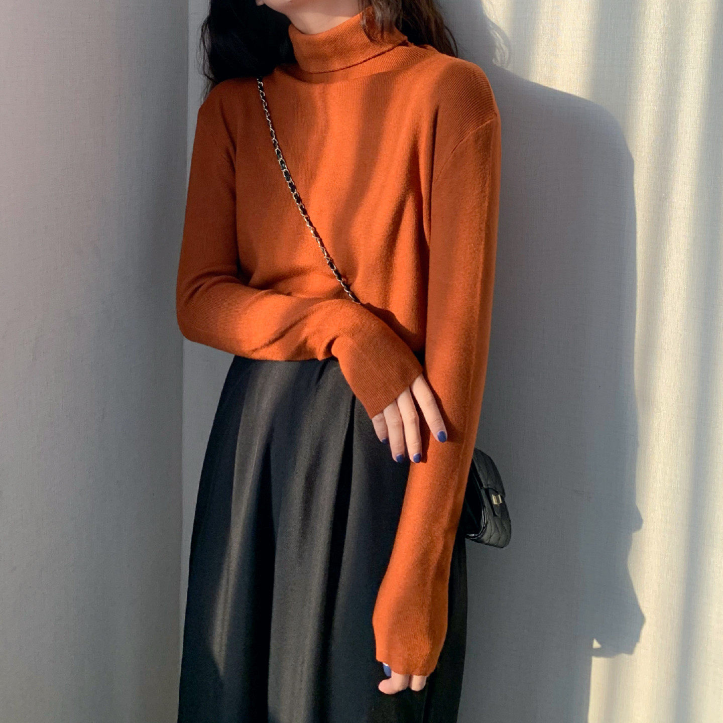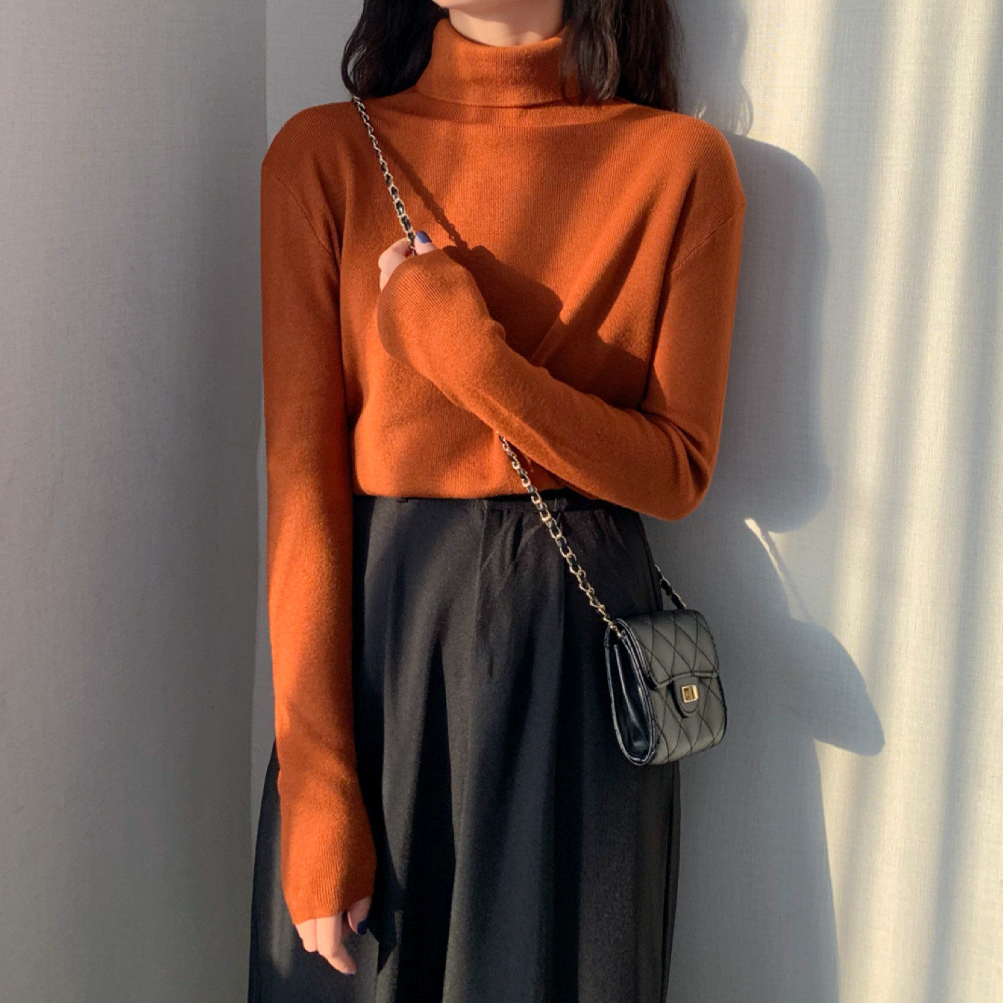 Осенний красный лонгслив, базовый приятный телу трикотажный свитер, 2021 года, в западном стиле
