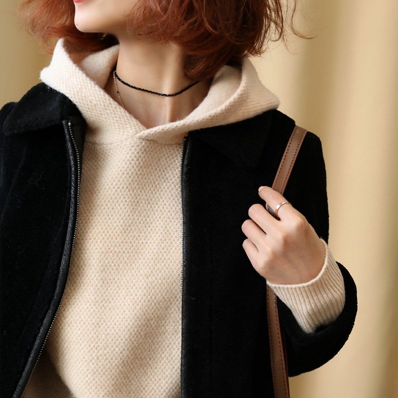 Кашемировая толстовка, лонгслив с капюшоном, однотонный шерстяной базовый приятный телу свитер