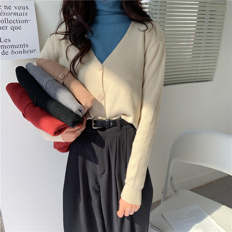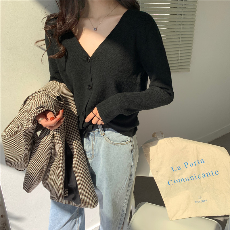 Осенний кардиган, модная куртка, базовый приятный телу свитер, коллекция 2021, V-образный вырез, в корейском стиле, в западном стиле