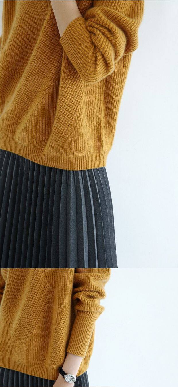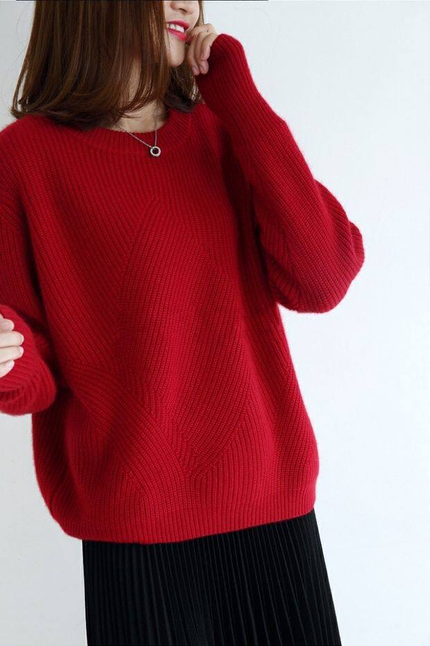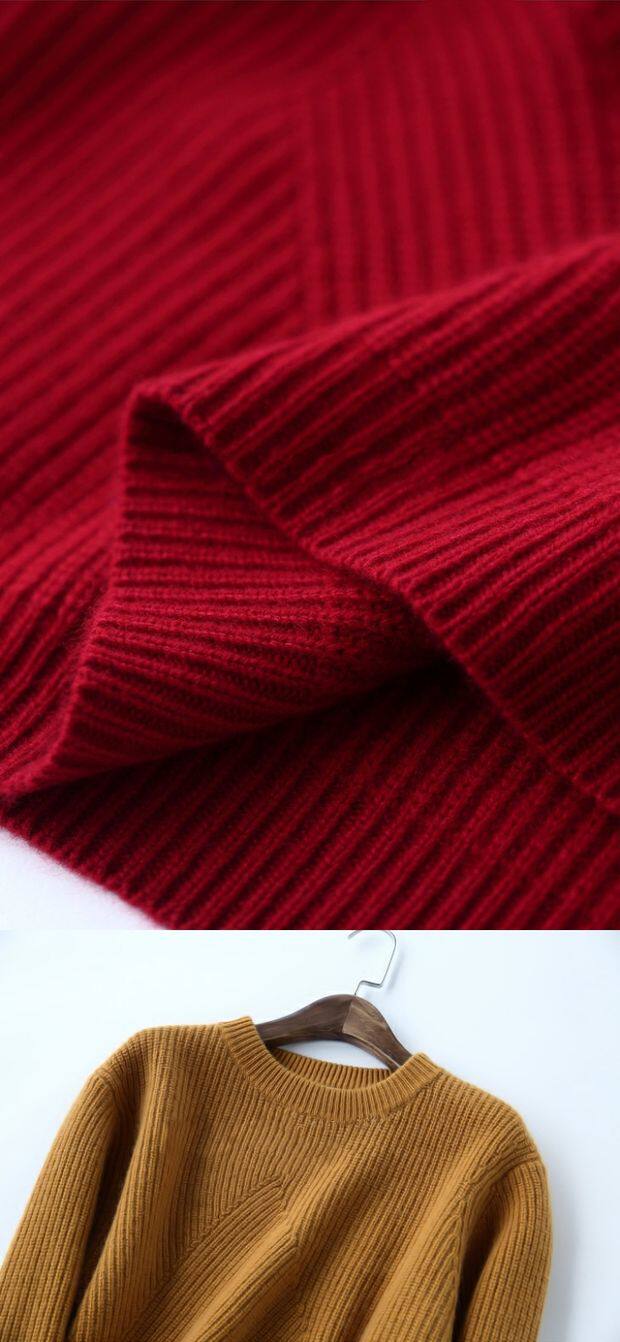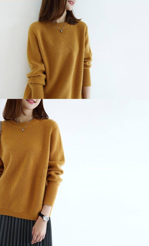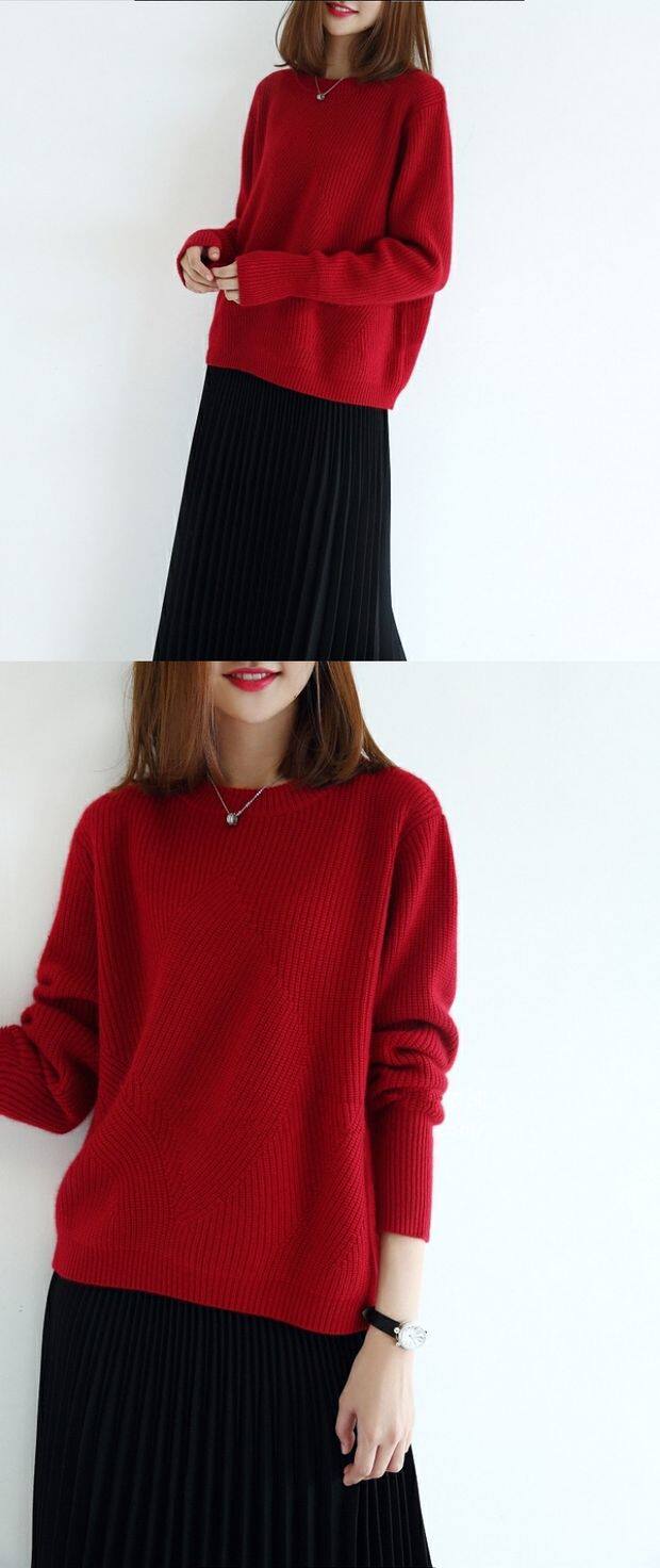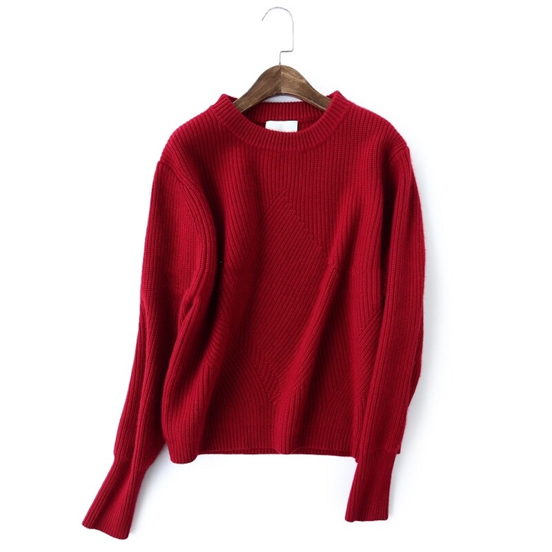 Кашемировый короткий однотонный трикотажный свитер с круглым воротником, оверсайз
