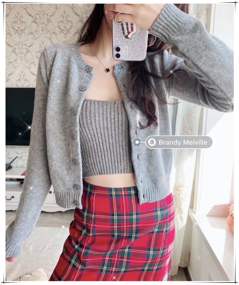 Агентство внутренних закупок Brandy Melville Приталенный темно-серый вязаный кардиган-свитер с круглым вырезом.