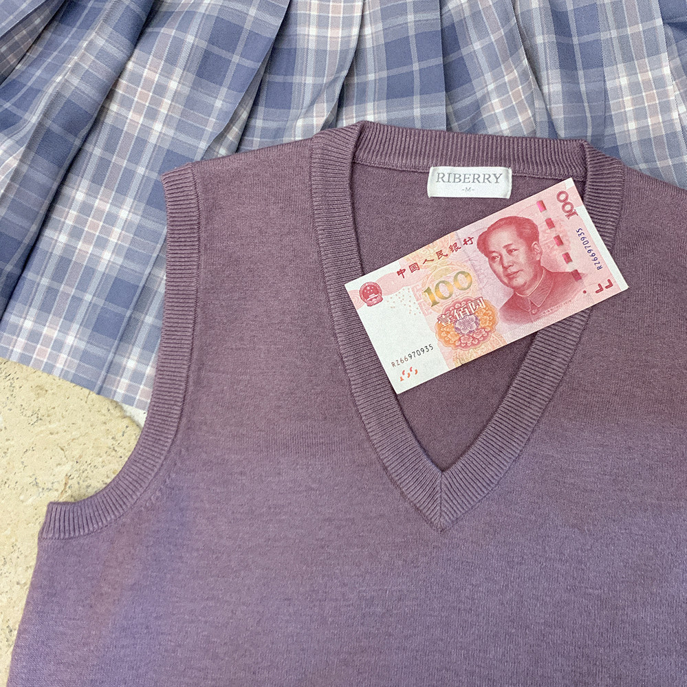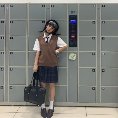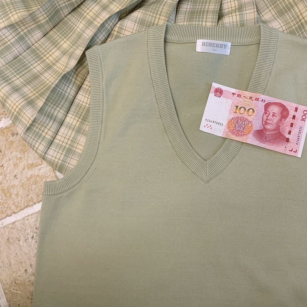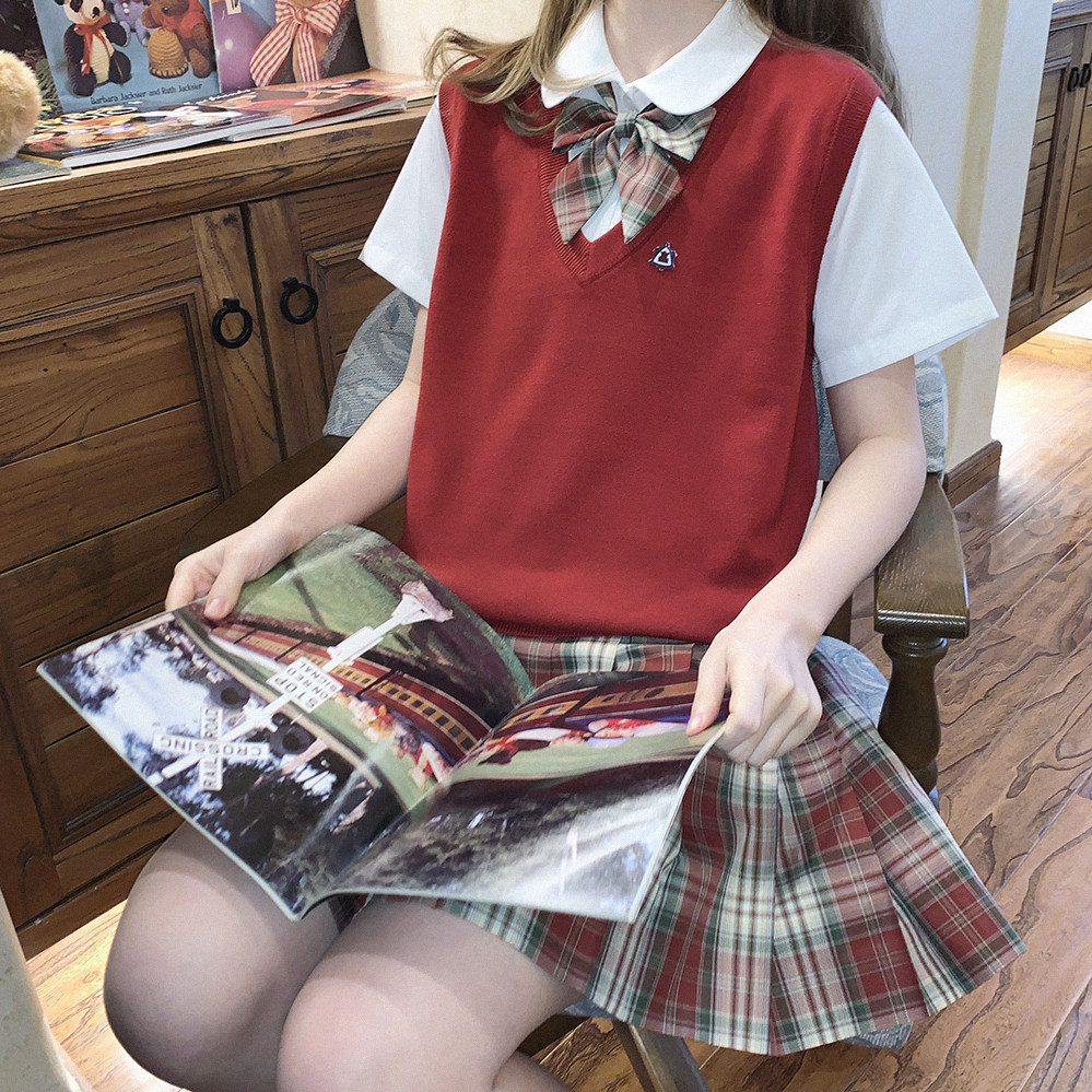 *Bao Core Yarn Girls College Wind v -neck Sweater Vest K