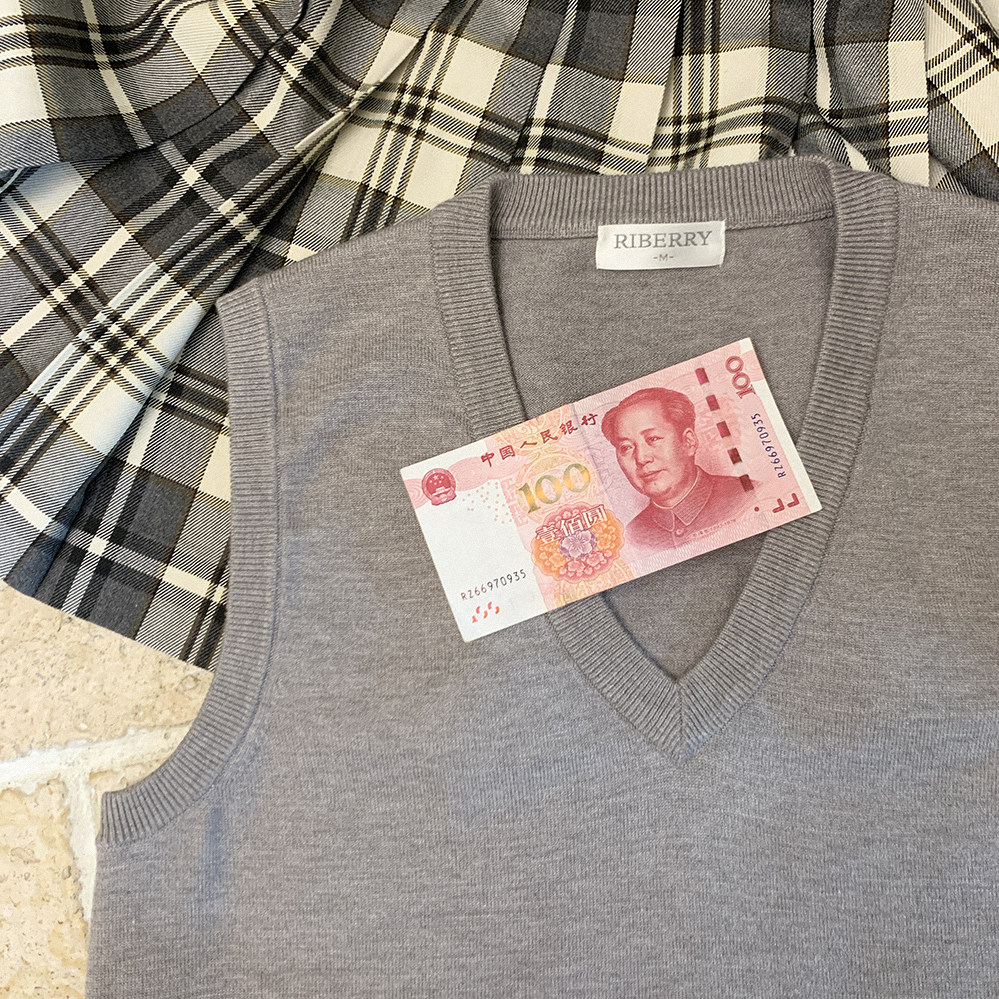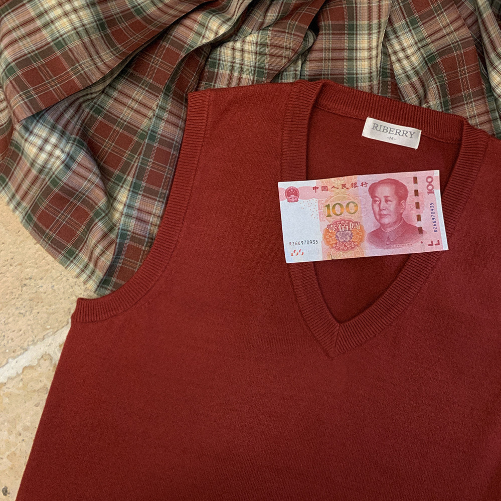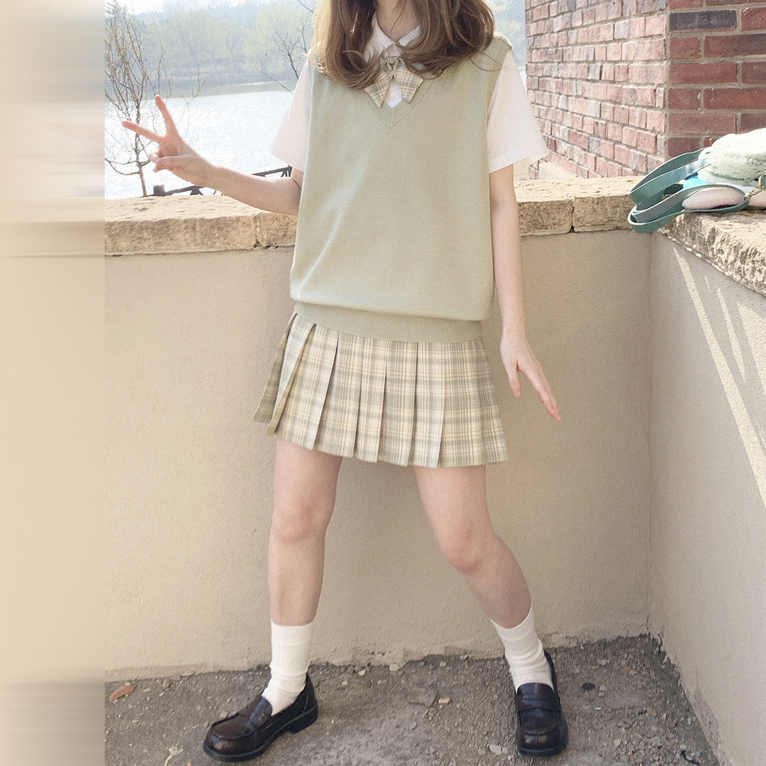 *Bao Core Yarn Girls College Wind v -neck Sweater Vest K