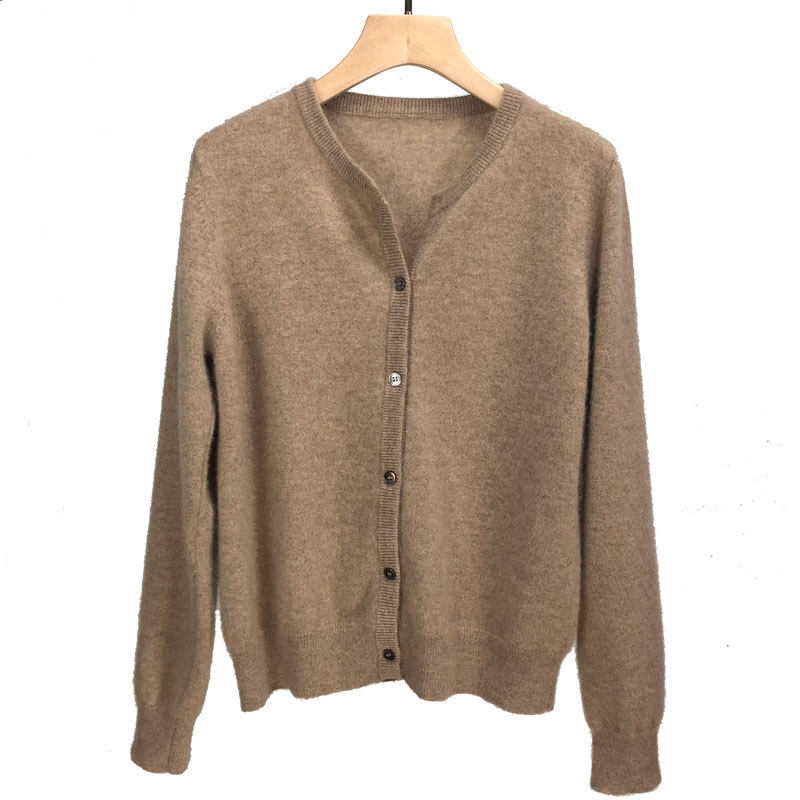 Демисезонный кашемировый кардиган с круглым воротником, короткий свитер, куртка, в корейском стиле