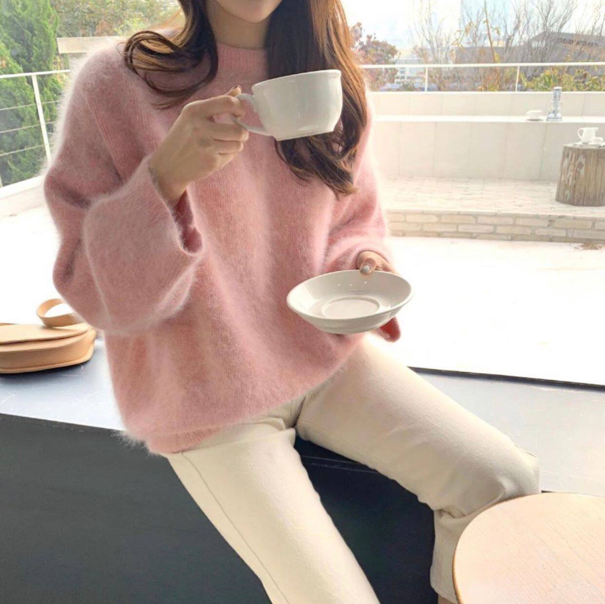 Весенний японский розовый бархатный милый свитер, кардиган, булавка, куртка