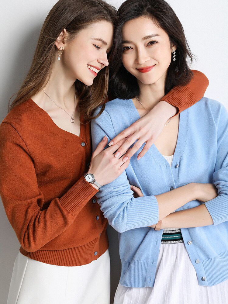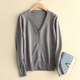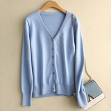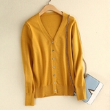 Шерстяной короткий кардиган, трикотажный лонгслив, свитер, V-образный вырез, в корейском стиле