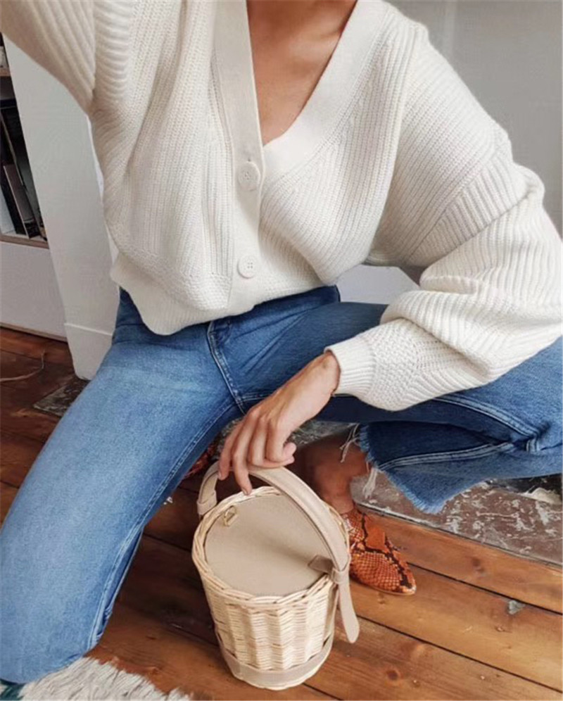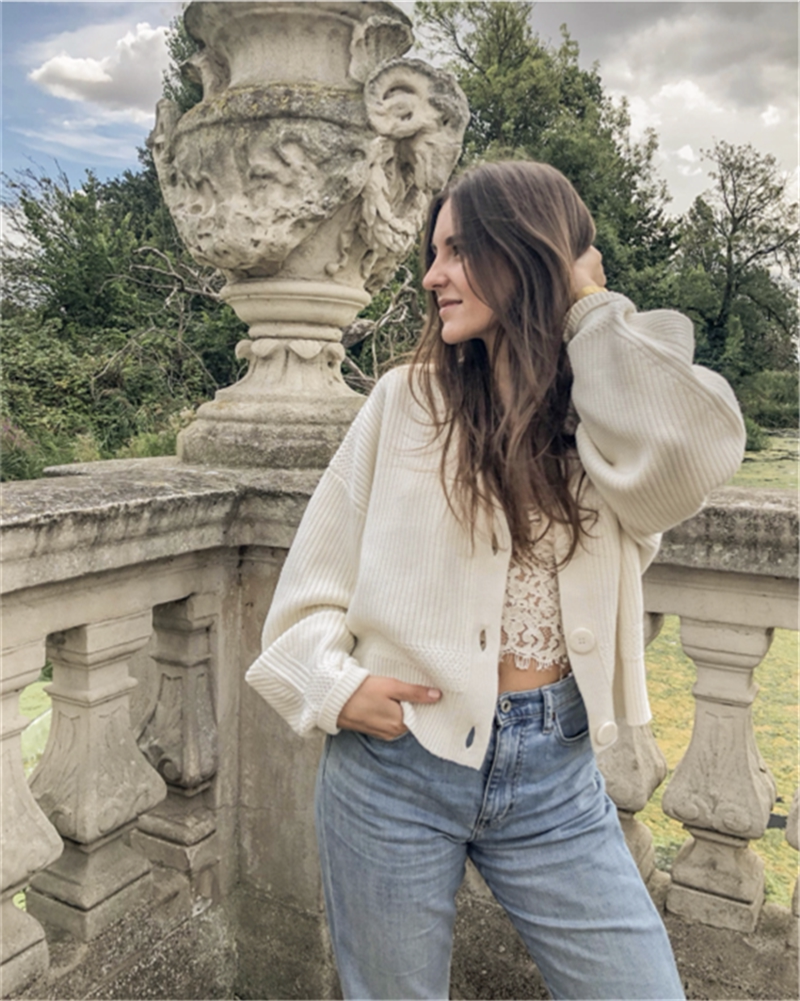 Скандинавский трикотажный свитер, лампа, фонарь, белый кардиган, косплей, французский стиль, V-образный вырез, свободный крой
