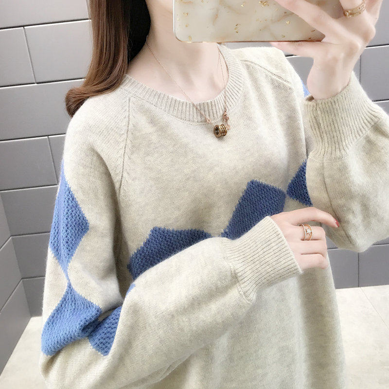 Осенний цветной трикотажный свитер с круглым воротником, 2020, оверсайз