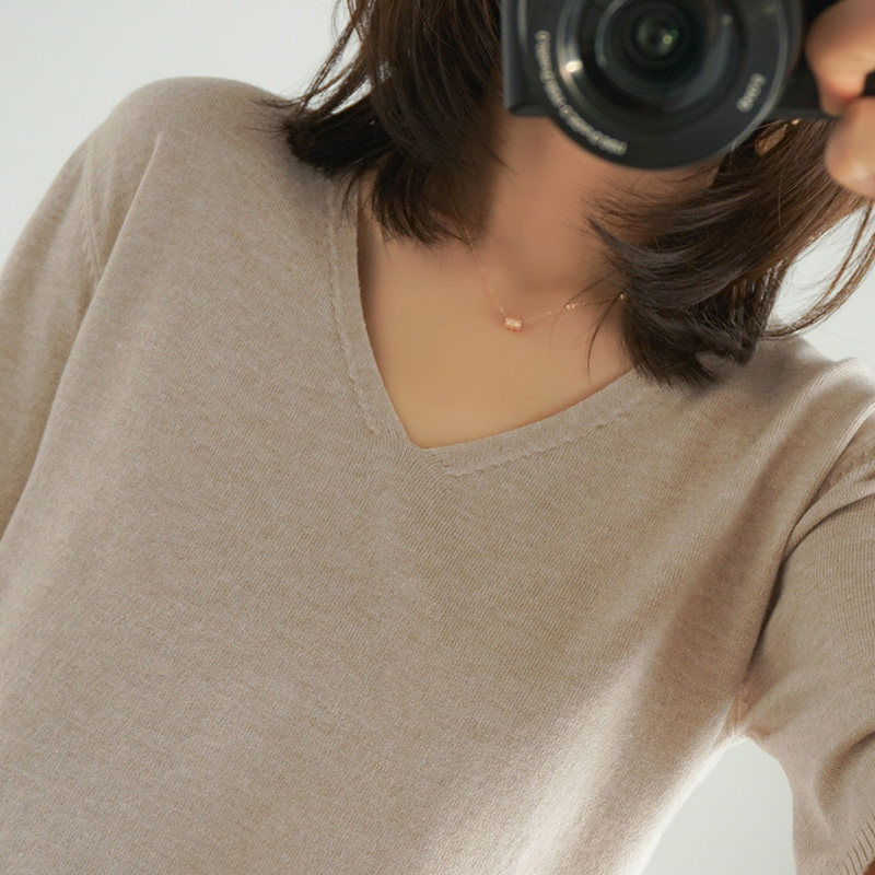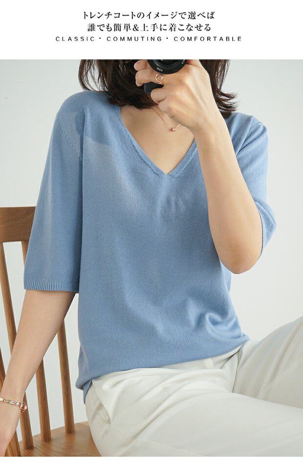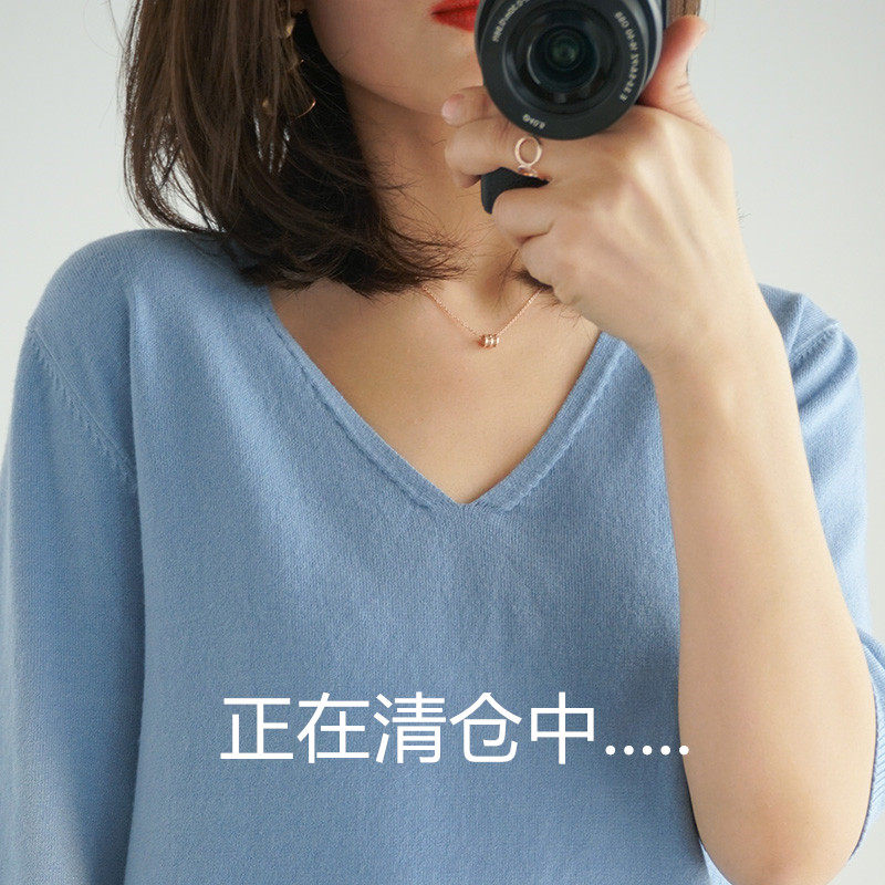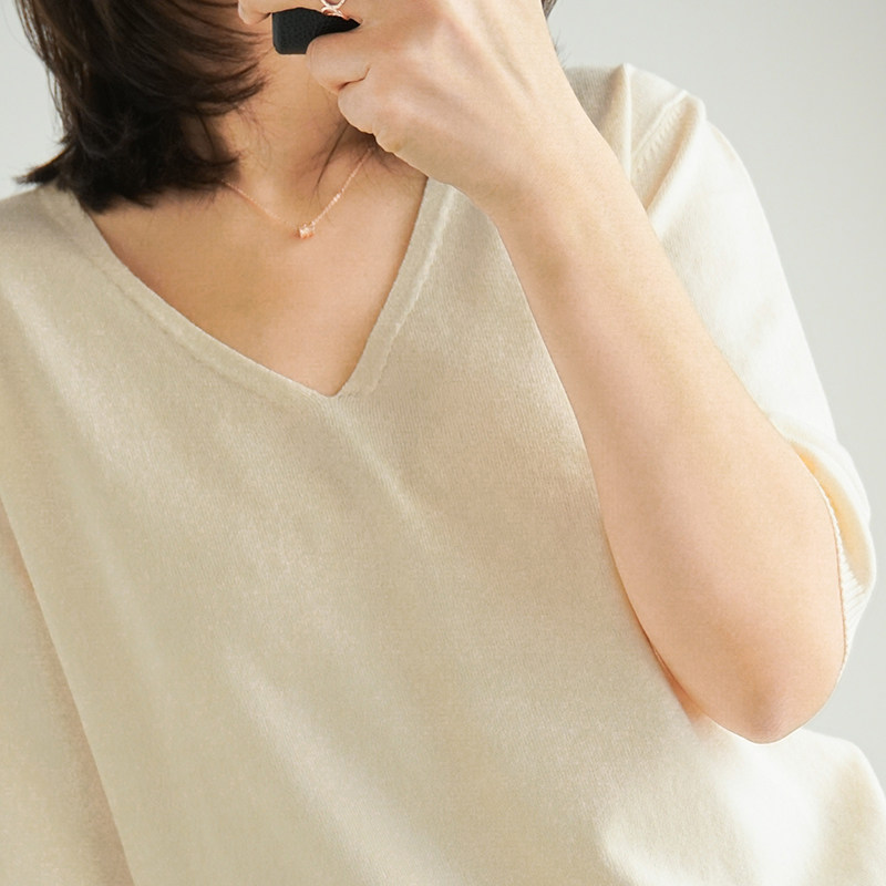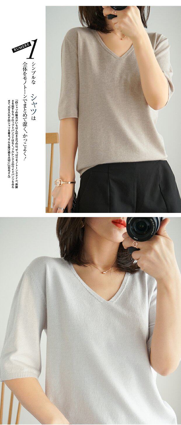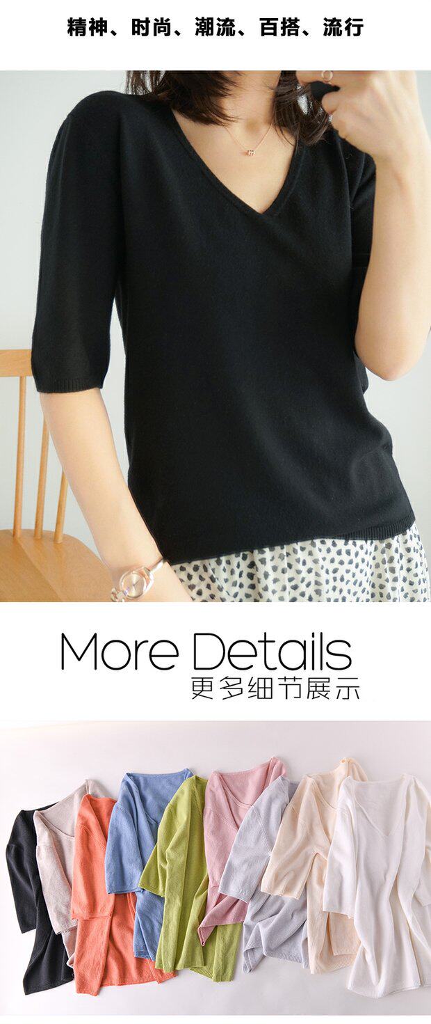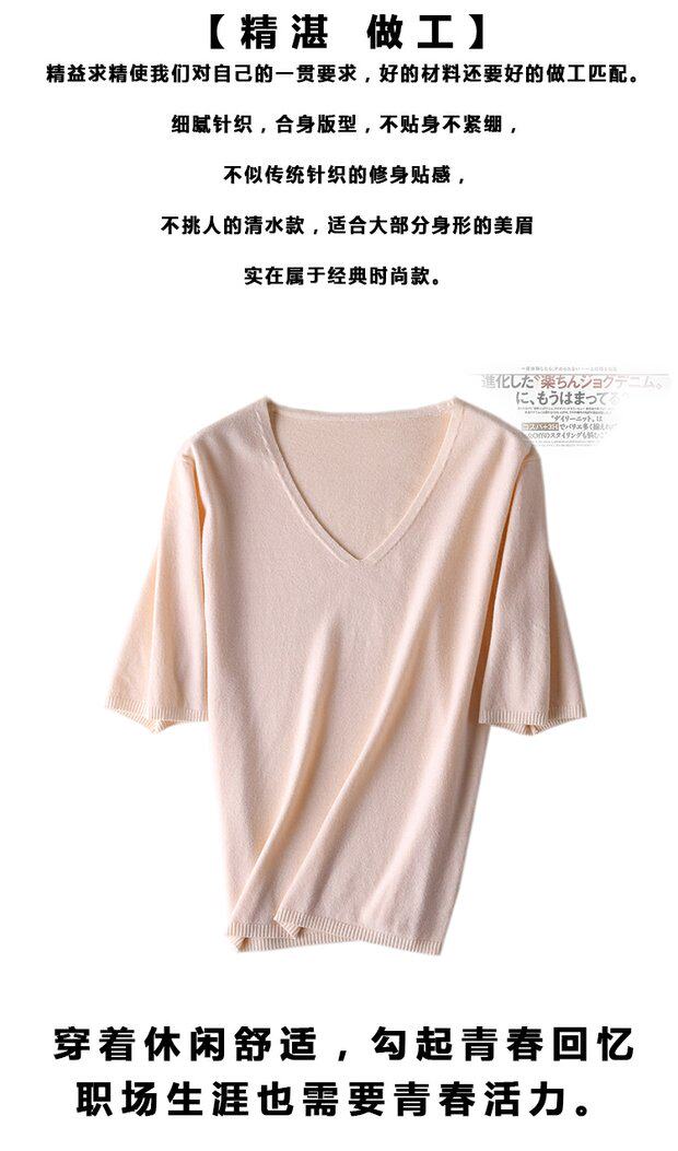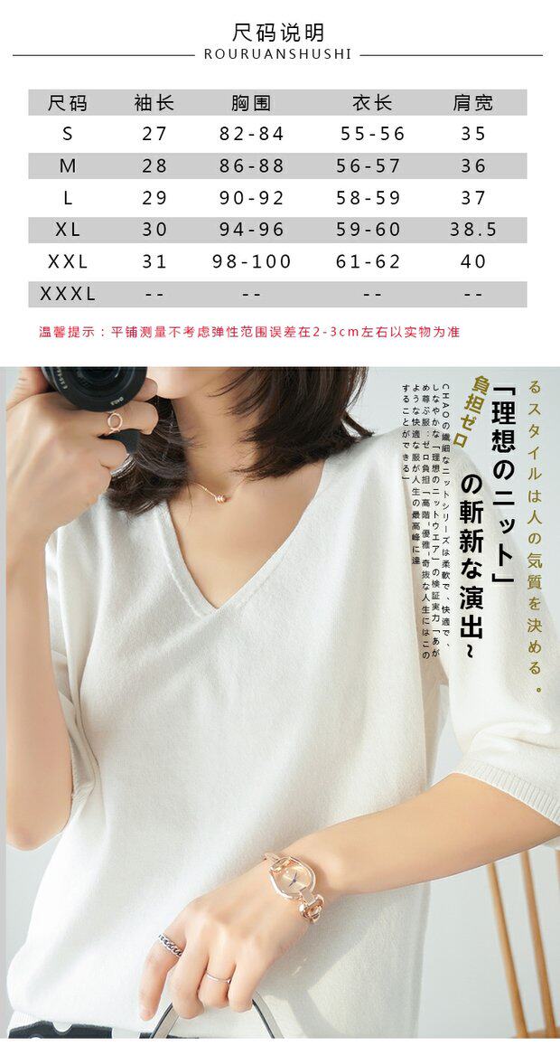 Летний тонкий кашемировый комплект, трикотажная короткая футболка, V-образный вырез, короткий рукав, свободный крой, в корейском стиле