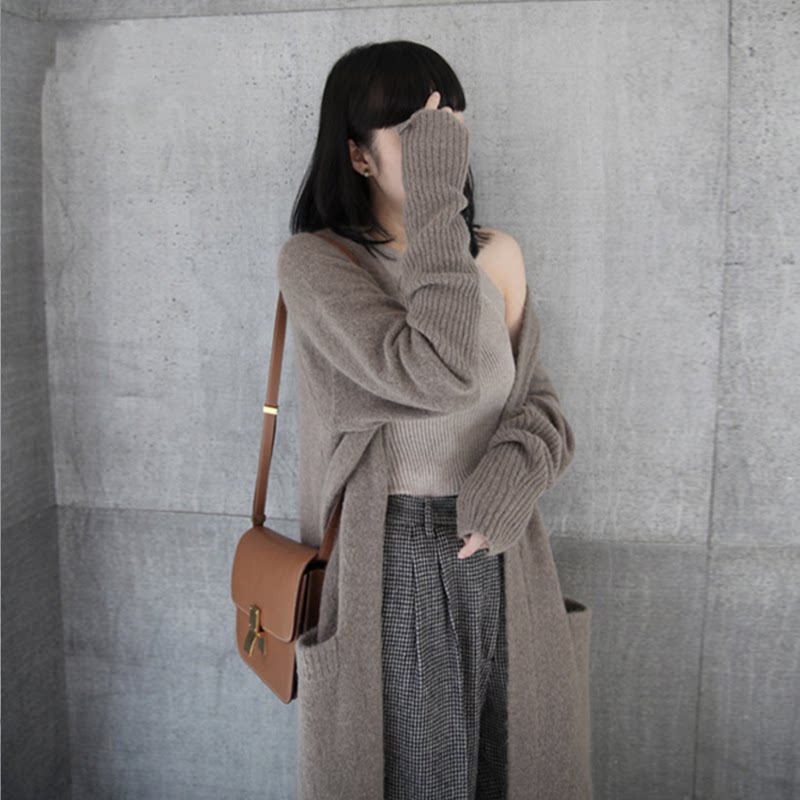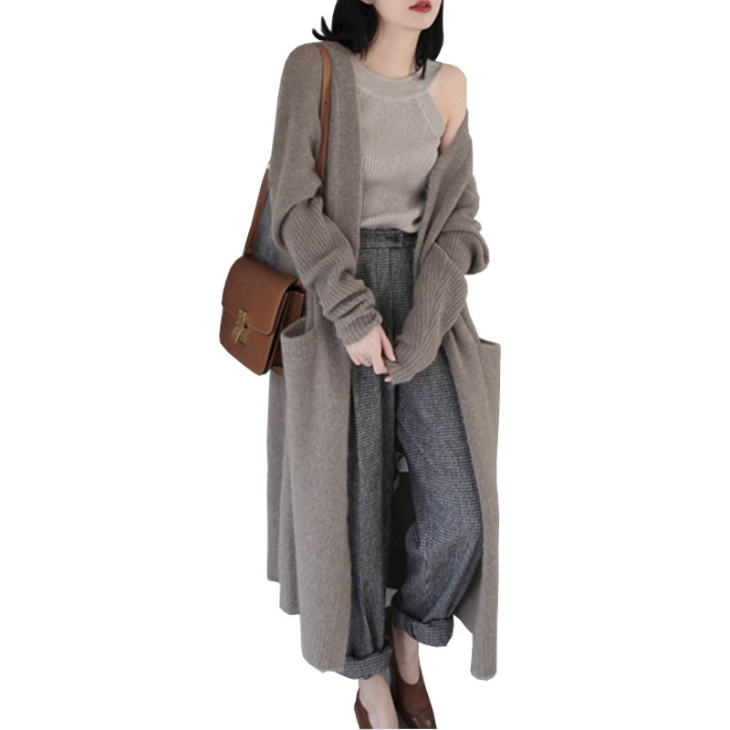 Осенний кашемировый длинный свитер, куртка, тонкий кардиган, европейский стиль, 2020, средней длины