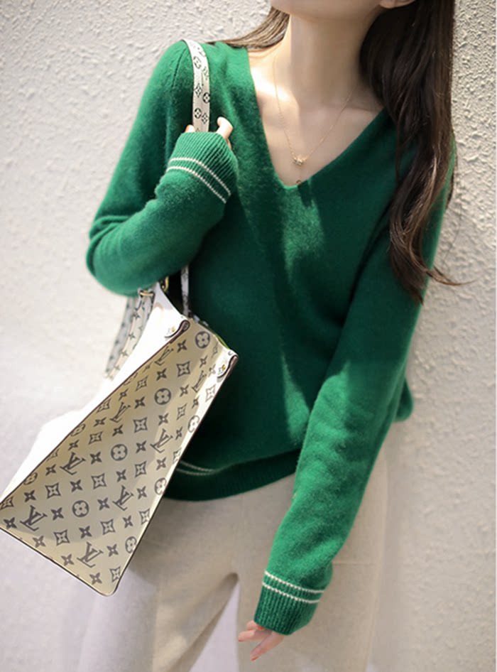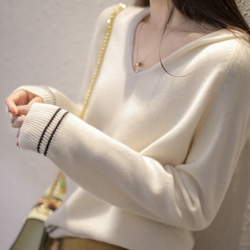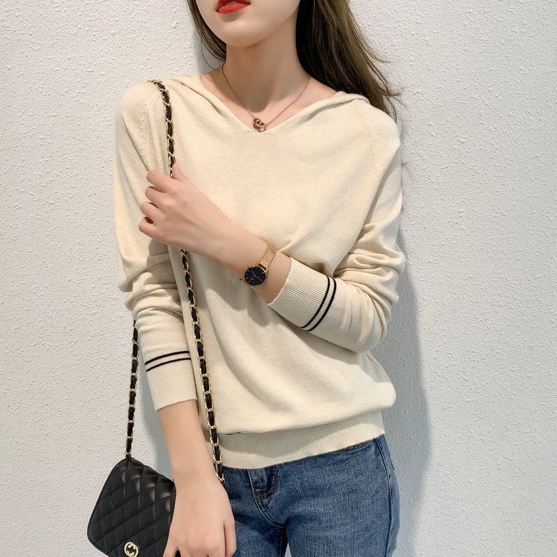 Осенняя кашемировая трикотажная базовая приятная телу толстовка с капюшоном, короткий свитер, коллекция 2021, оверсайз, в корейском стиле, V-образный вырез